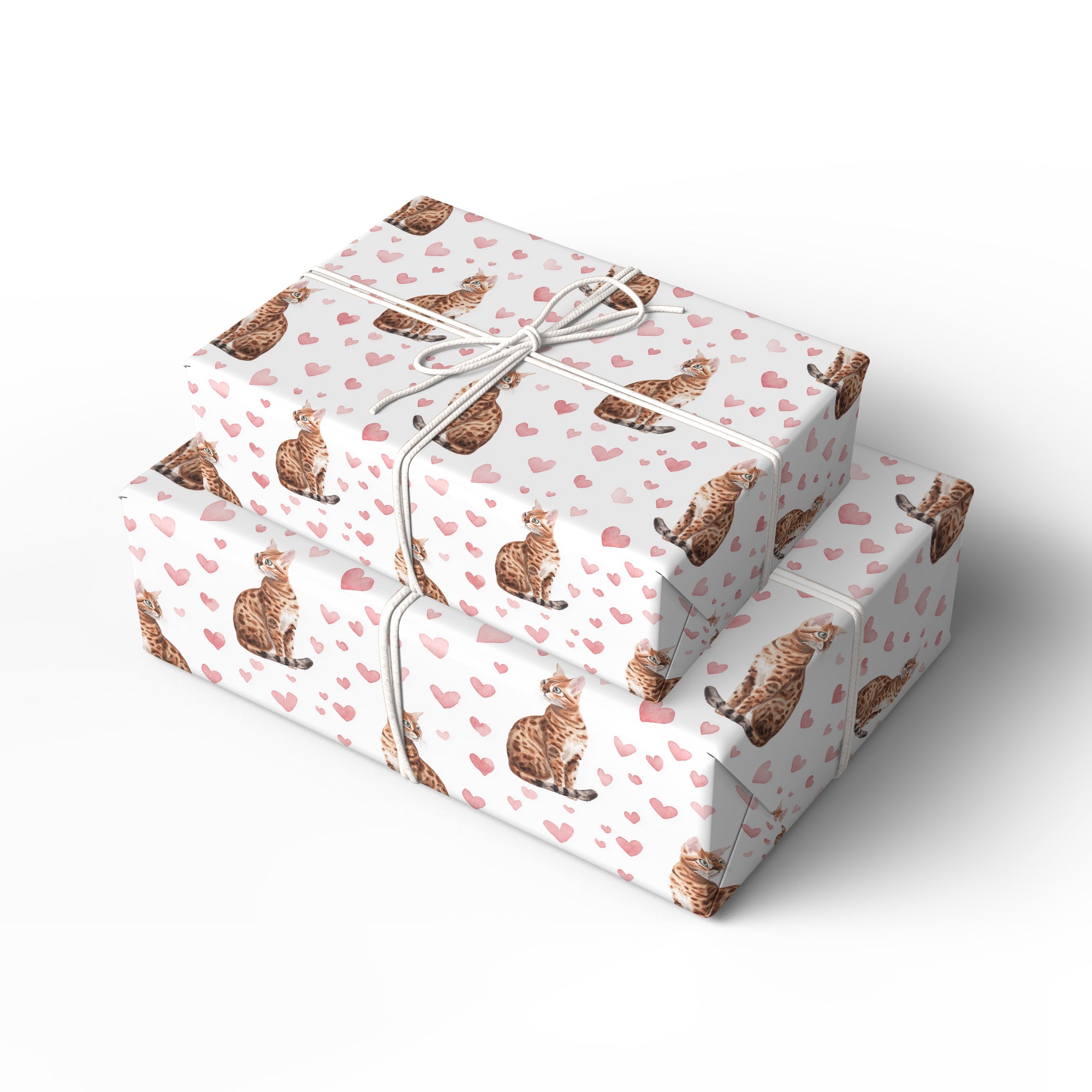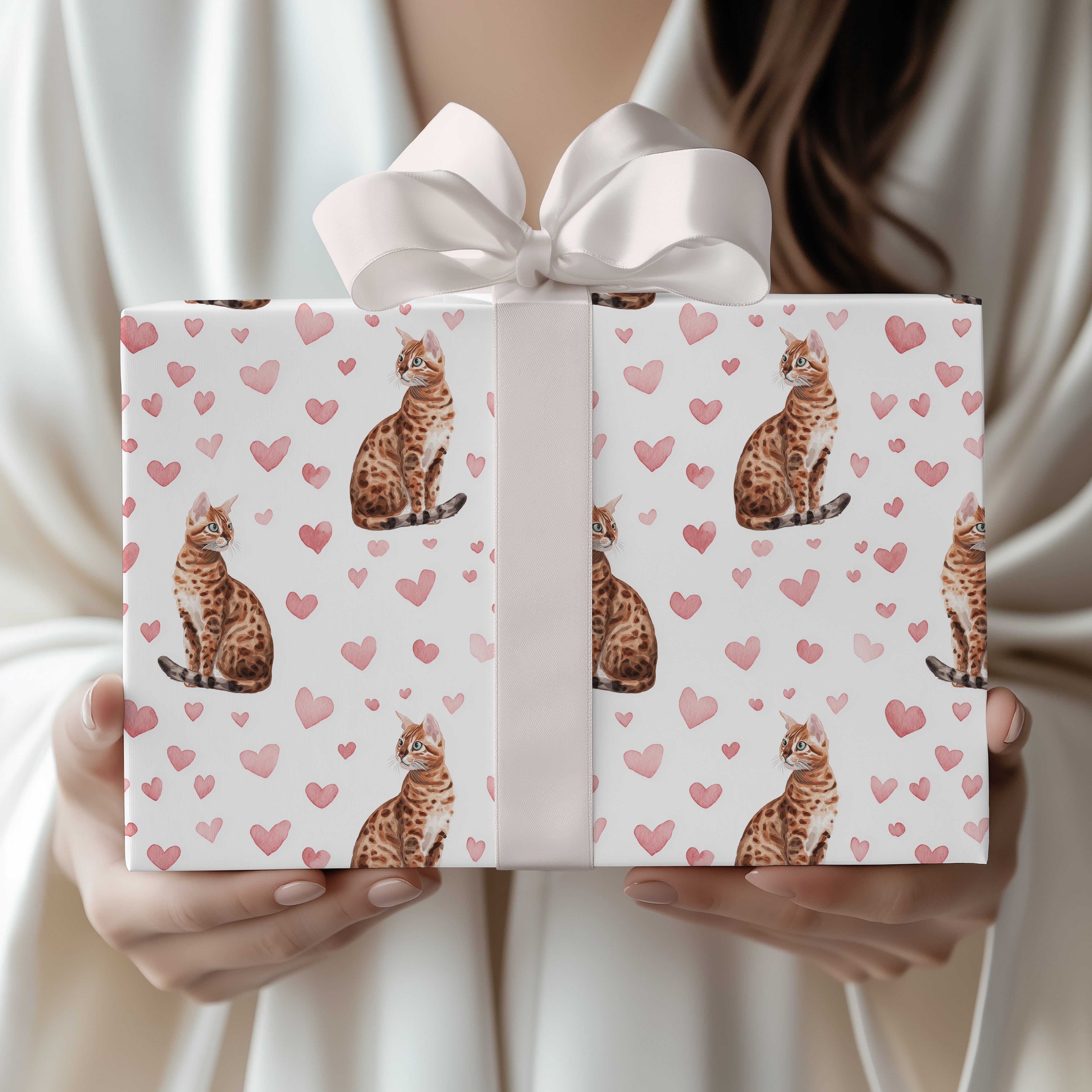 Amberheart Bengal – Elegant Watercolor Bengal Cat Love Pattern wrapping paper