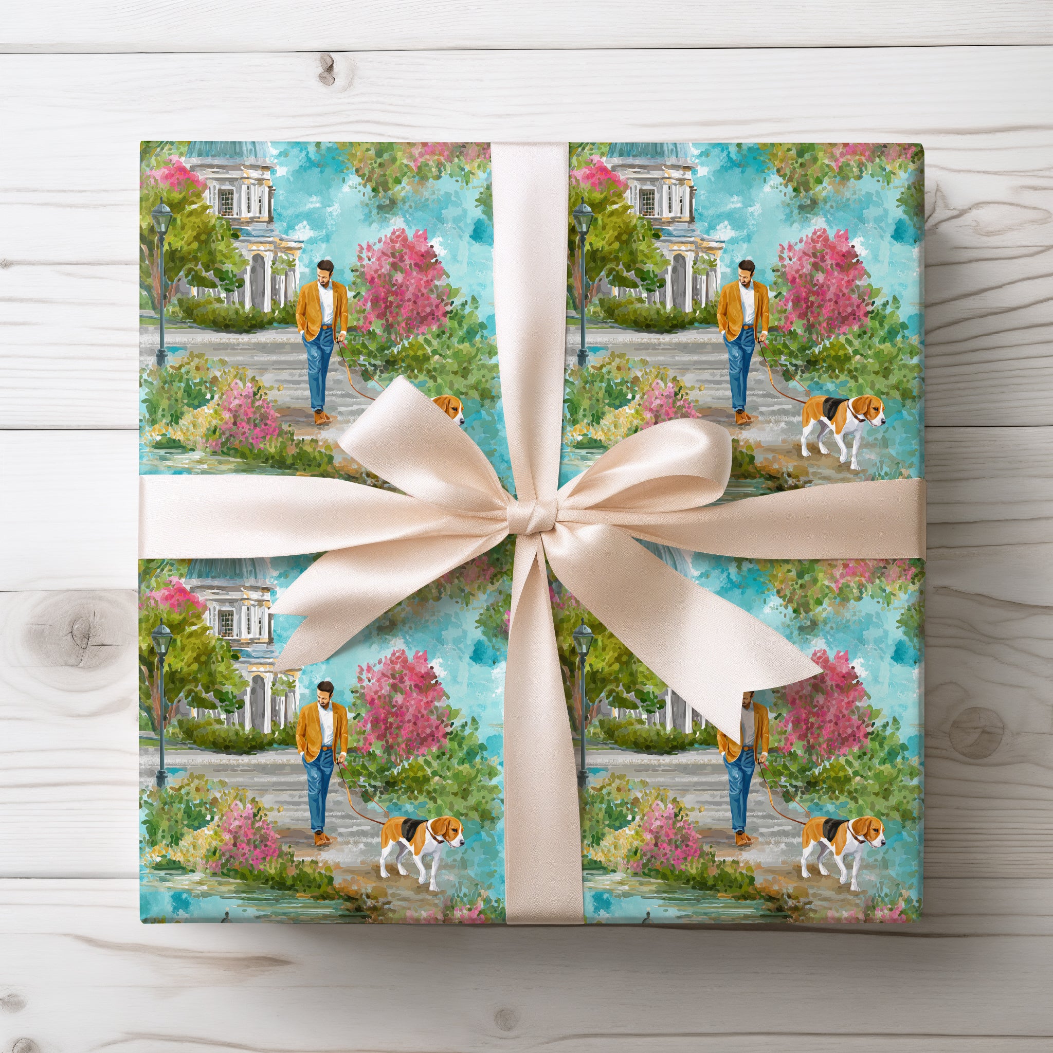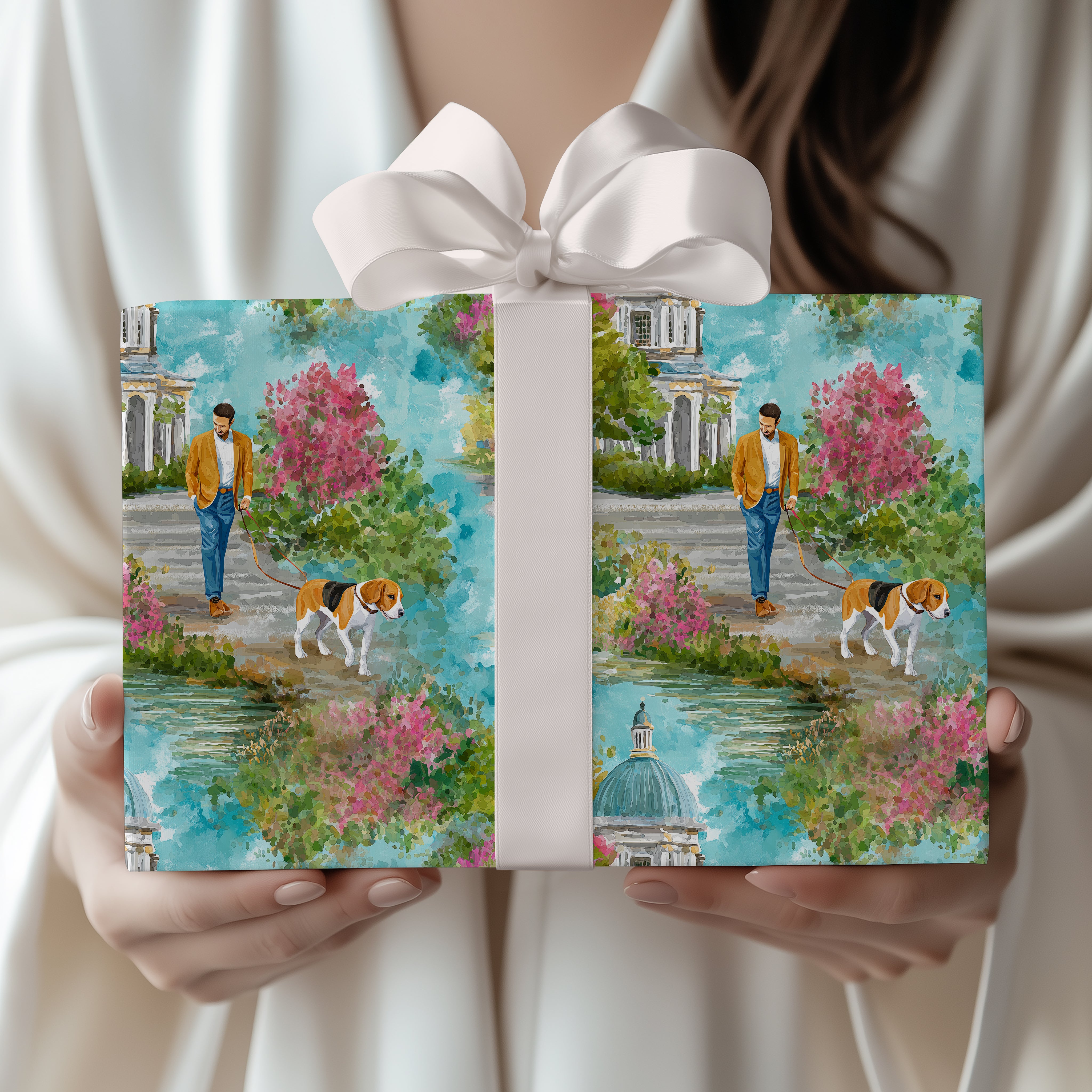 Beagle Breeze – Man Walking Beagle Dog in Park Wrapping Paper