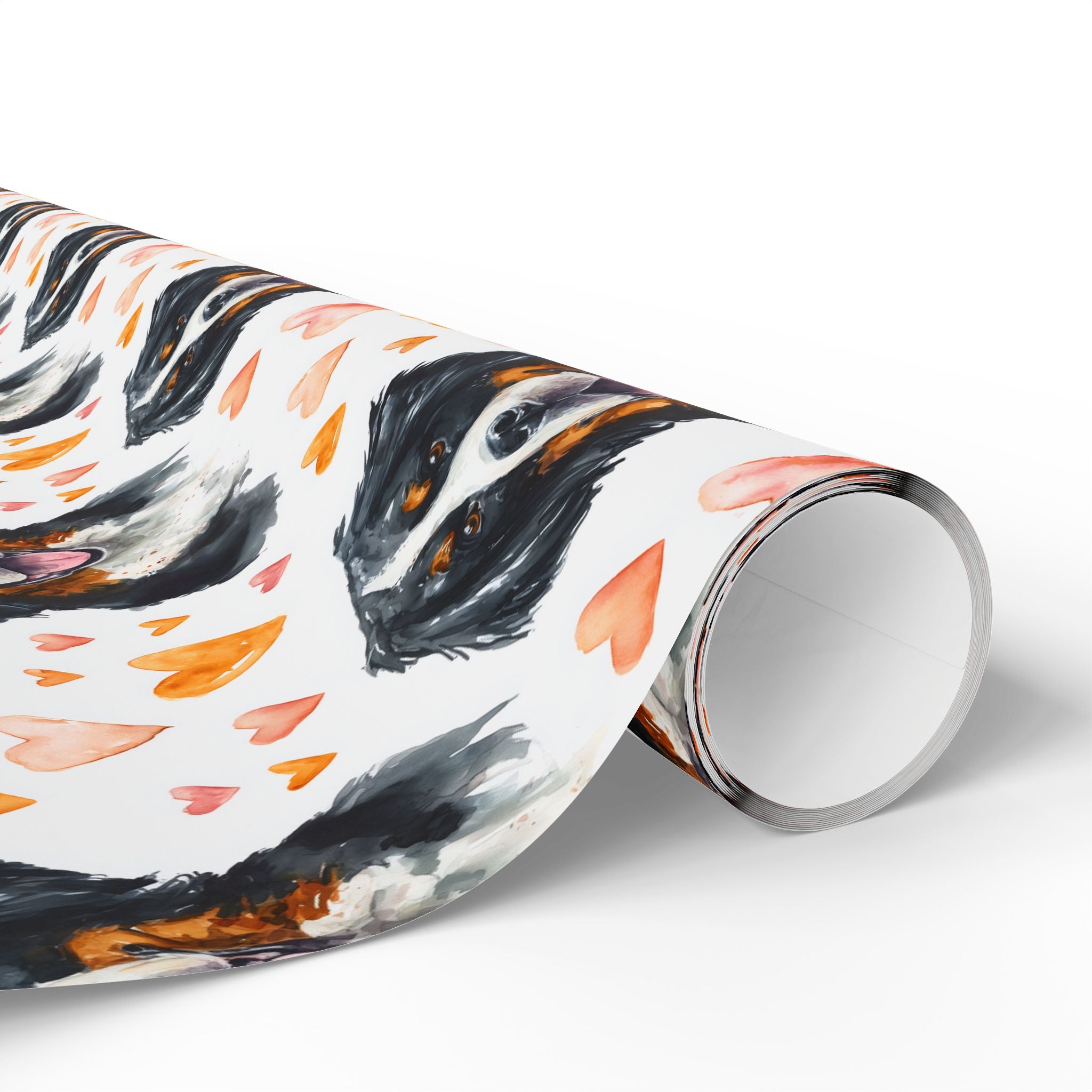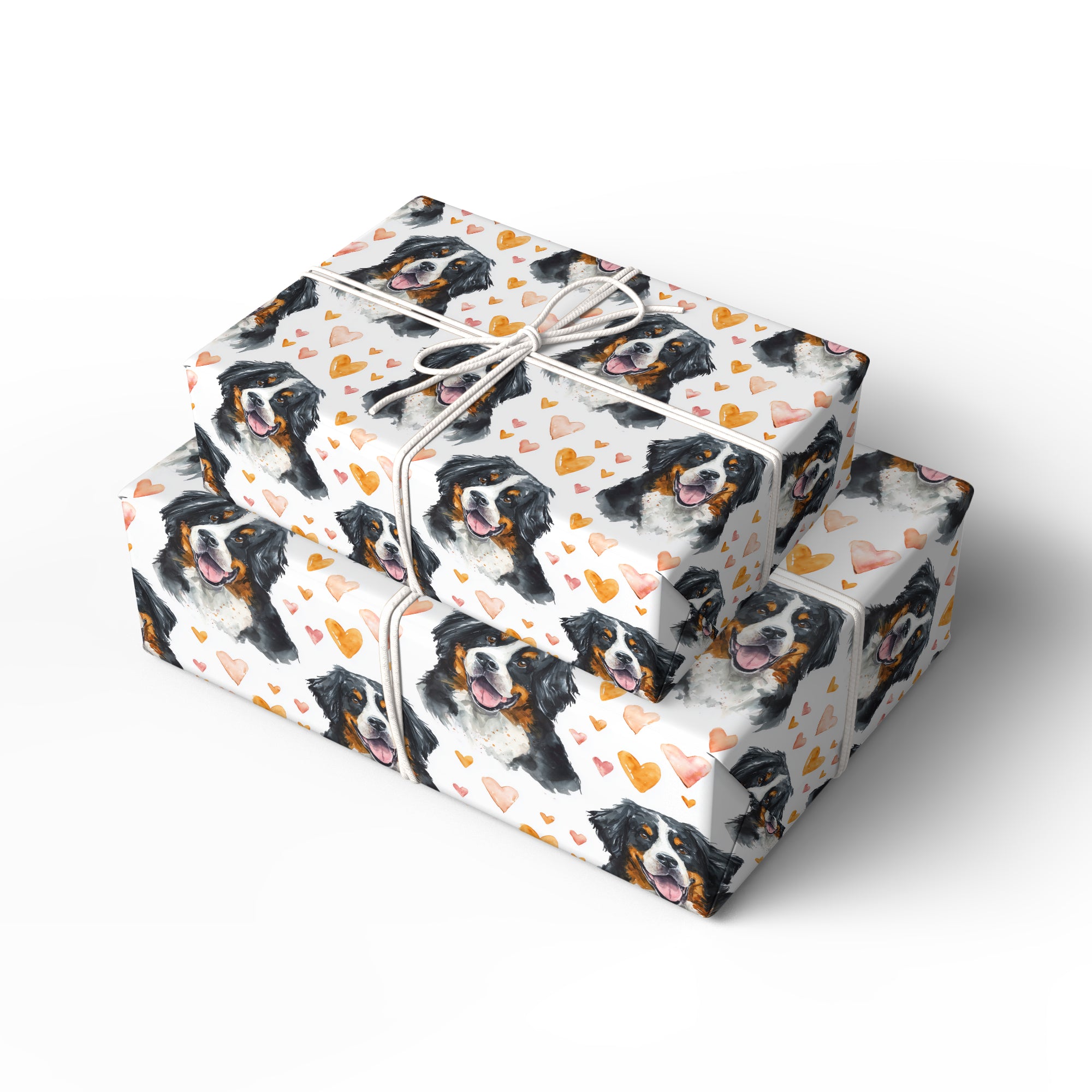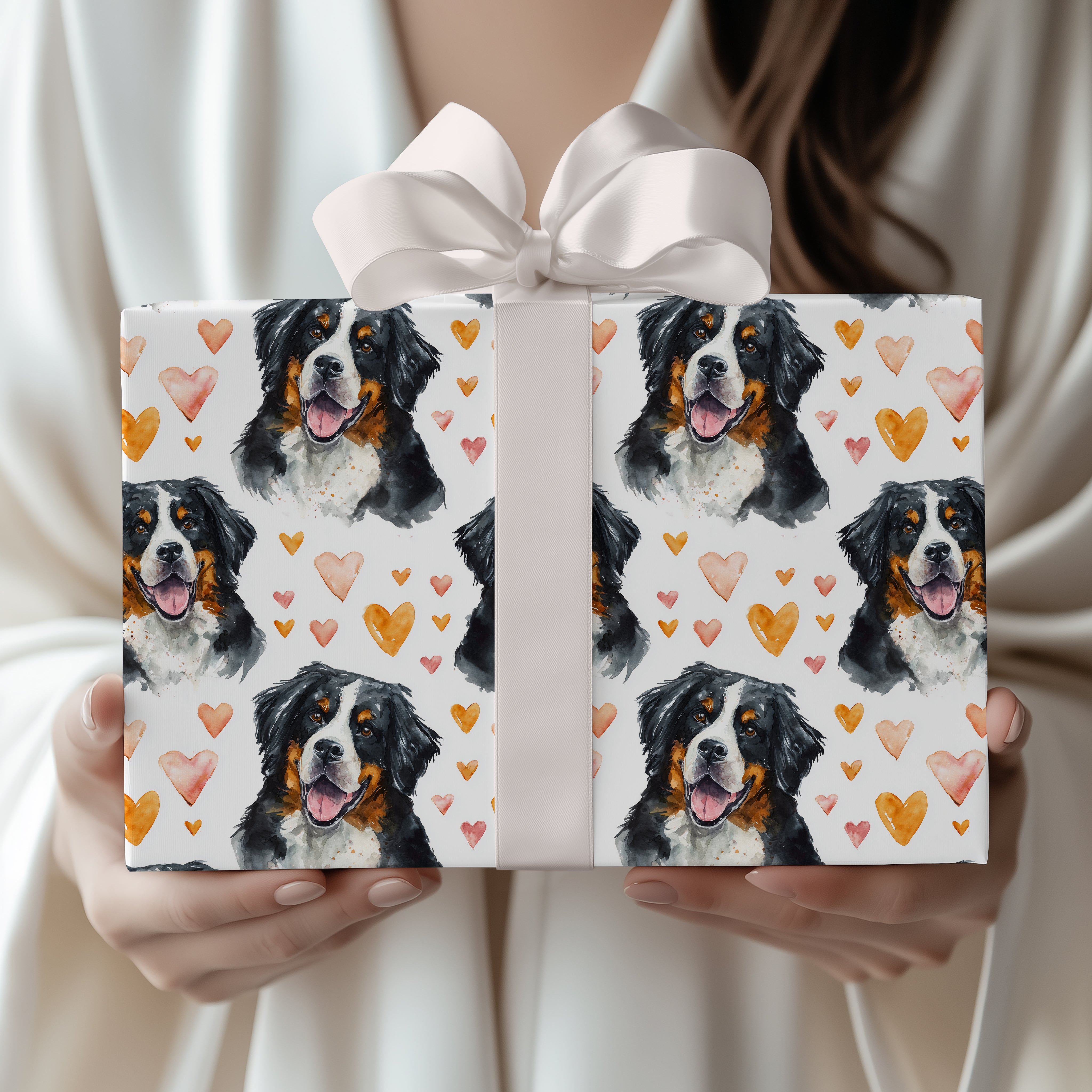 Bernheart Glow – Bernese Mountain Dog with Orange Watercolor Hearts wrapping paper