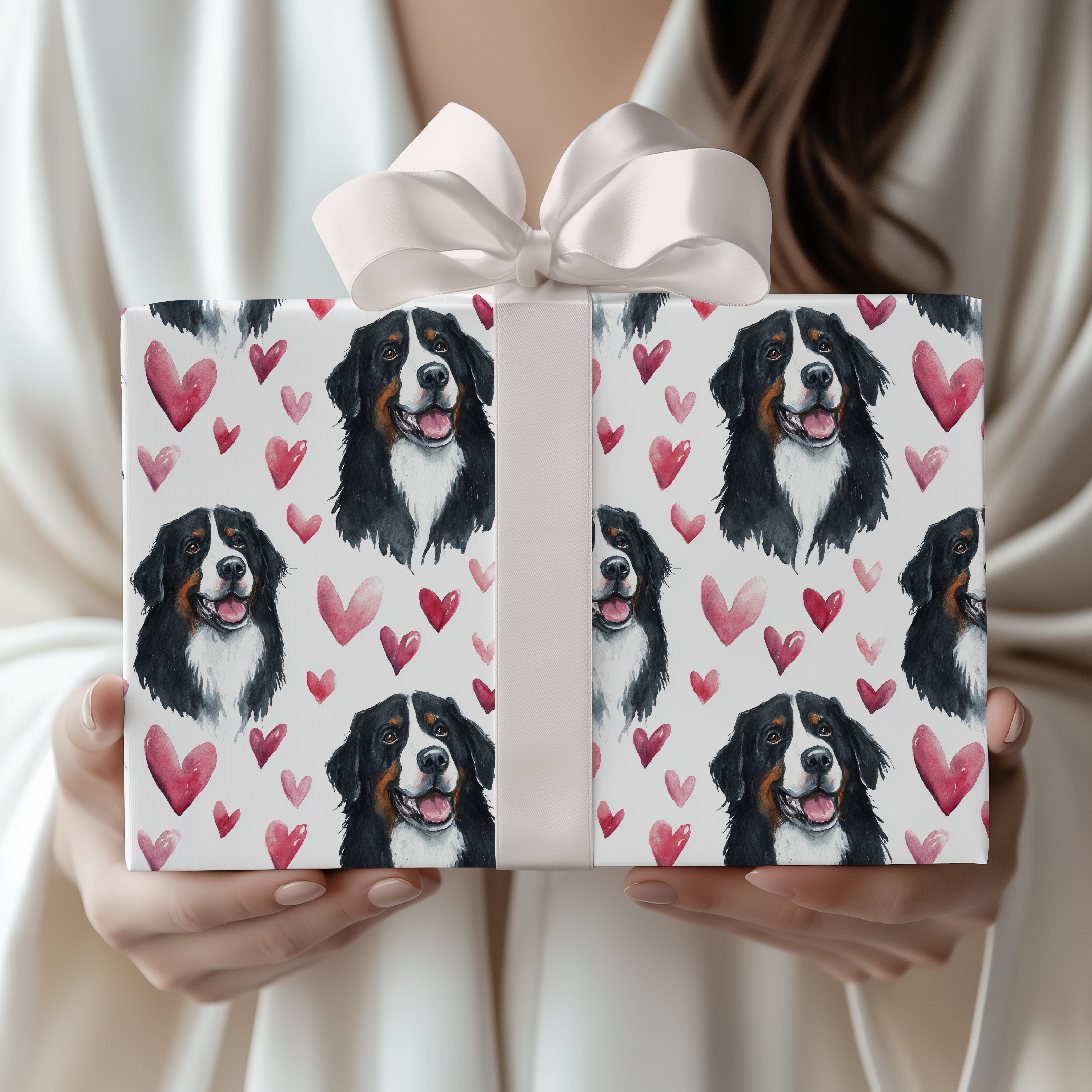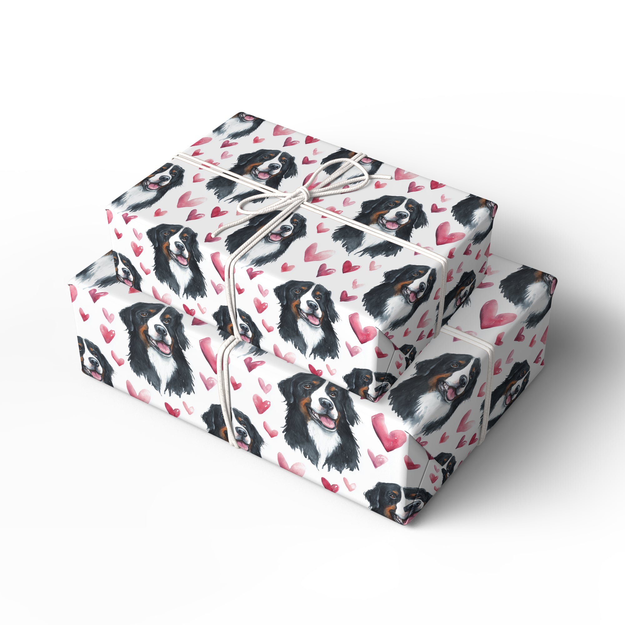 Bernluck Heart – Bernese Mountain Dog with Red Hearts wrapping paper