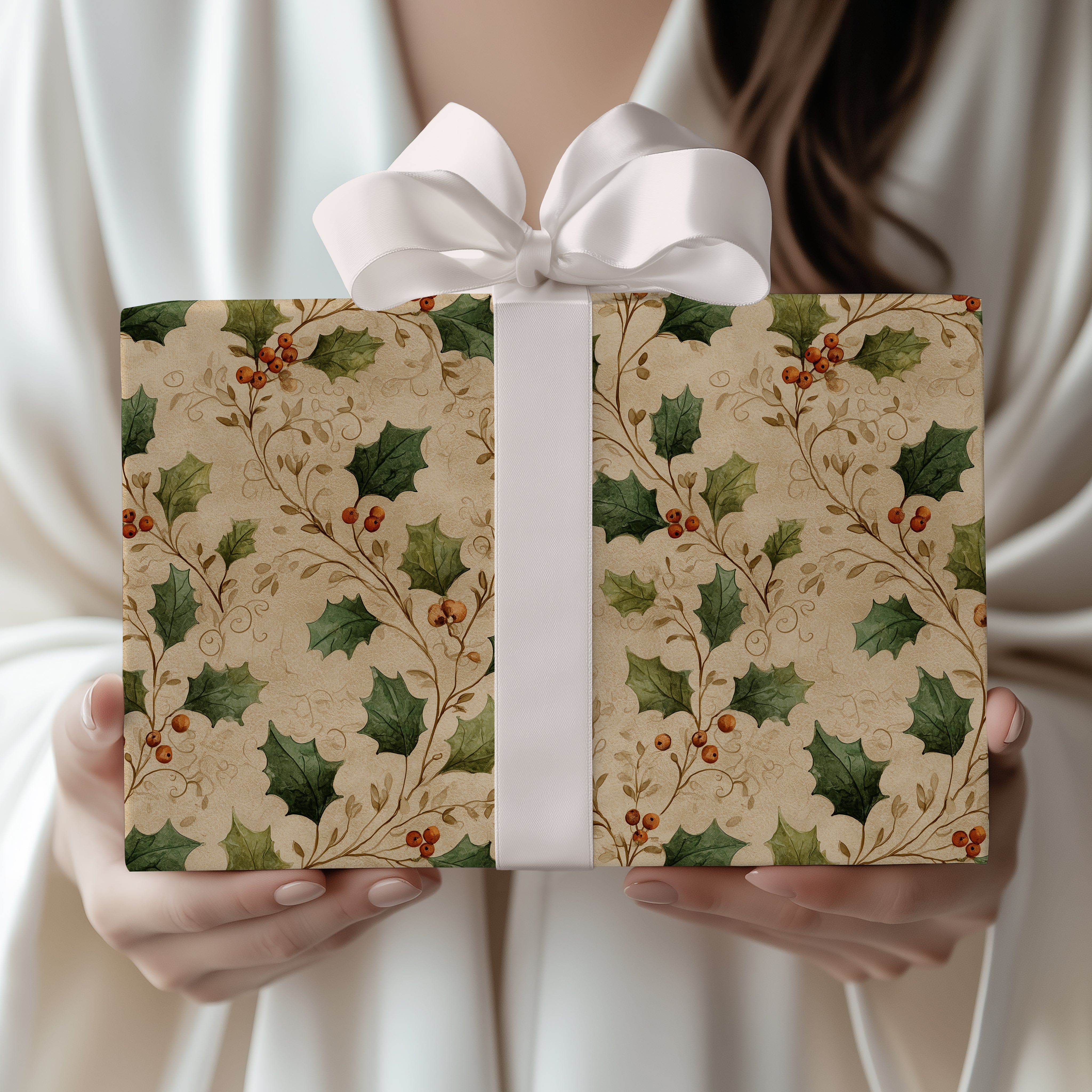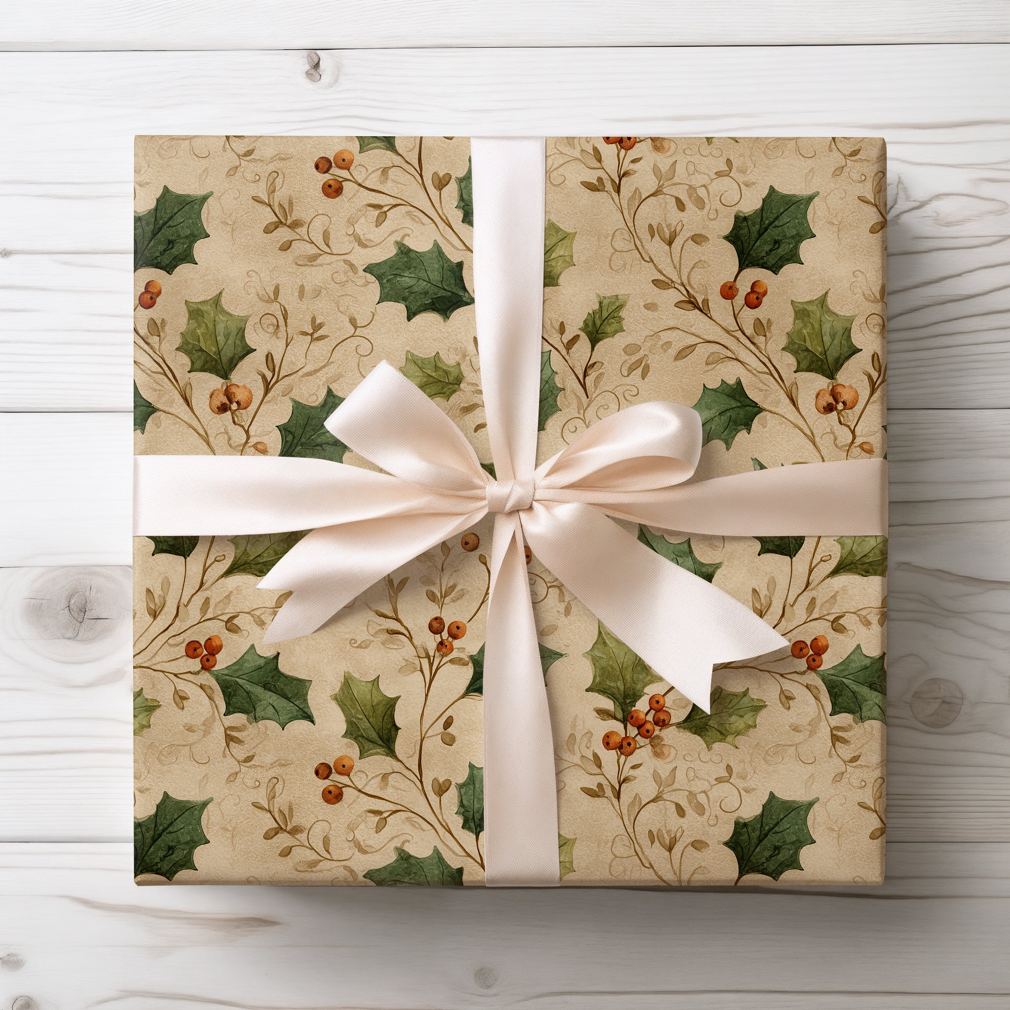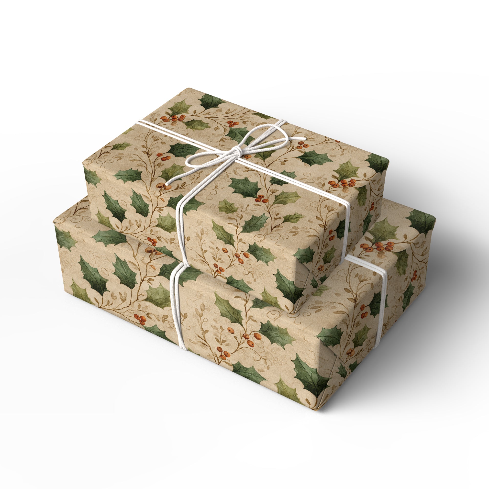 Berrythorn - Rustic Holly & Branches Wrapping Paper
