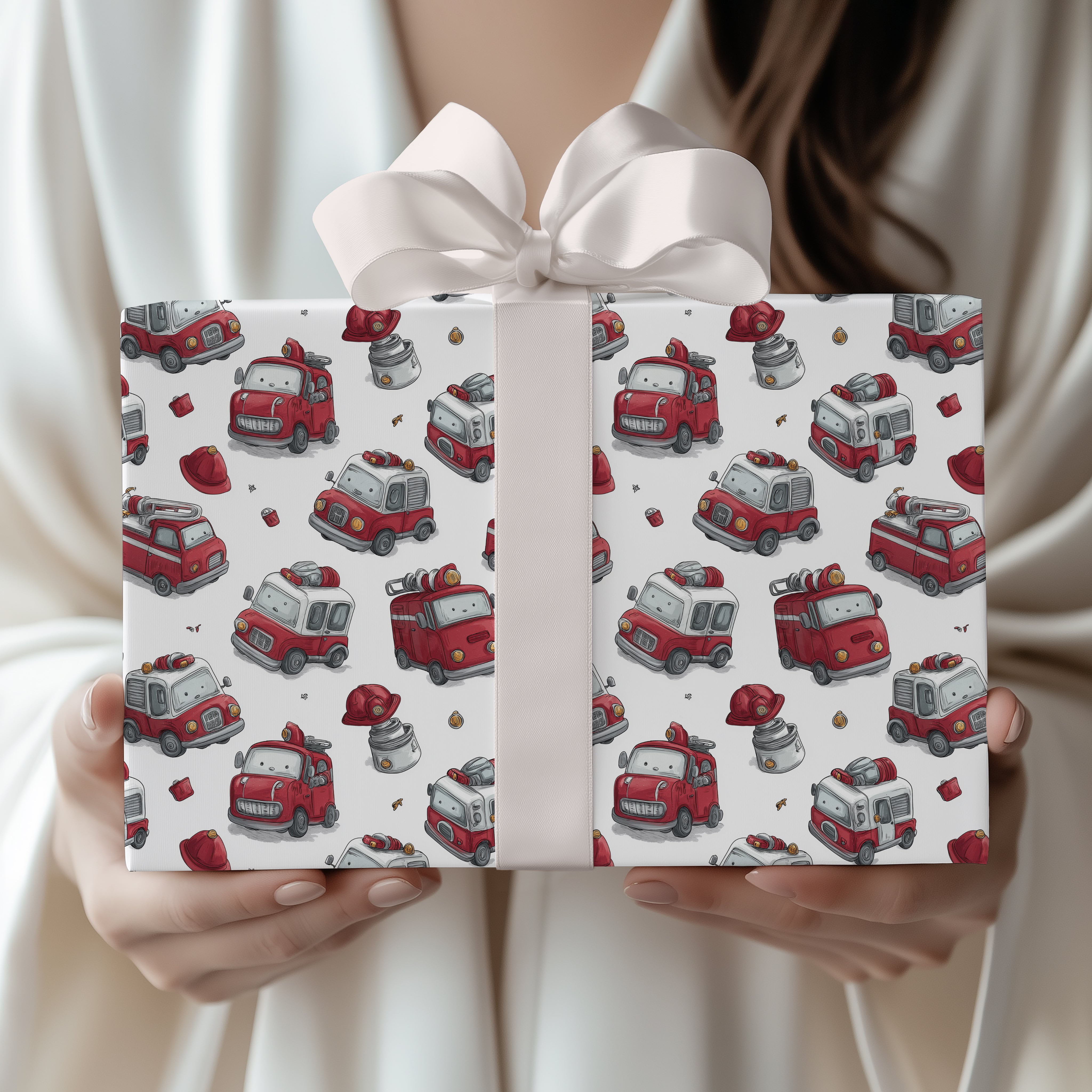 Blazewheel – Cute Cartoon Fire Truck Pattern Wrapping Paper