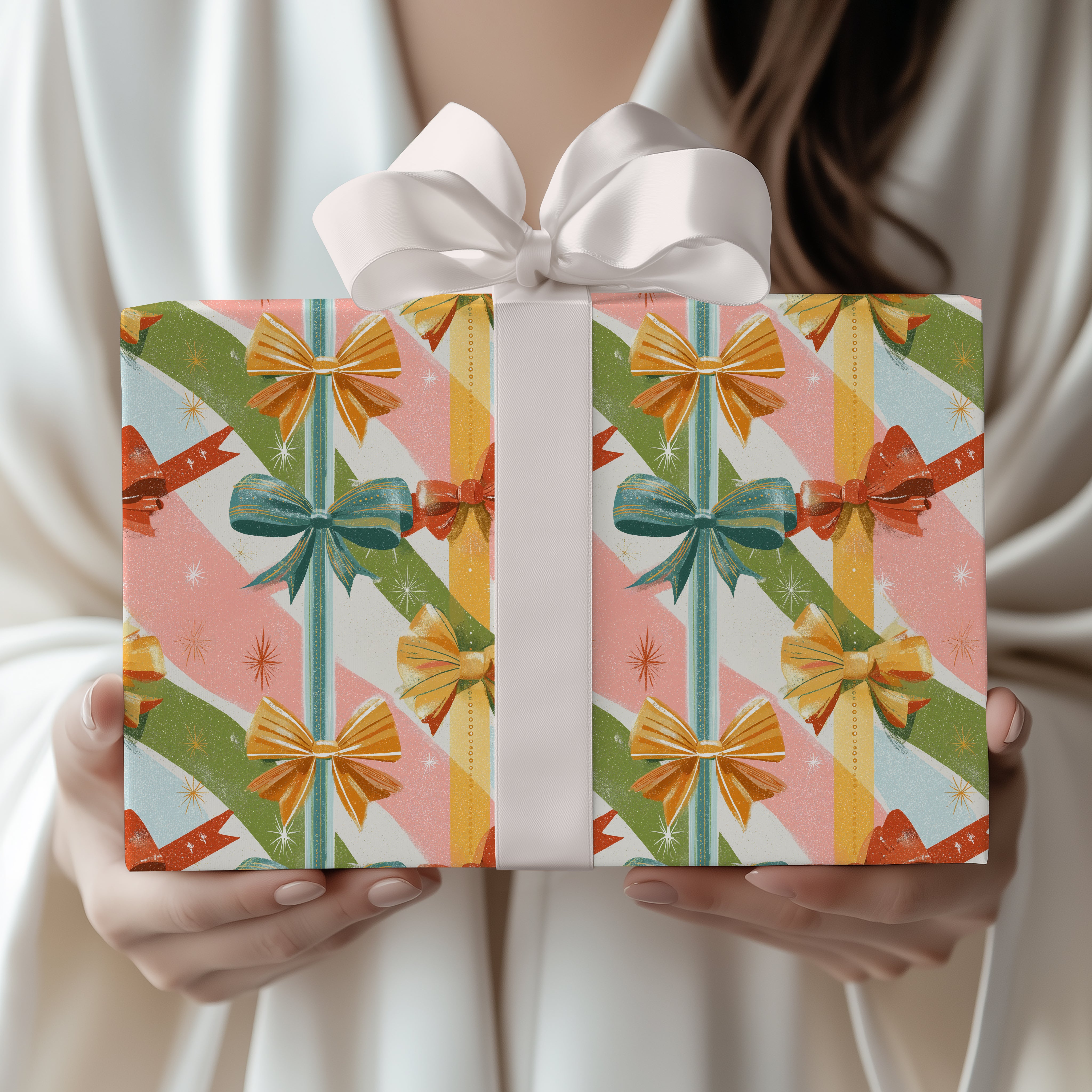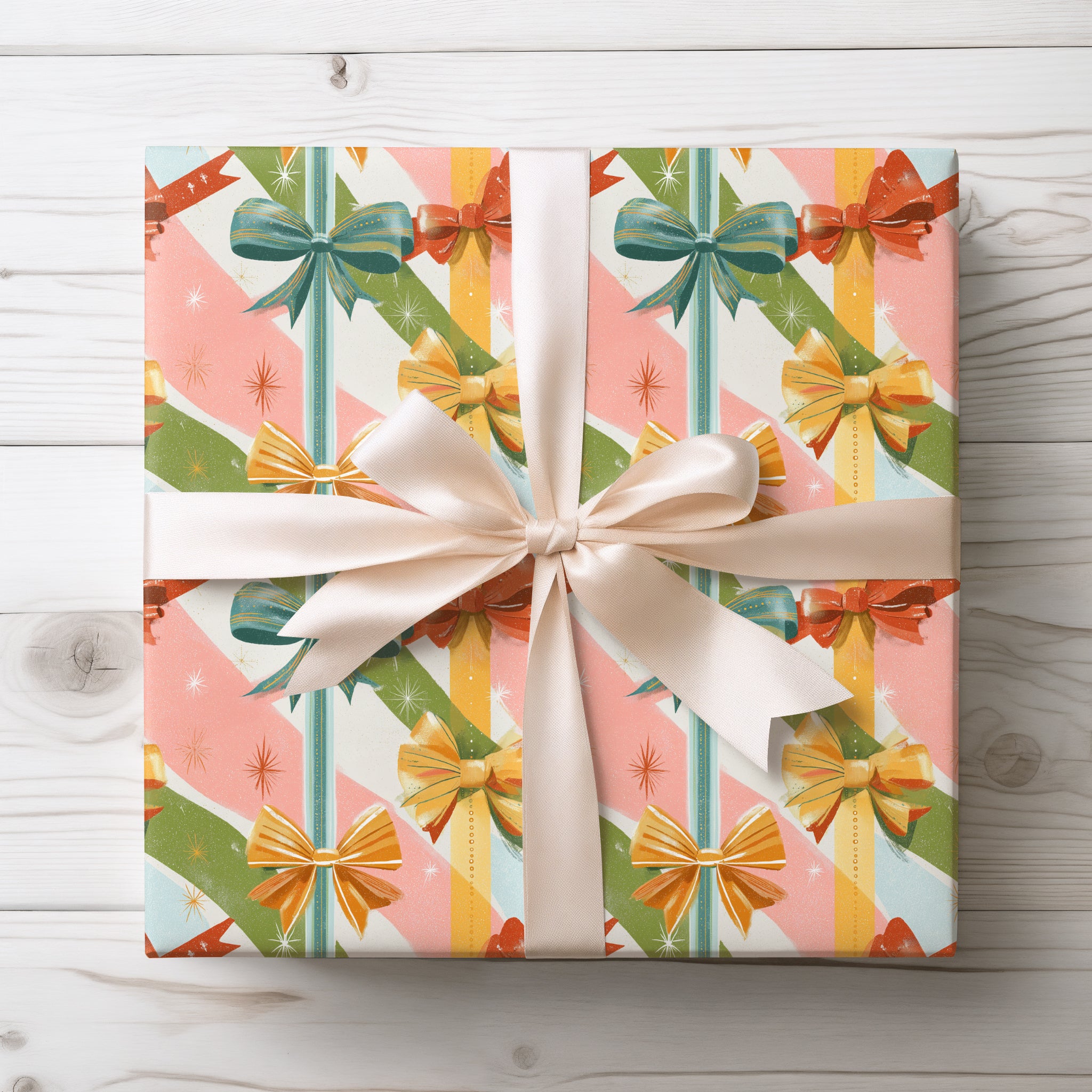 Bowlique – Retro Holiday Gift Bows Wrapping Paper