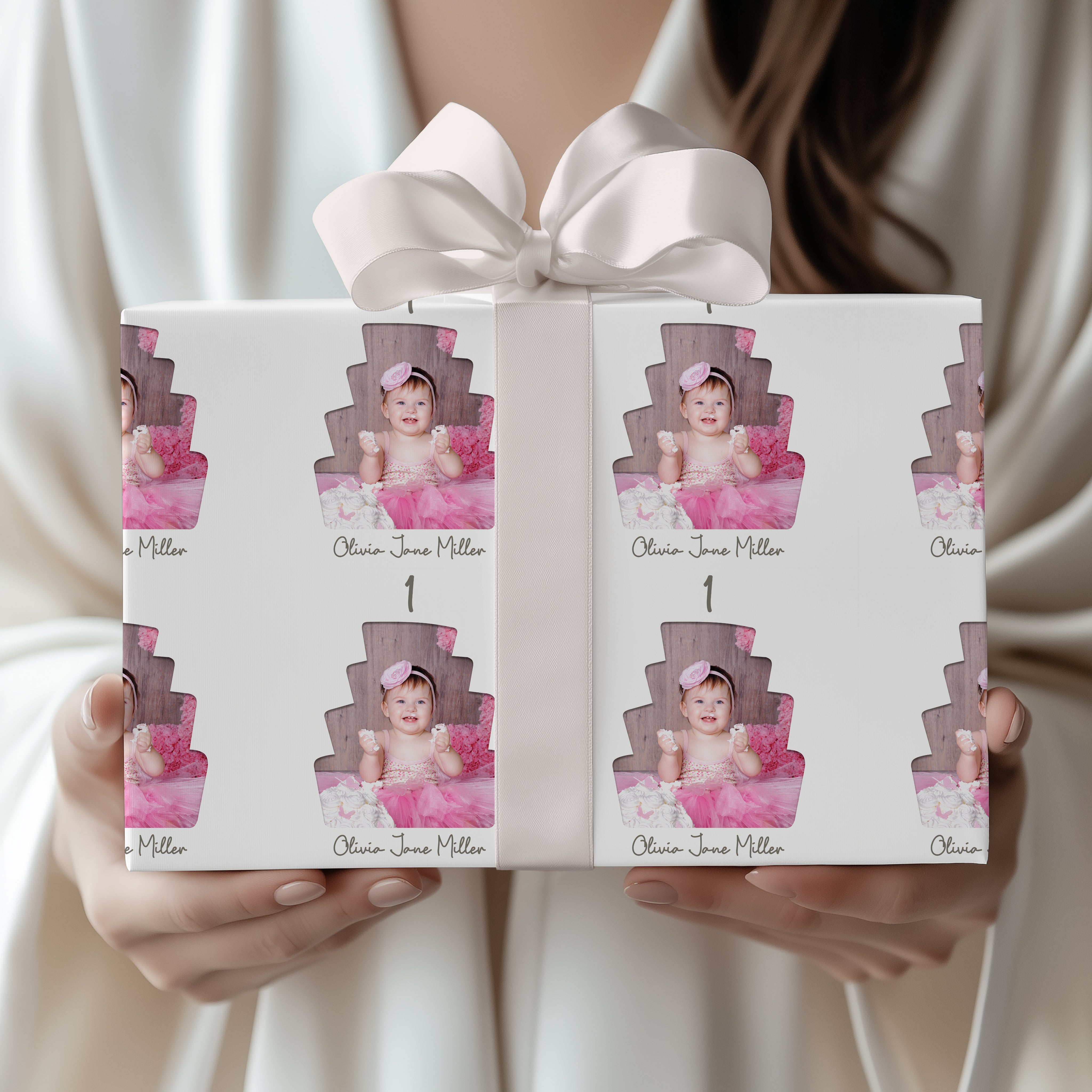 Cakesnap Keepsake – Custom Birthday Photo Wrapping Paper with Name - 1 custom photo