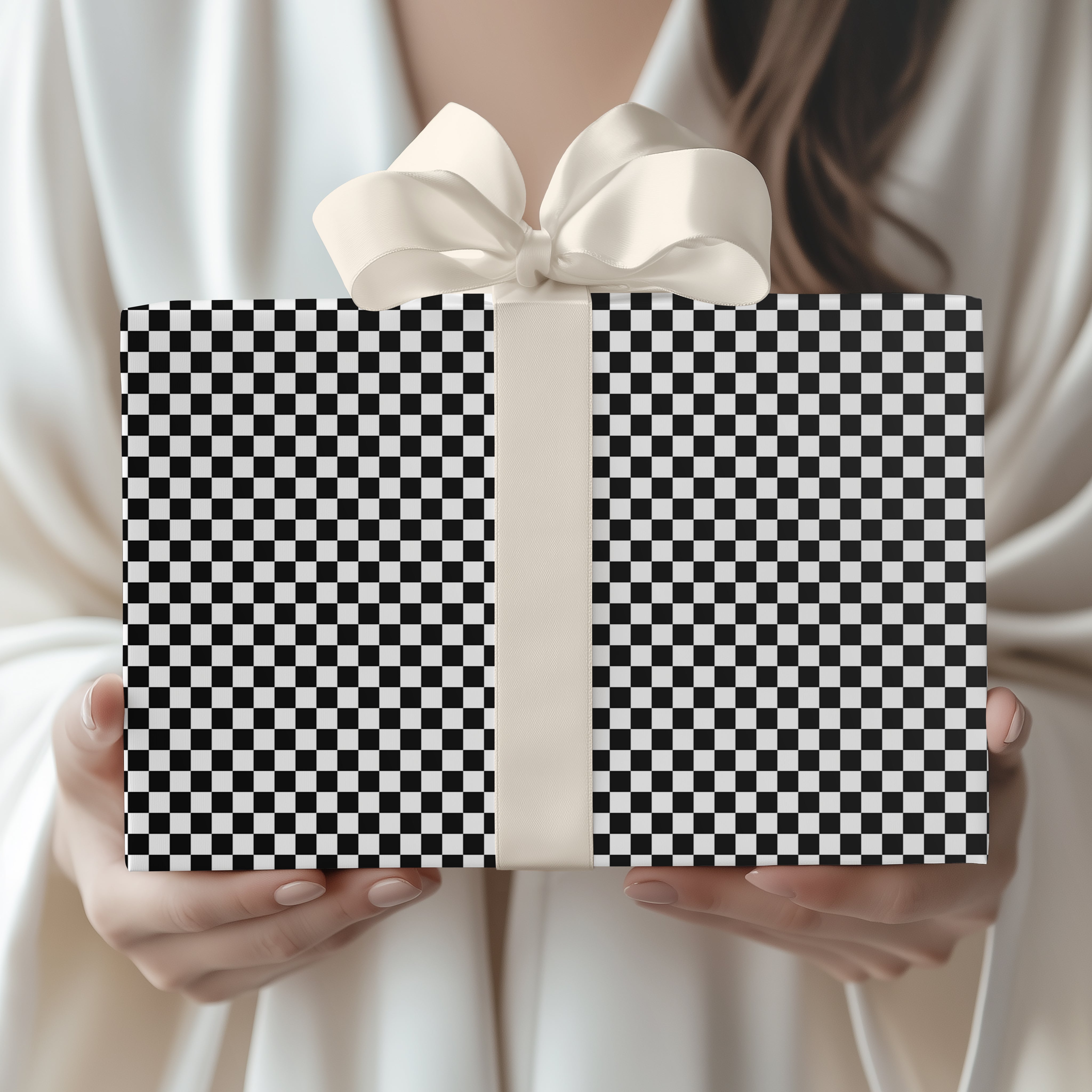 Checkerboard Charm - Timeless Black and White Checker Pattern Wrapping Paper