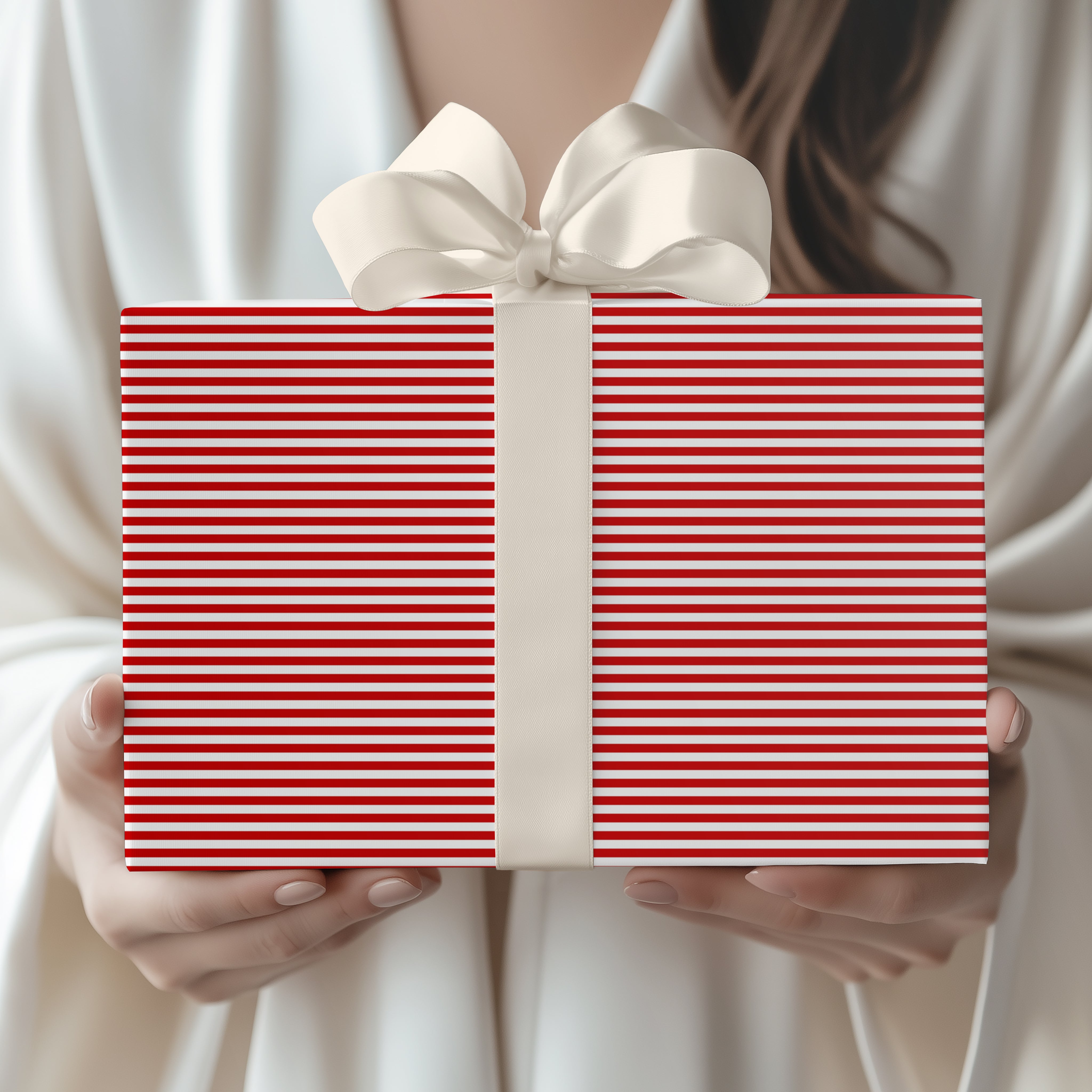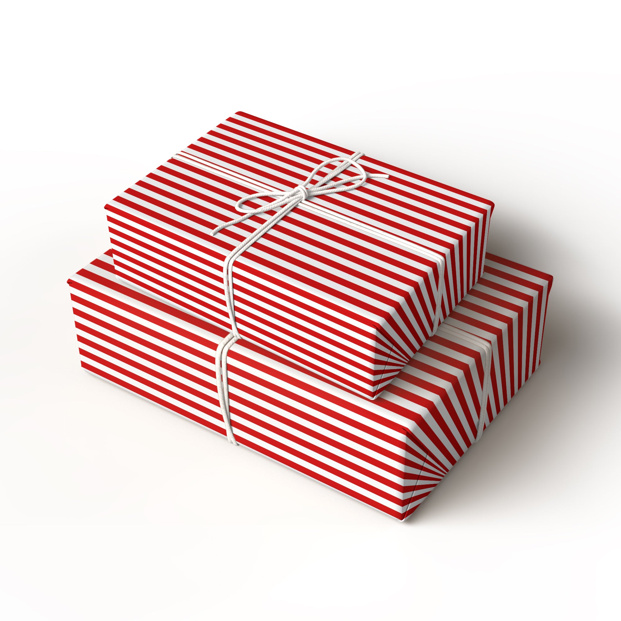 Crimson Peppermint - Red and White Stripe Pattern Wrapping Paper