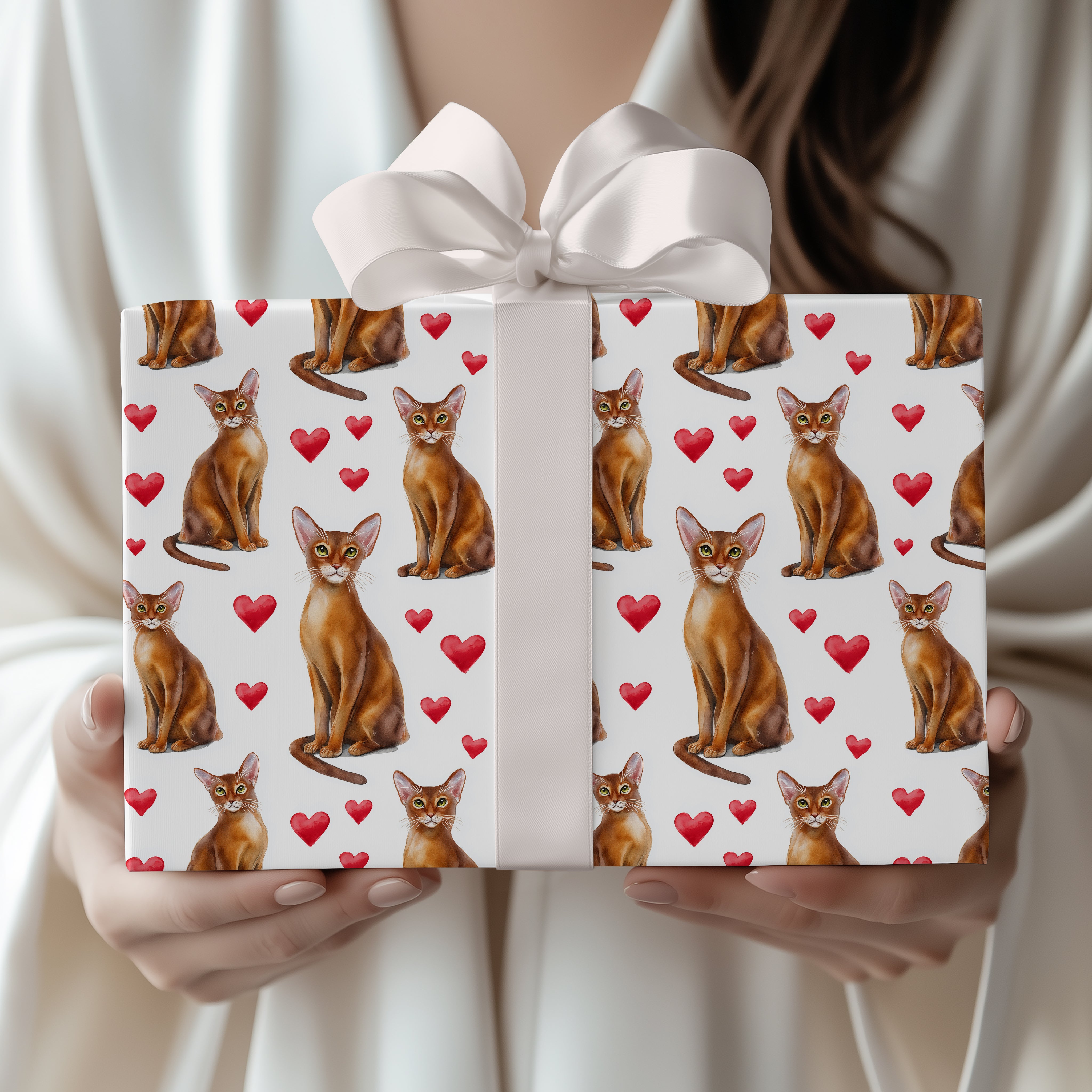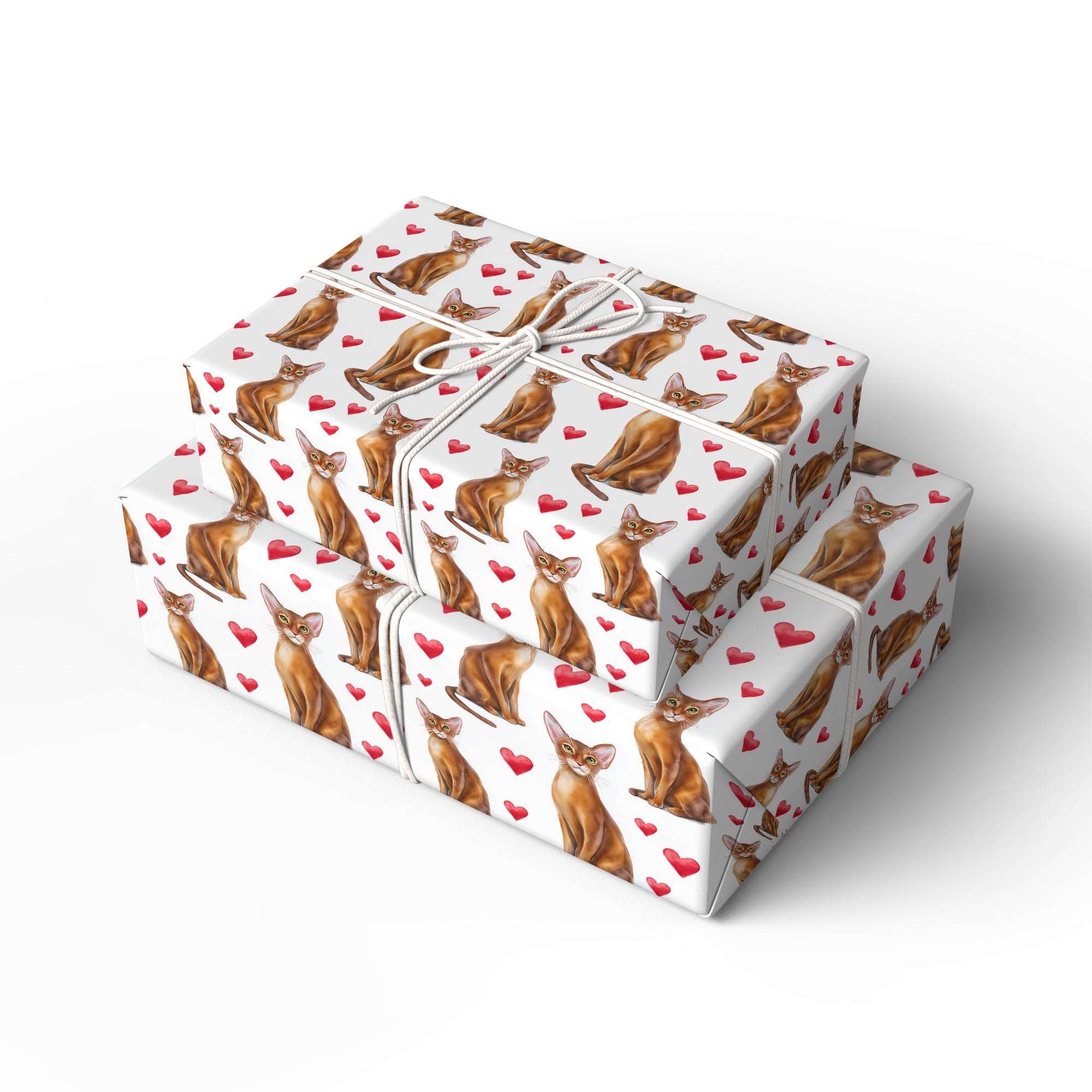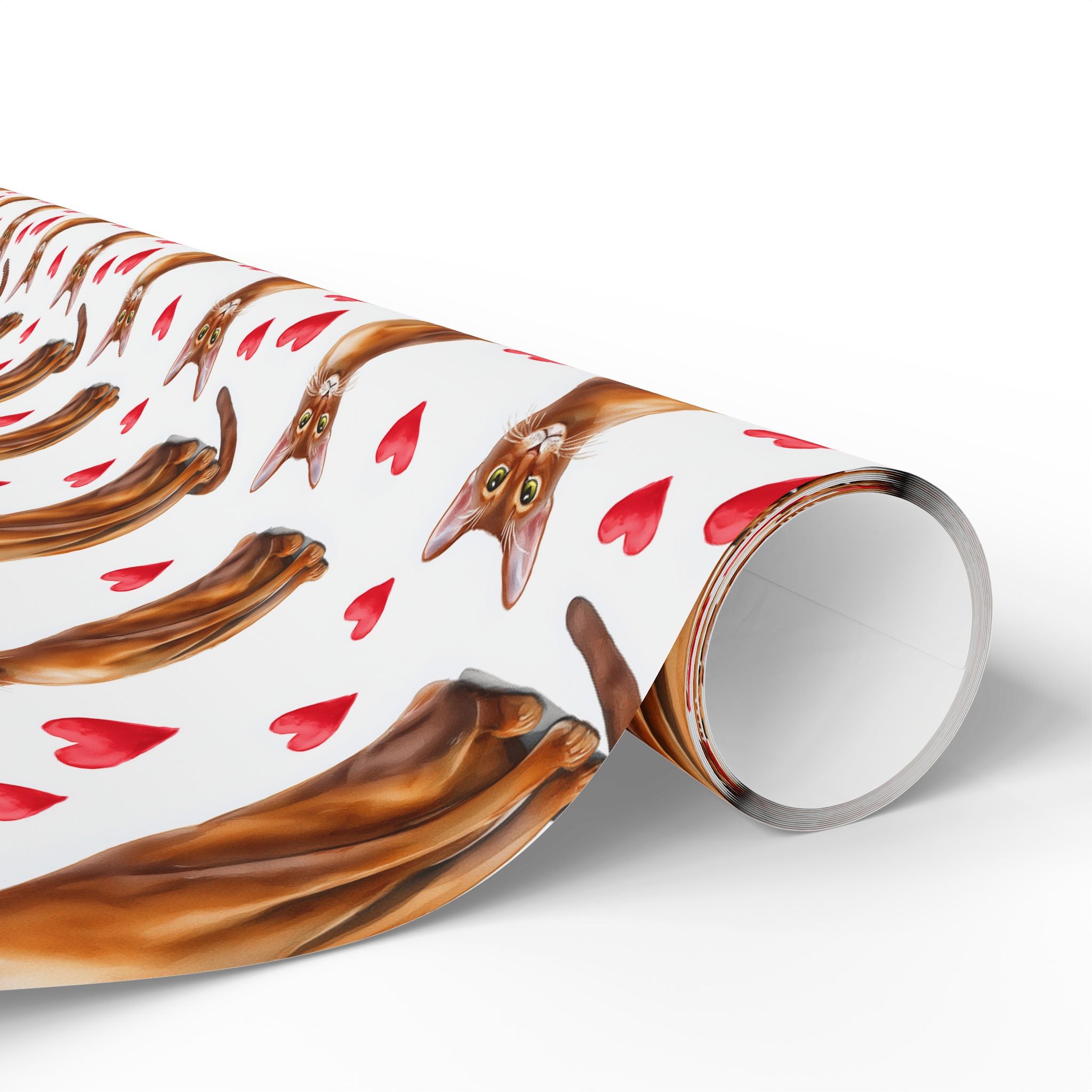 Crimsonwhisk Charm – Romantic Watercolor Cat with Hearts Wrapping Paper