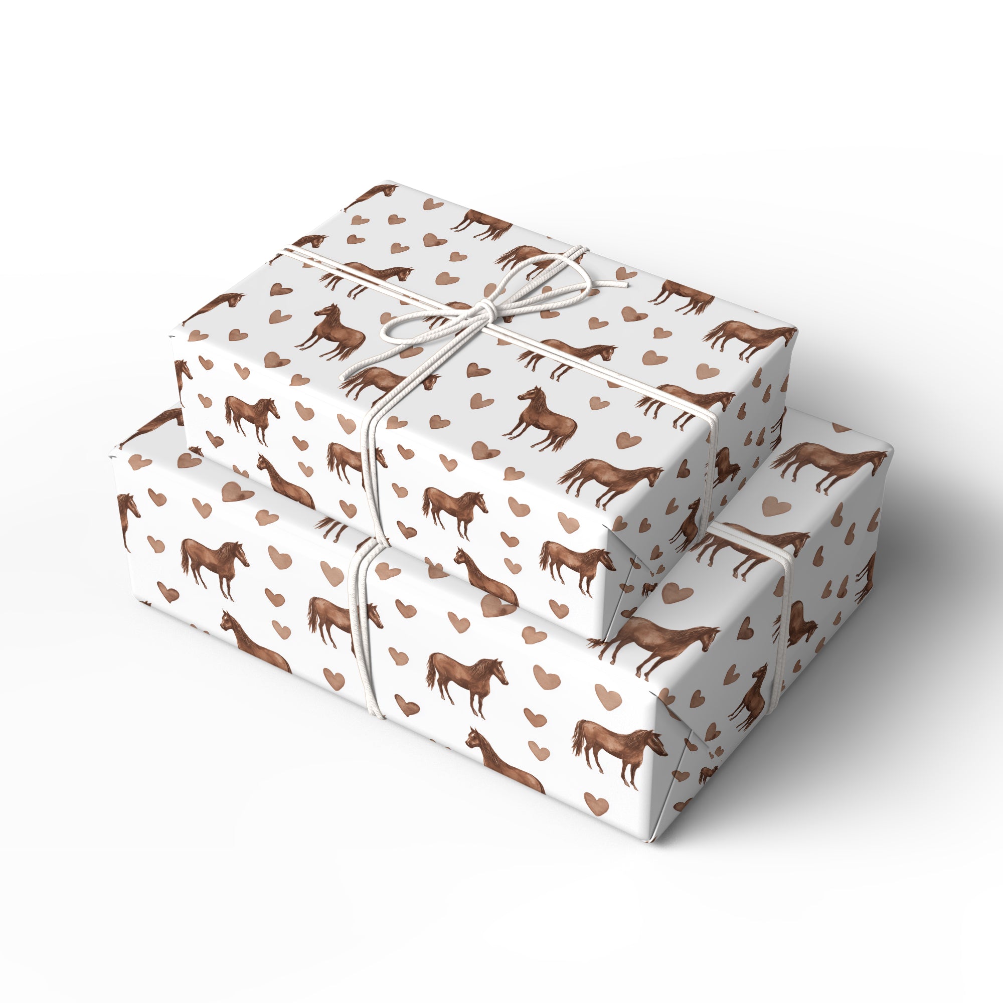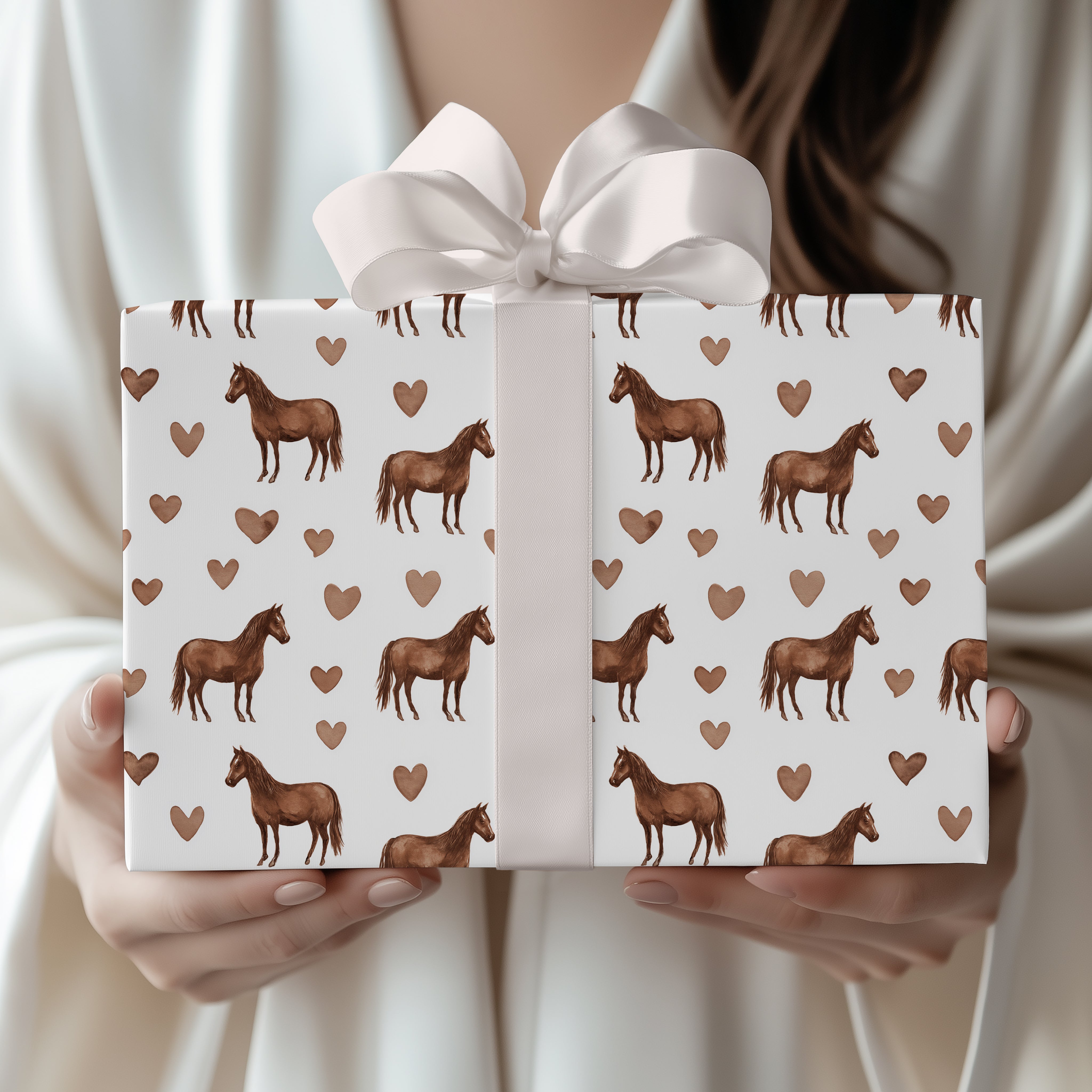 Equitine Whispers – Sepia Watercolor Horses and Hearts wrapping paper
