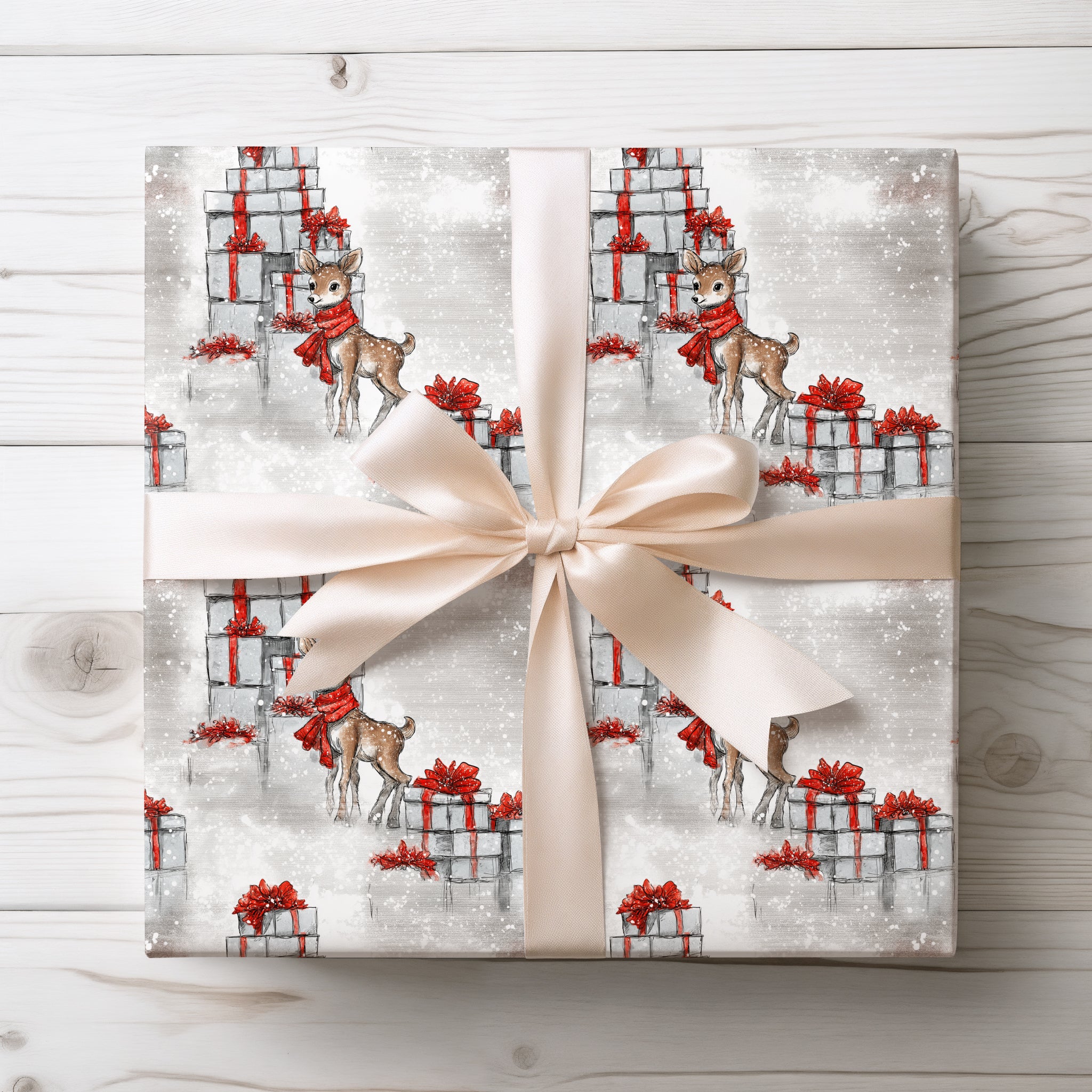 Fawnveil – Baby Deer with Red Scarf Christmas Wrapping Paper