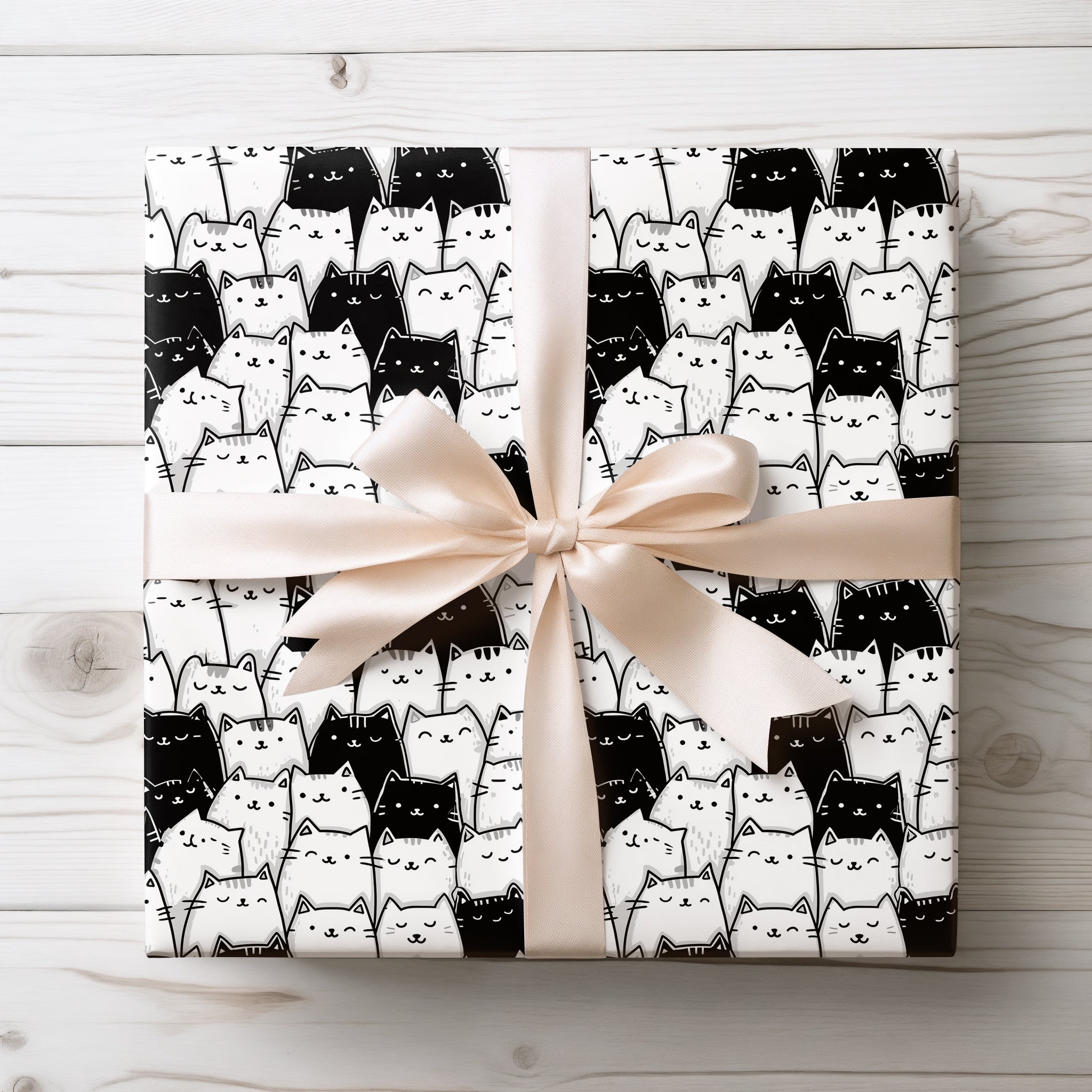Feline Fantasy - Black and White Cat Fantasy Wrapping Paper