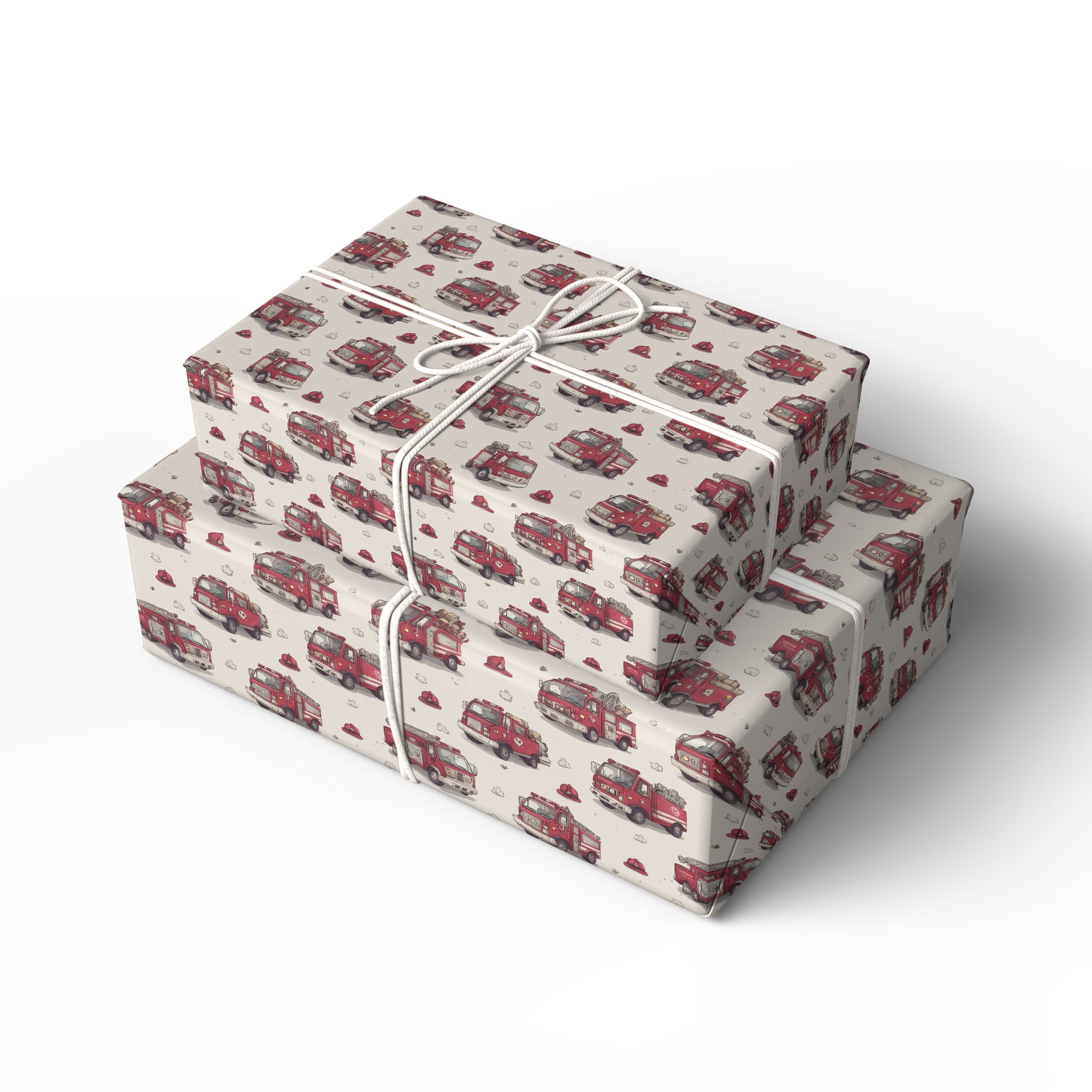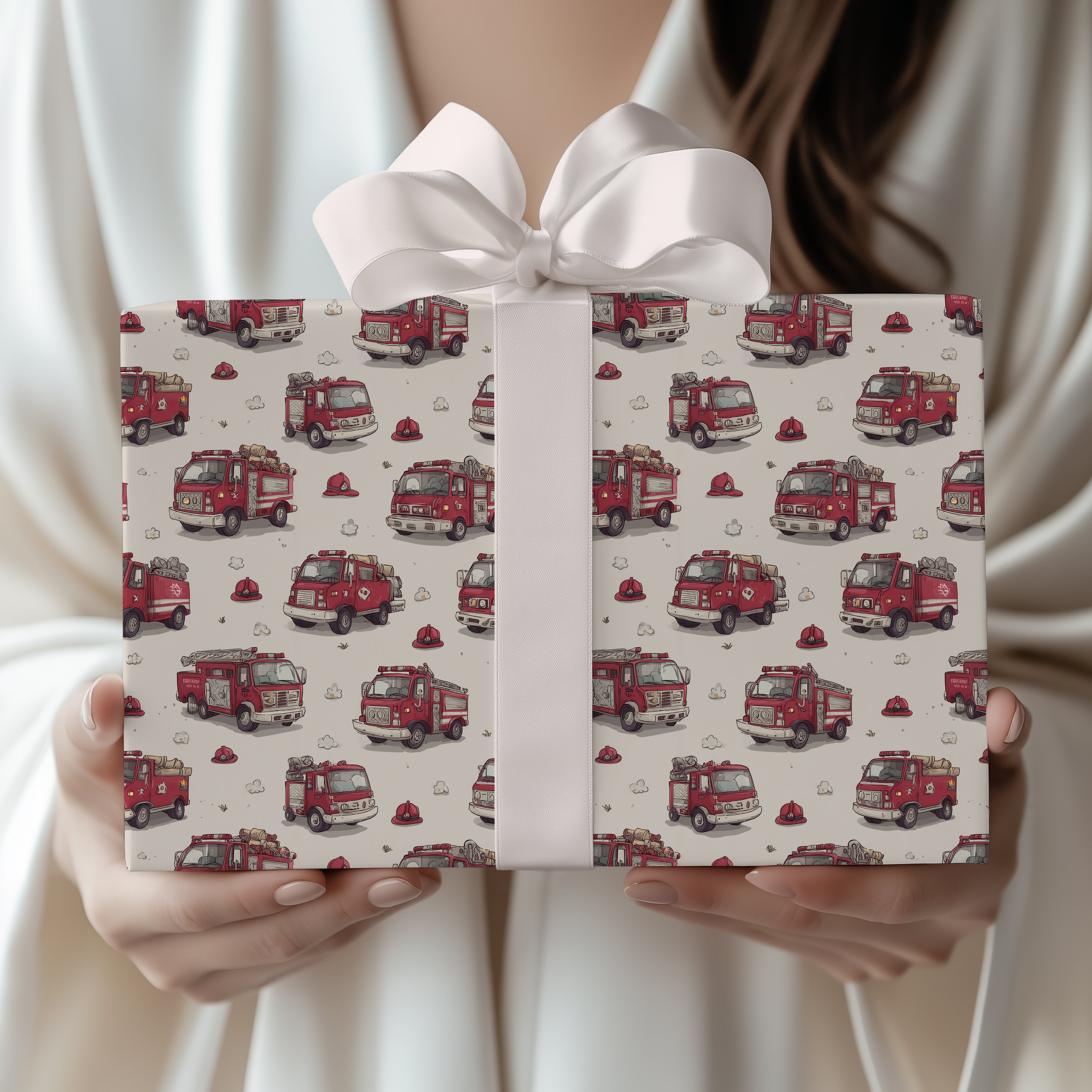 FireFleet – Vintage Red Fire Truck Pattern Wrapping Paper