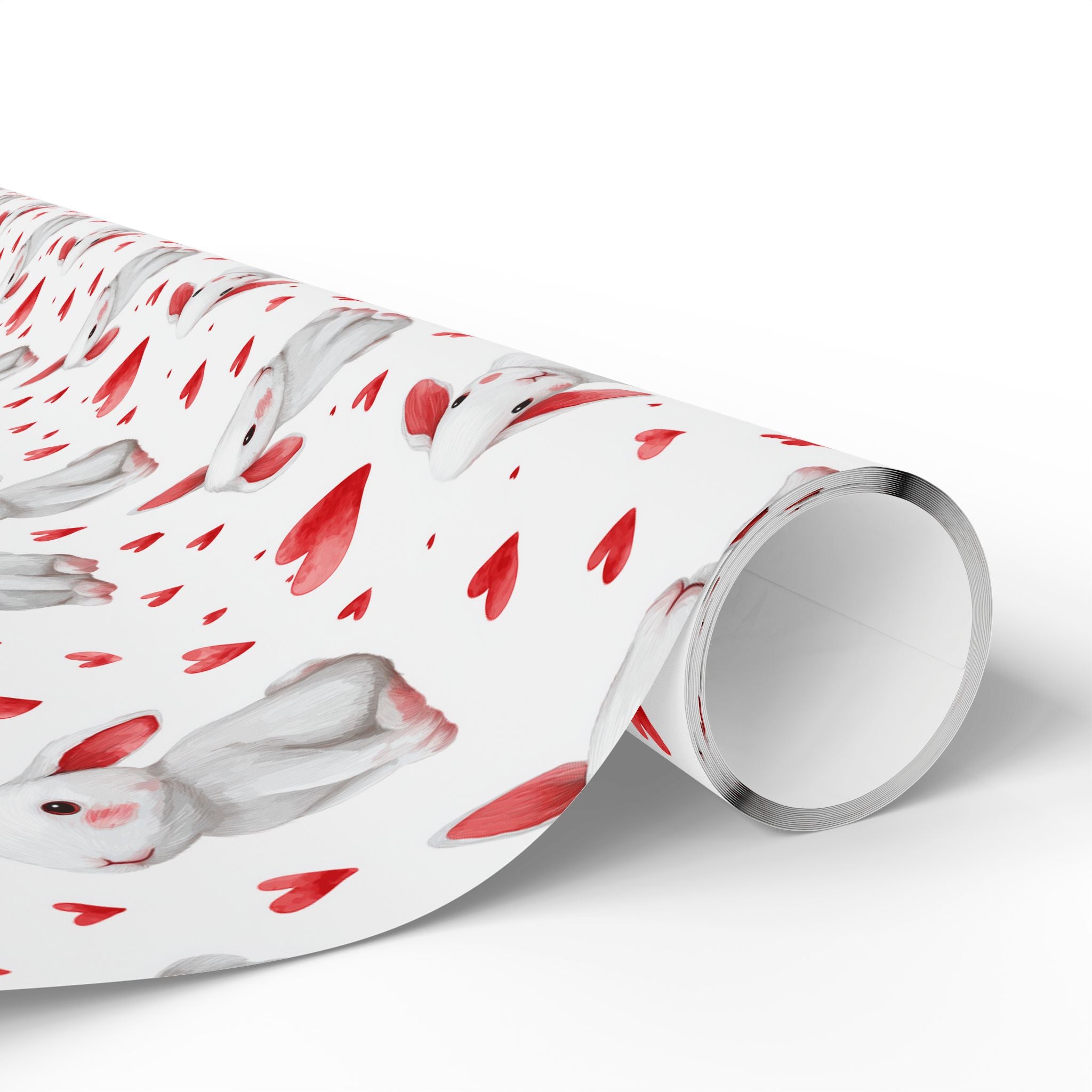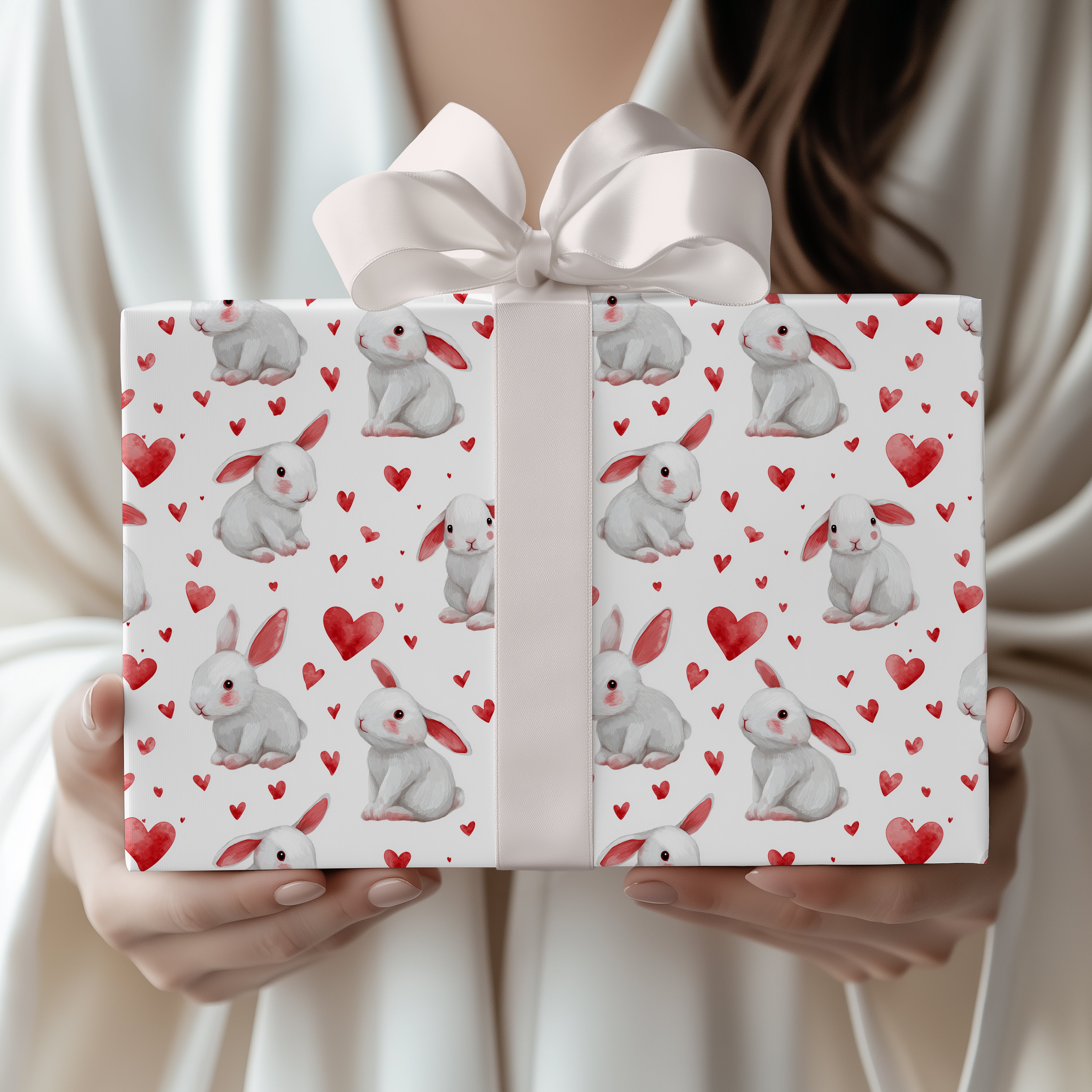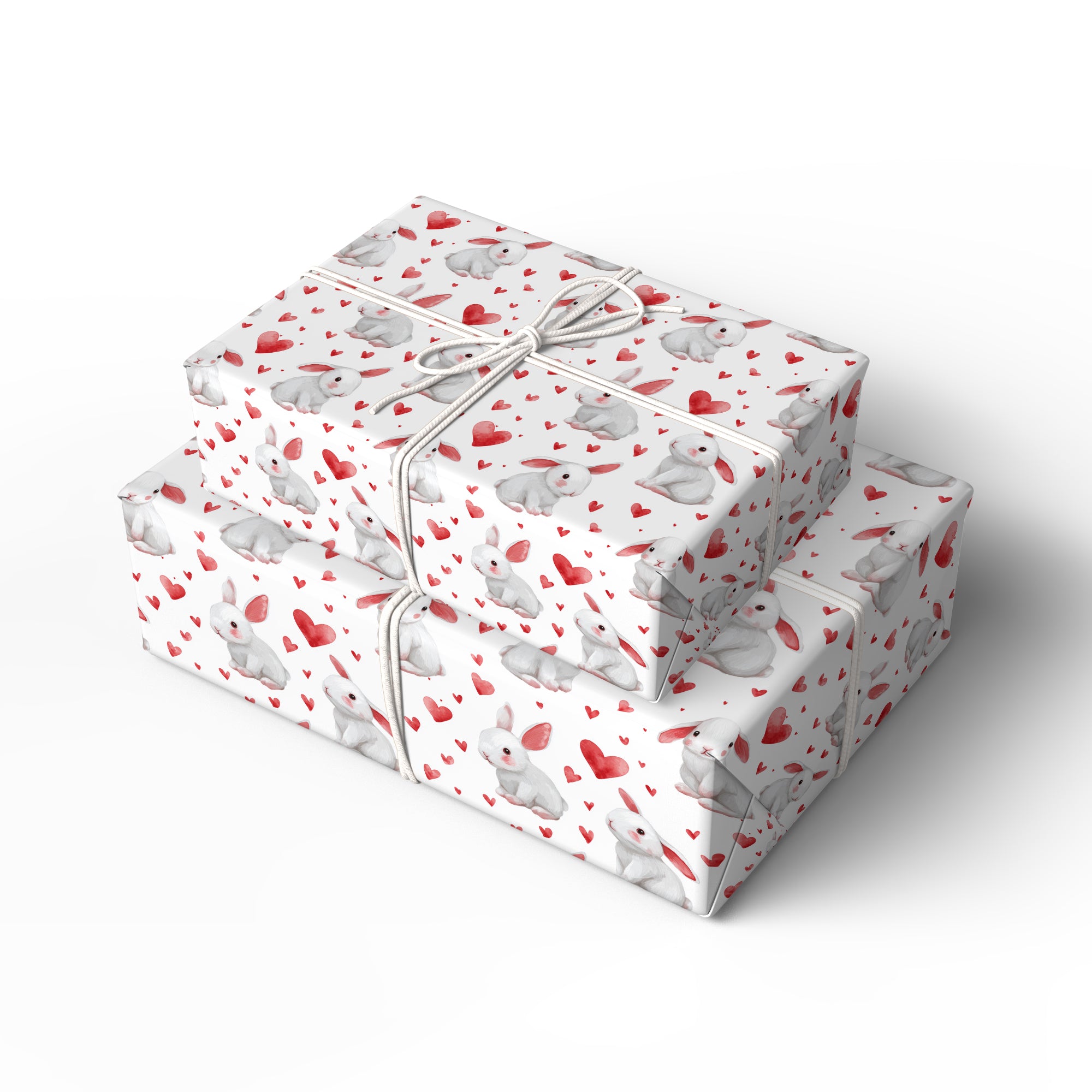 Flufflove Meadow – Sweet White Rabbits with Watercolor Hearts wrapping paper