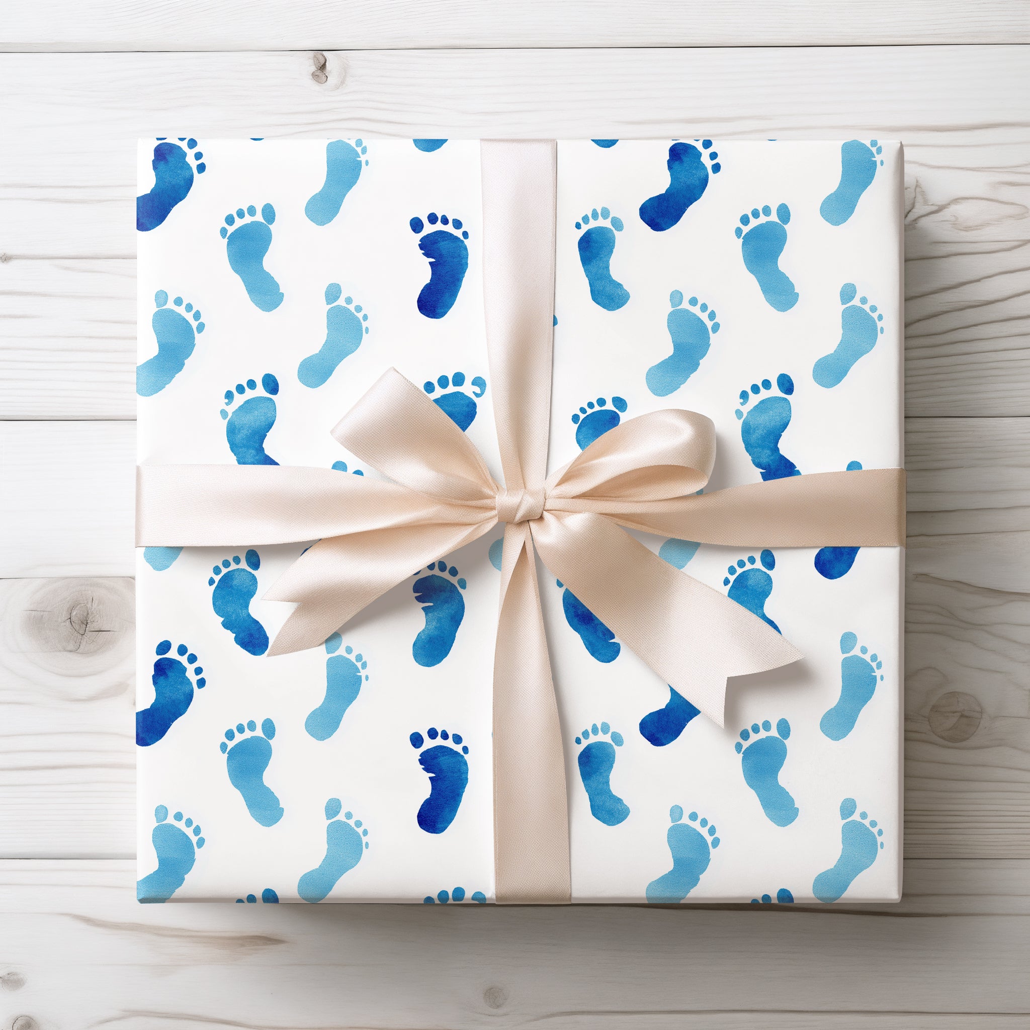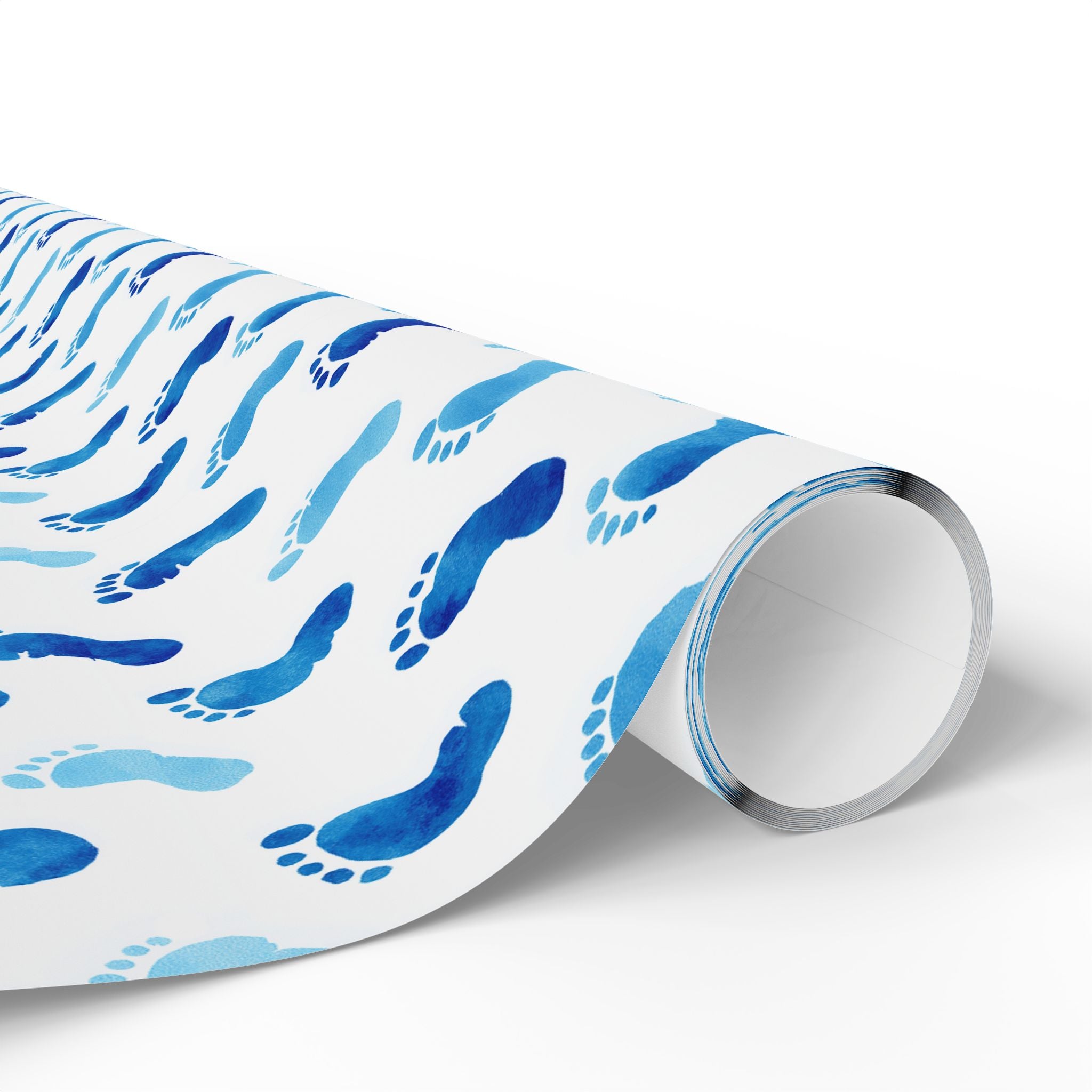 Footlingale – Watercolor Blue Baby Footprint Pattern Wrapping Paper