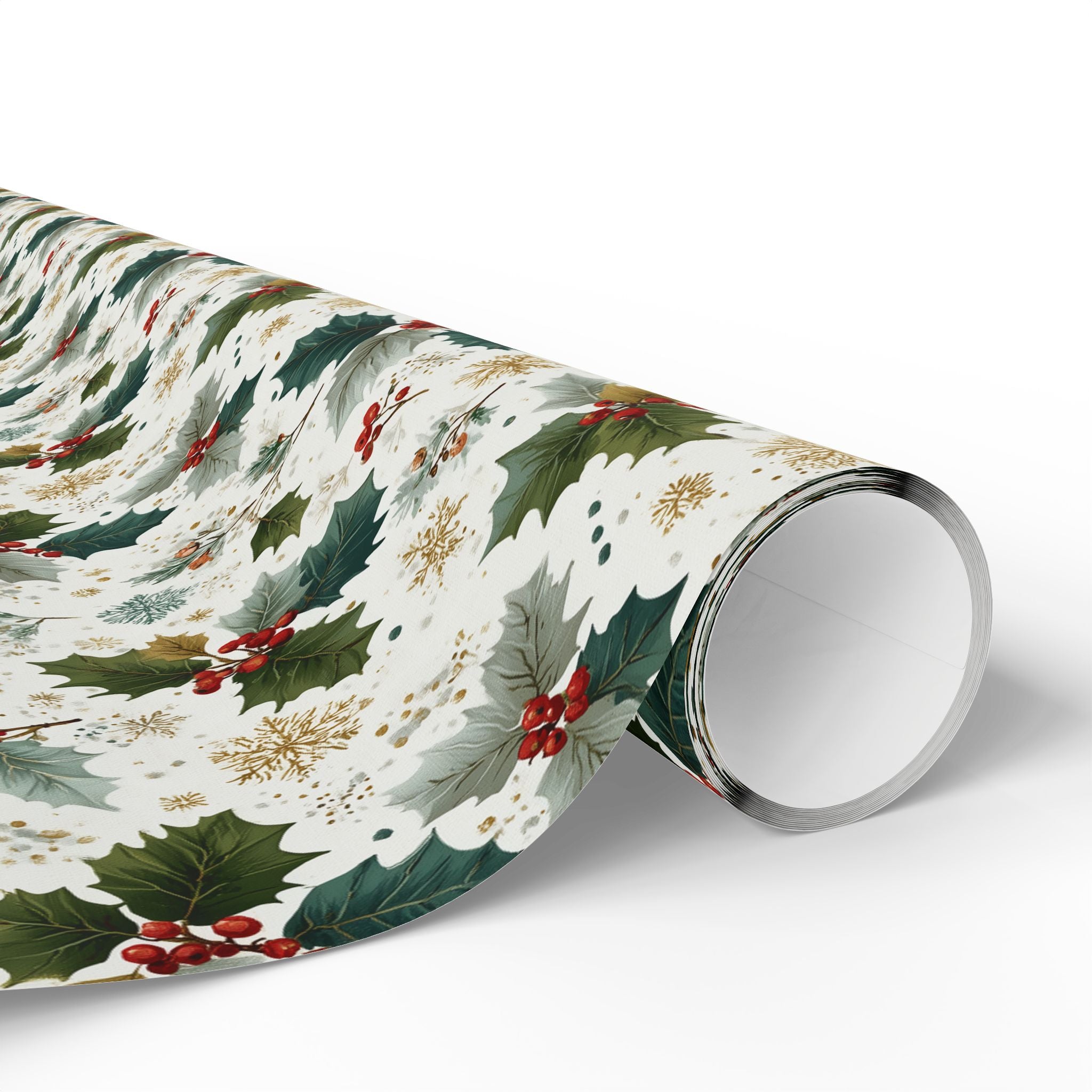 Frostbough - Vintage Holly & Snowflake Wrapping Paper
