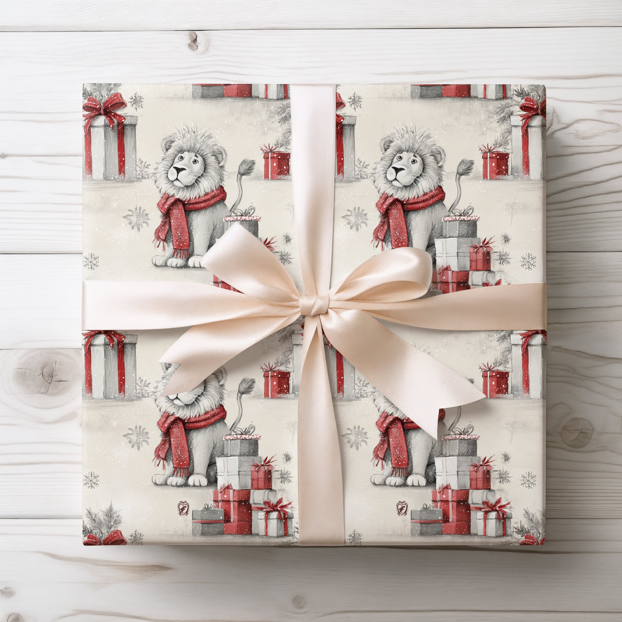 Frostmane – Lion with Red Scarf Christmas Wrapping Paper