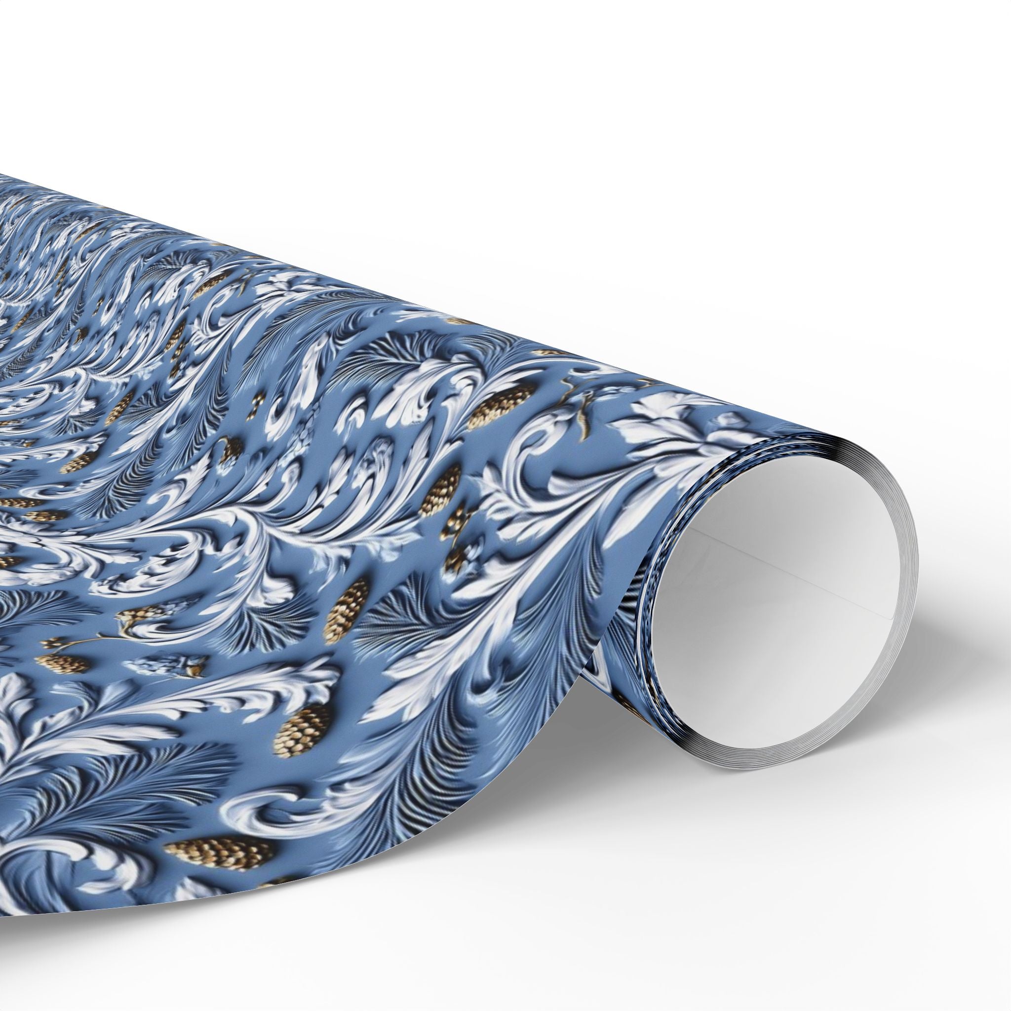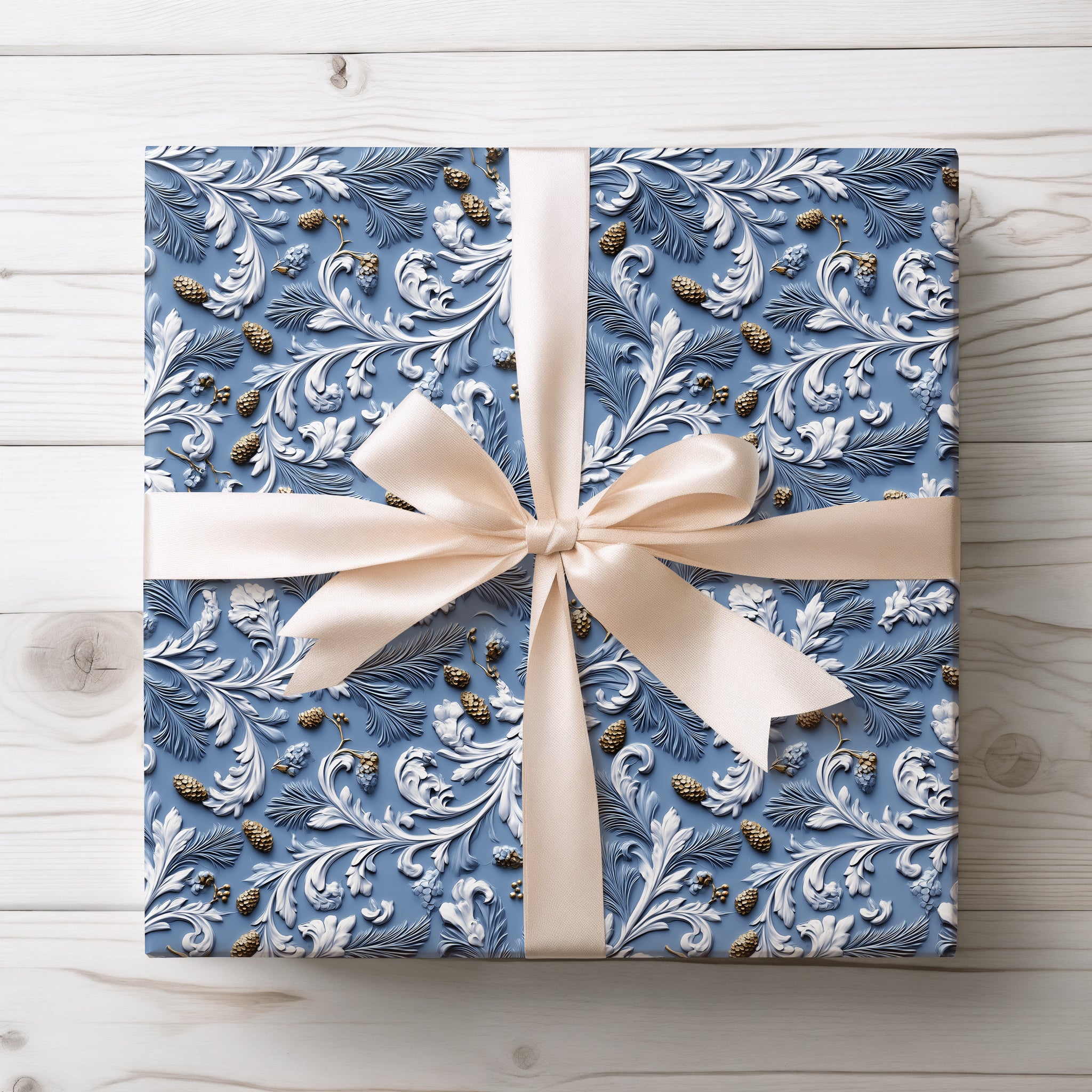 Frostpine Elegance - Luxurious Blue Embossed Pinecone Wrapping Paper