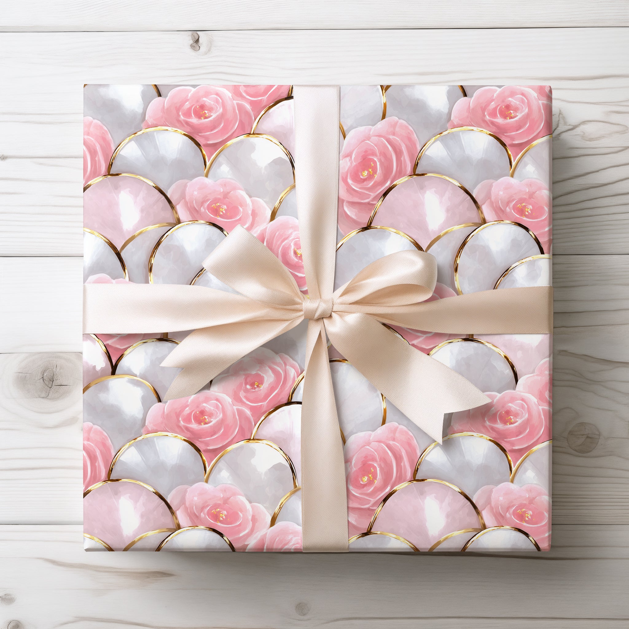 Gilded Elegance - Rose Gold and Pearl Scales Wrapping Paper