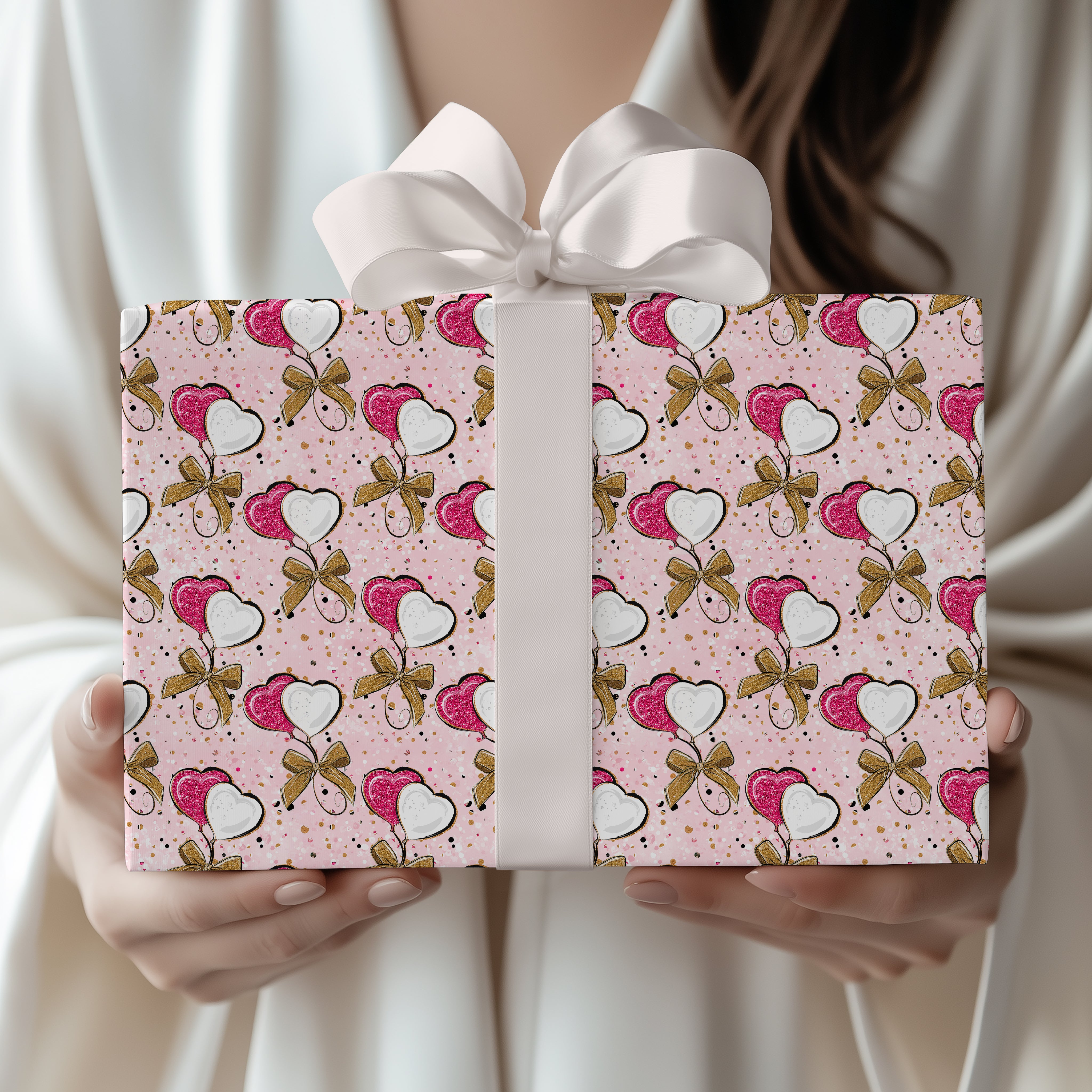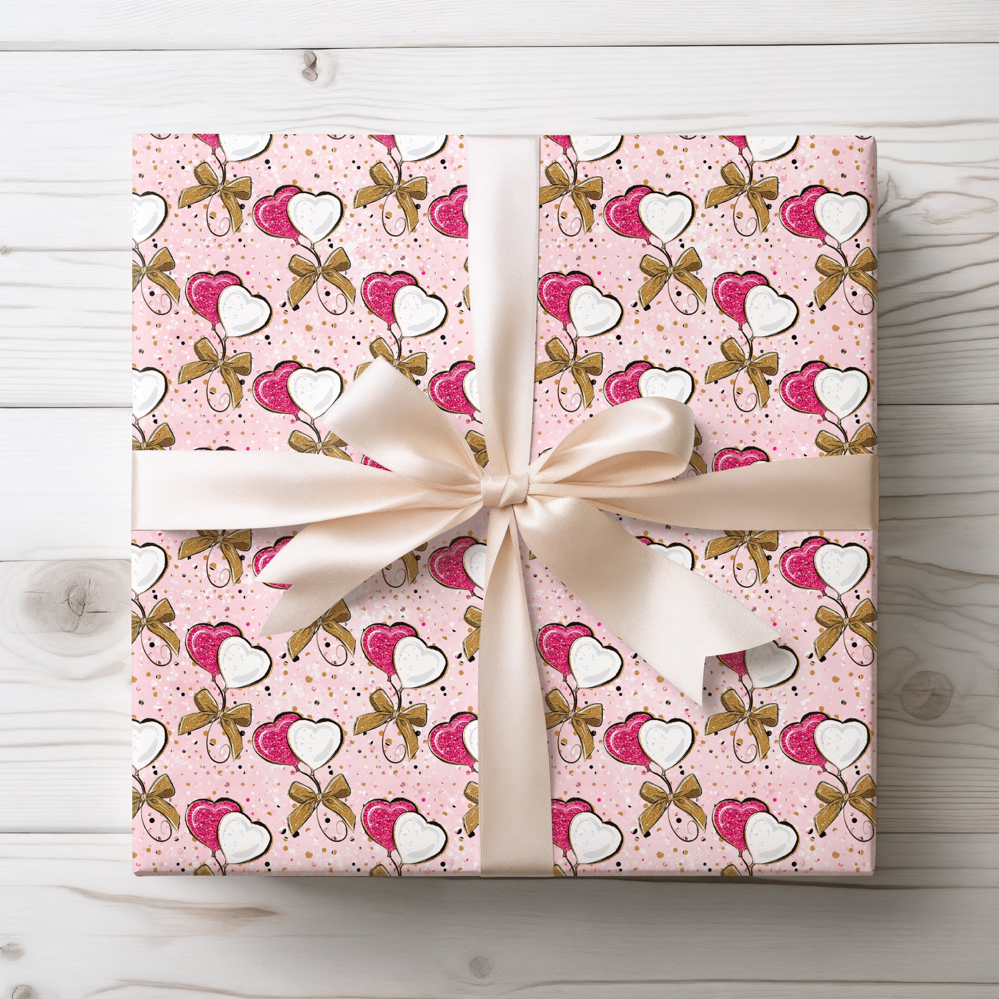 Gilded Hearts Duo – Glitter Heart Balloons wrapping paper