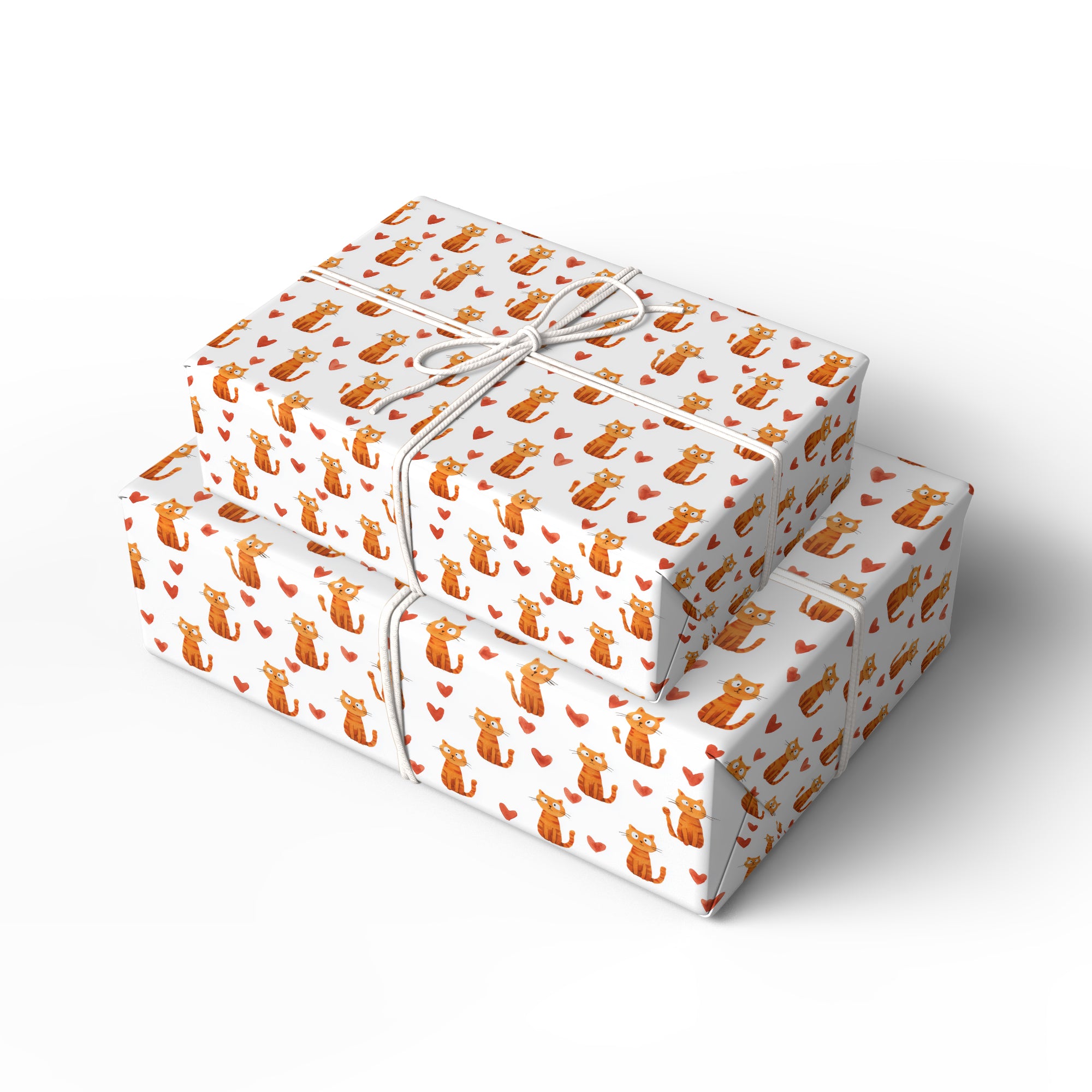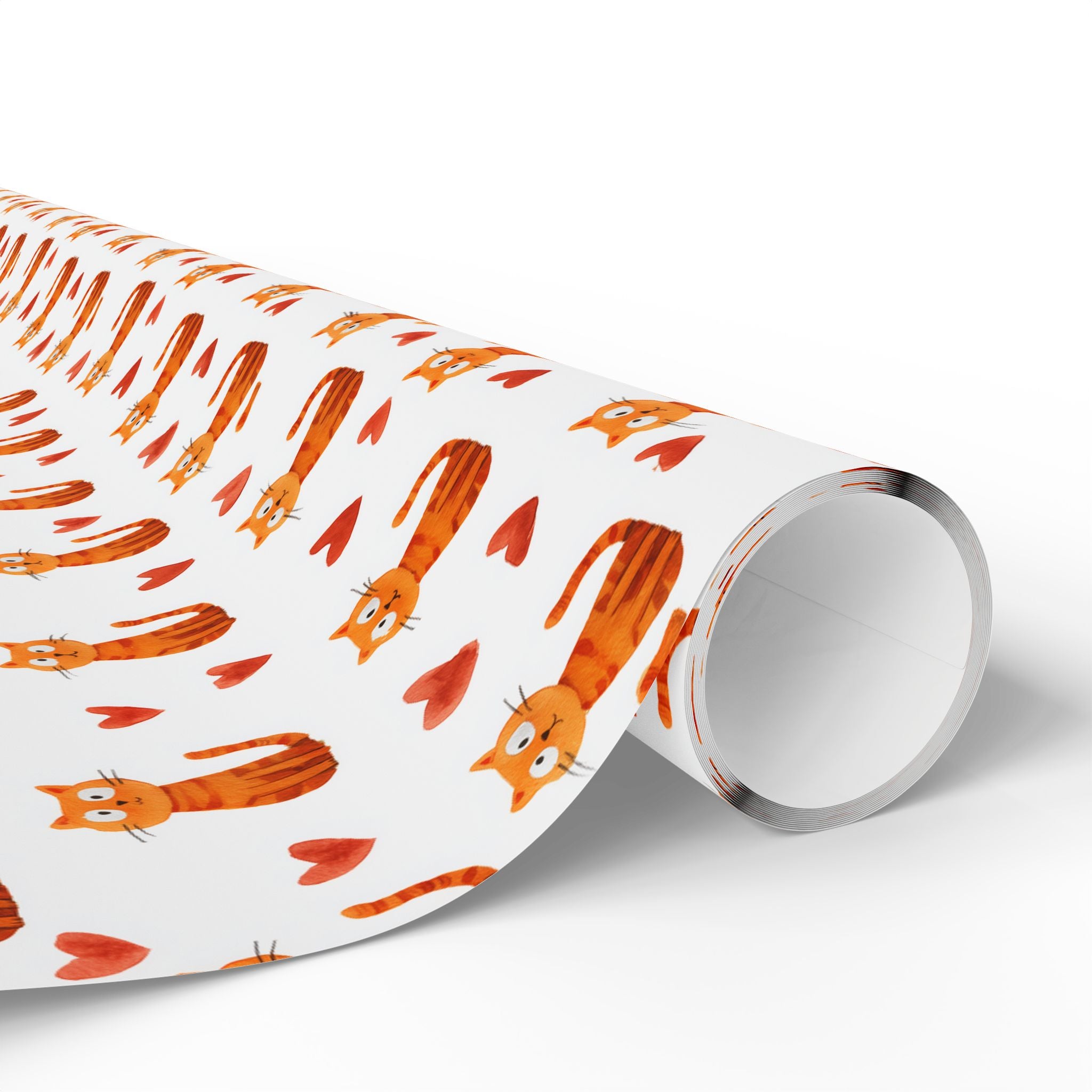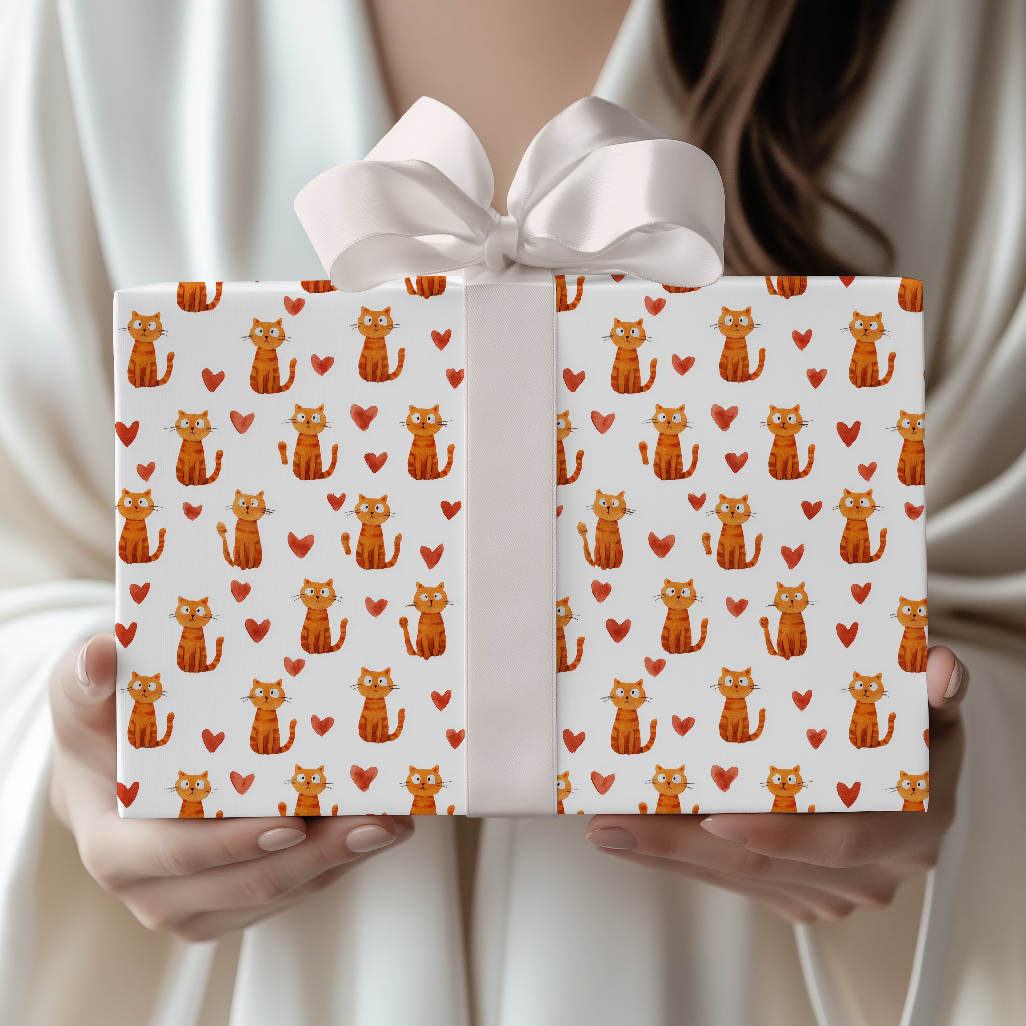 Gingerjoy Hearts – Cute Watercolor Orange Cat with Heart Wrapping paper