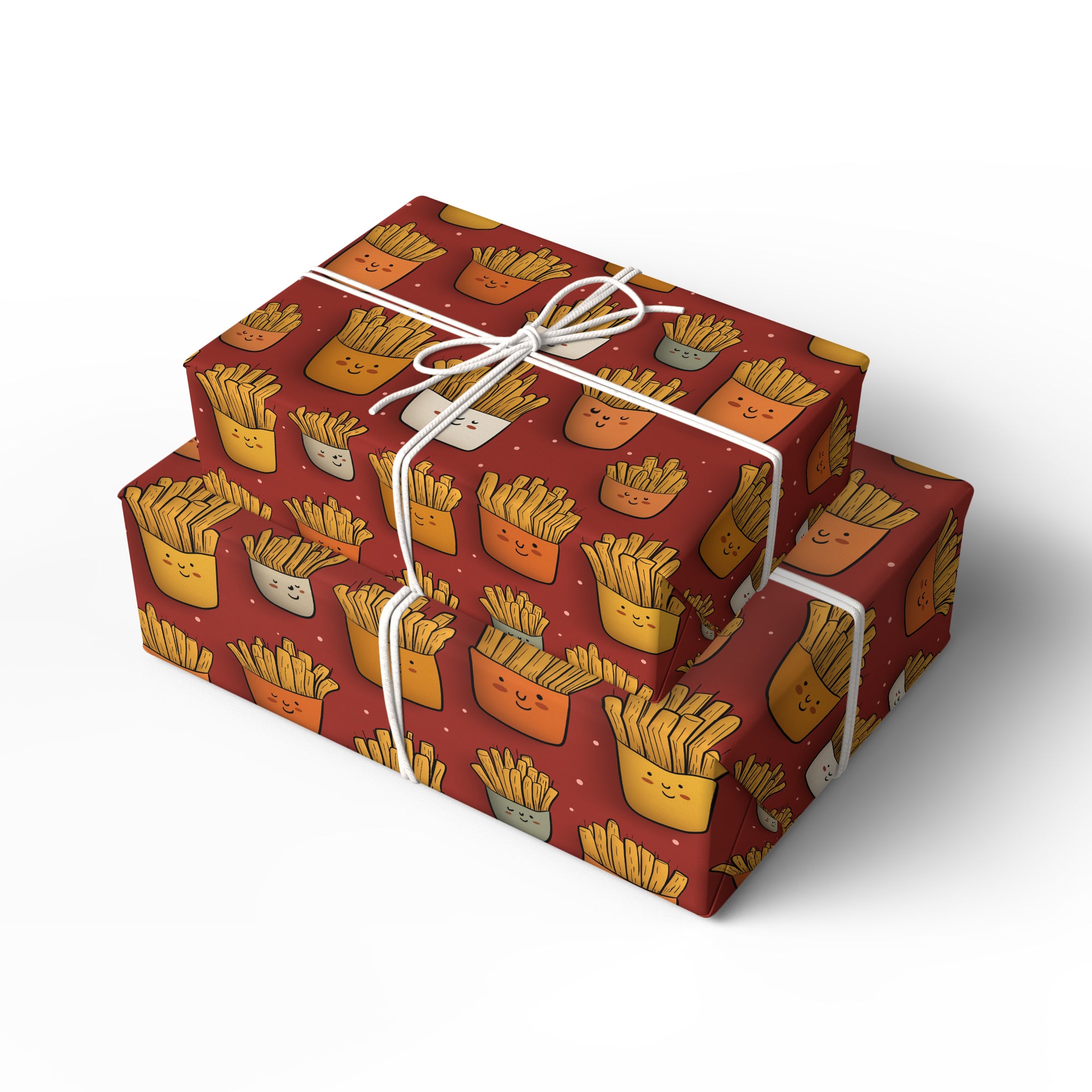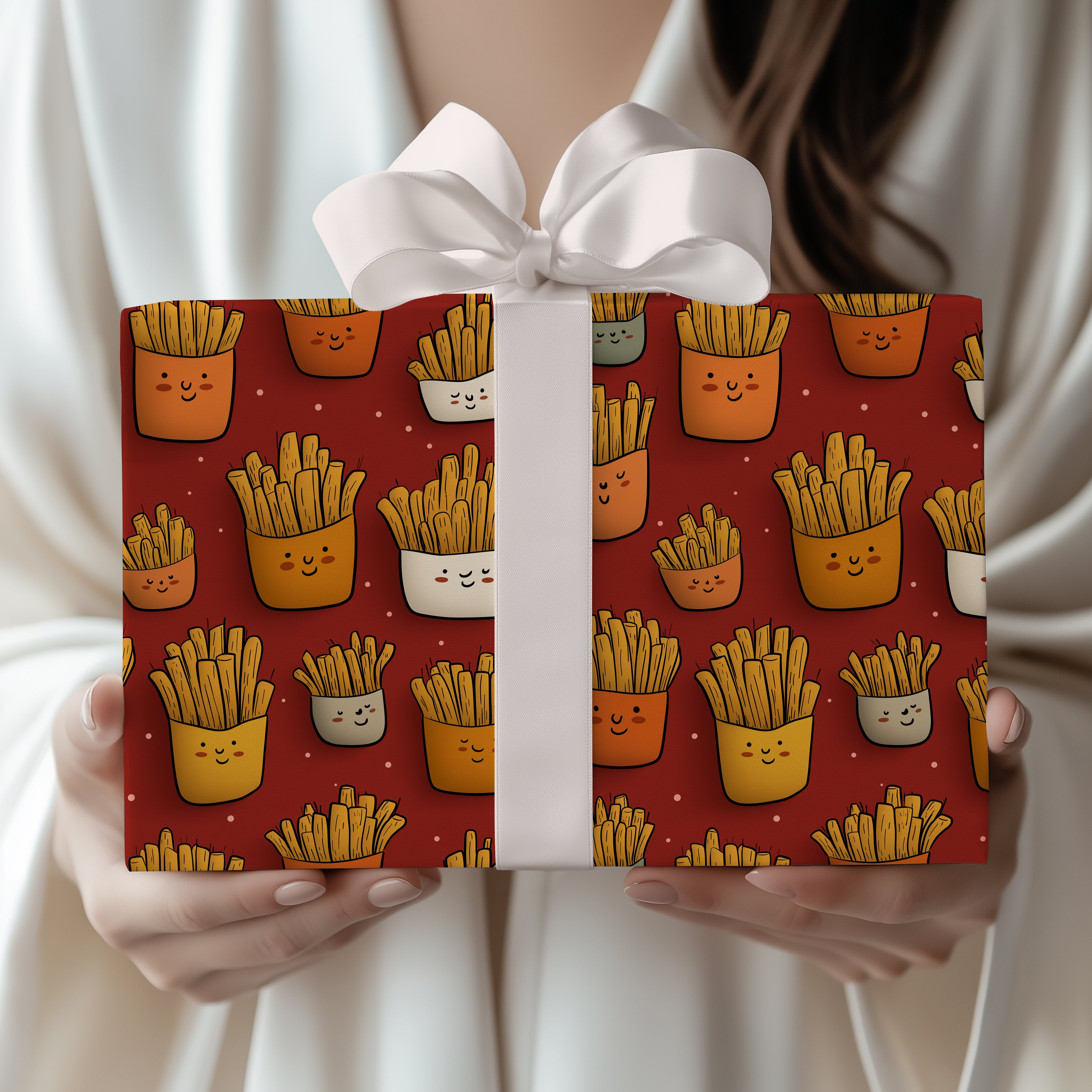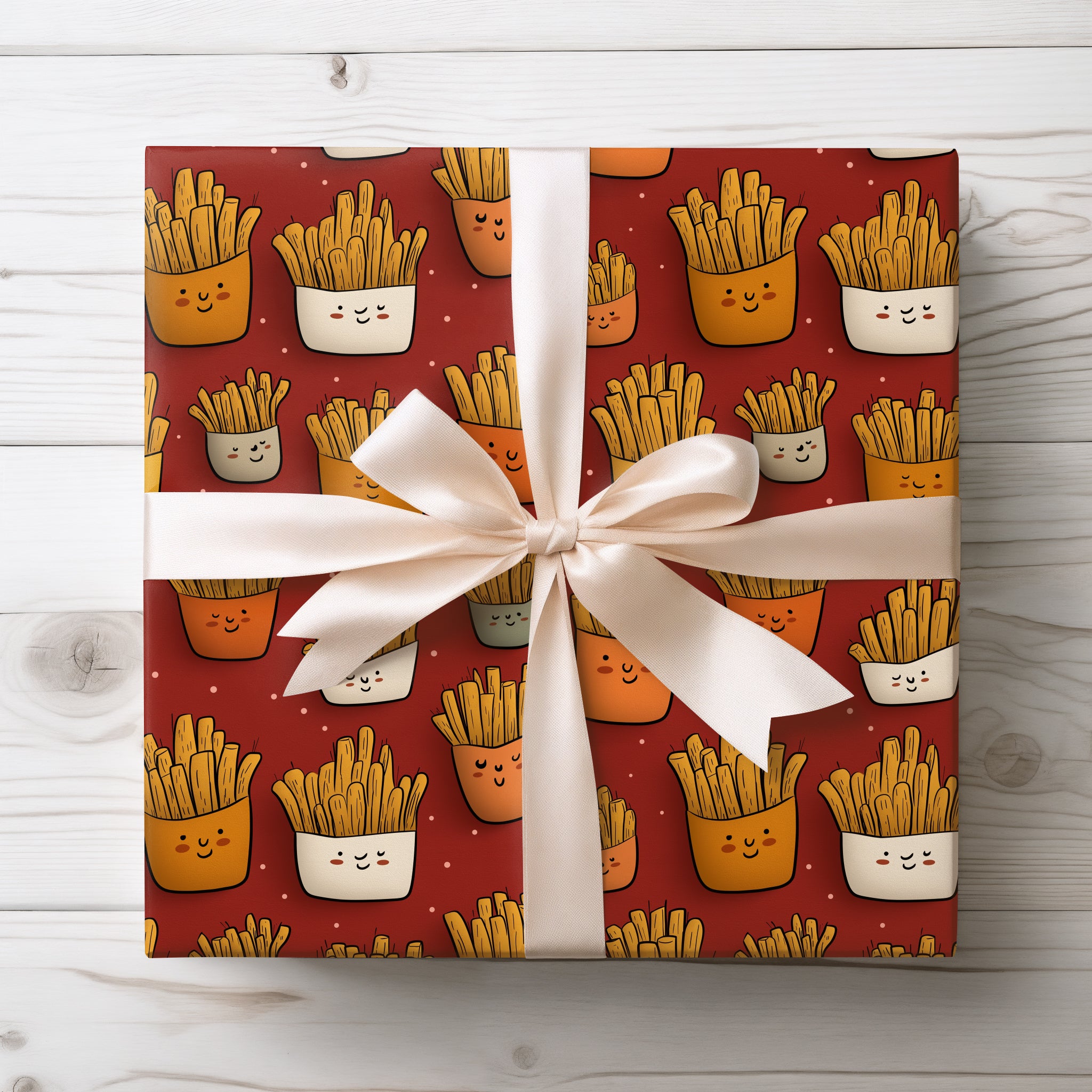 Golden Crunch Cuties - Happy Fries Pattern Wrapping Paper