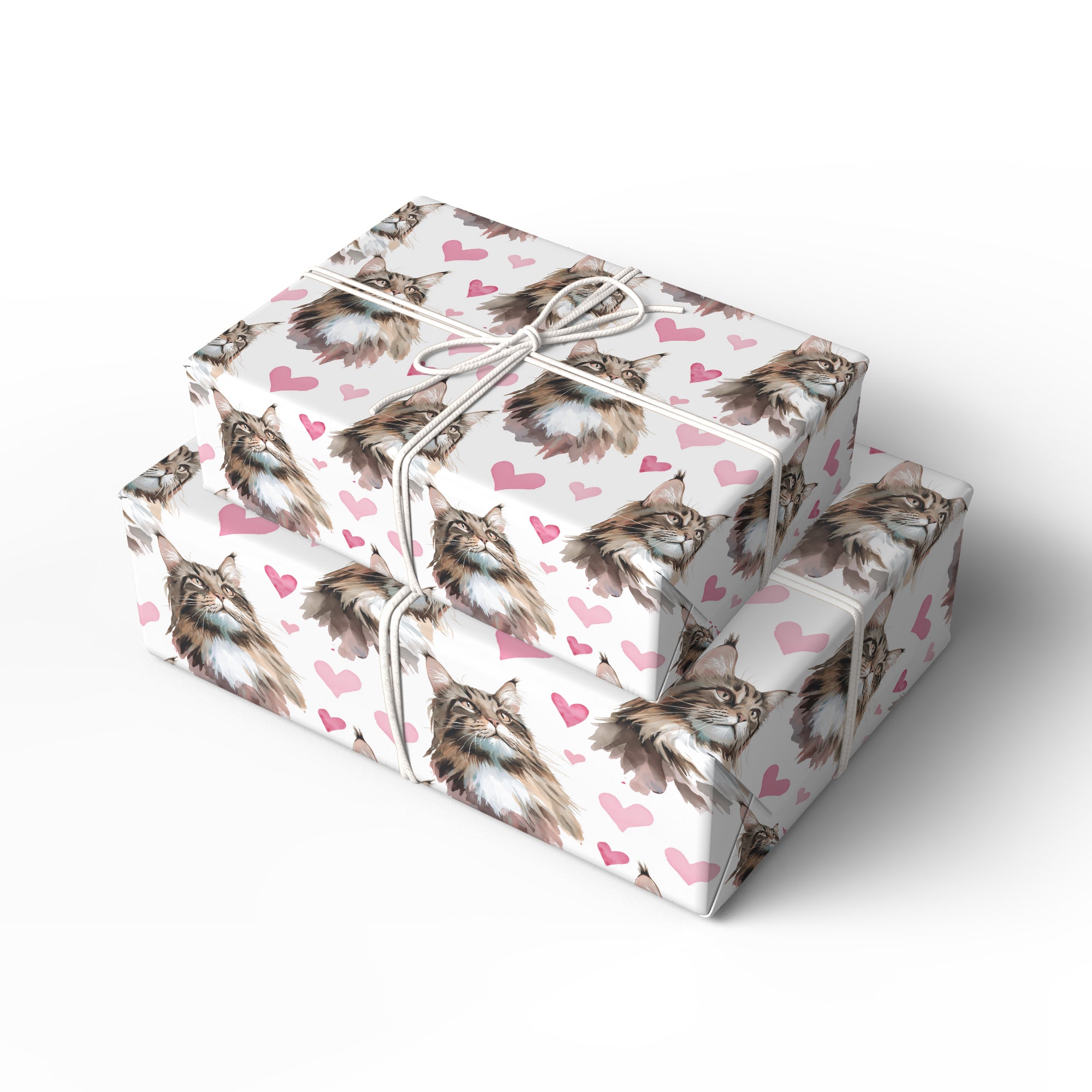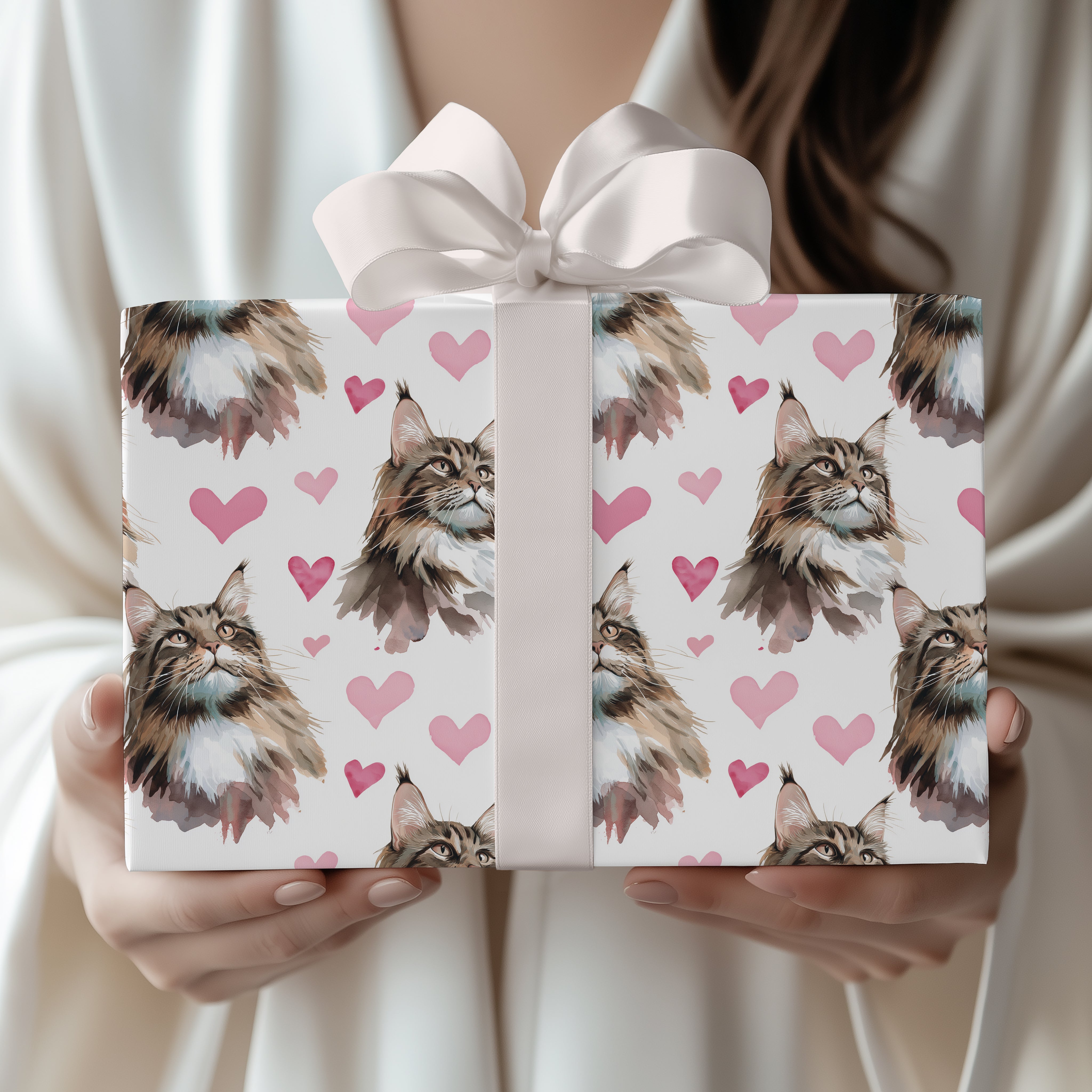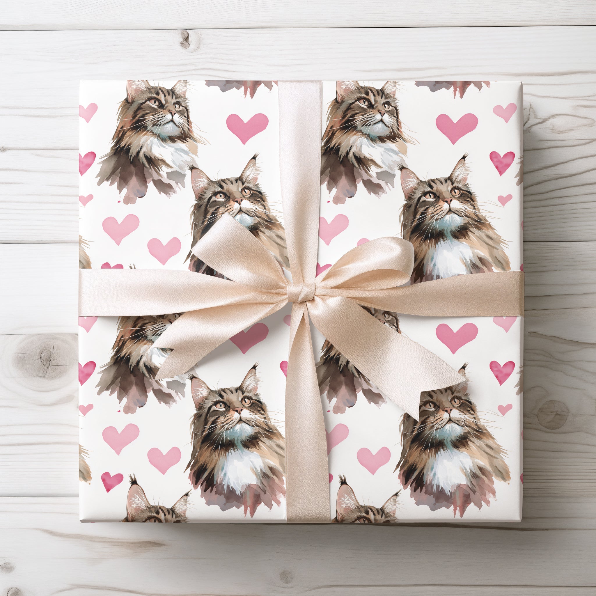 Heartgaze Royals – maine coon cat heart wrapping paper
