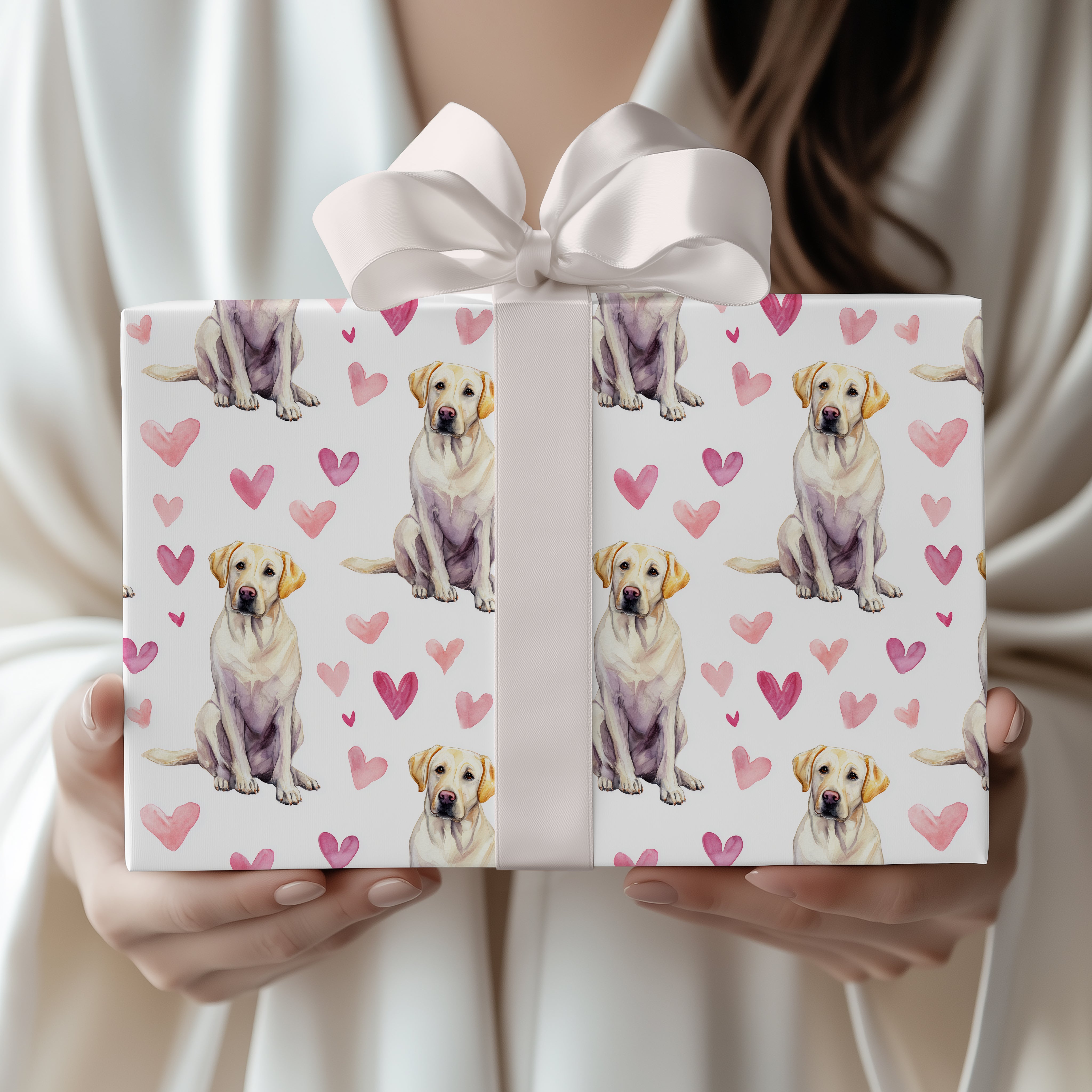 Heartpup Goldens – Watercolor Labrador Retriever with Hearts Seamless wrapping paper