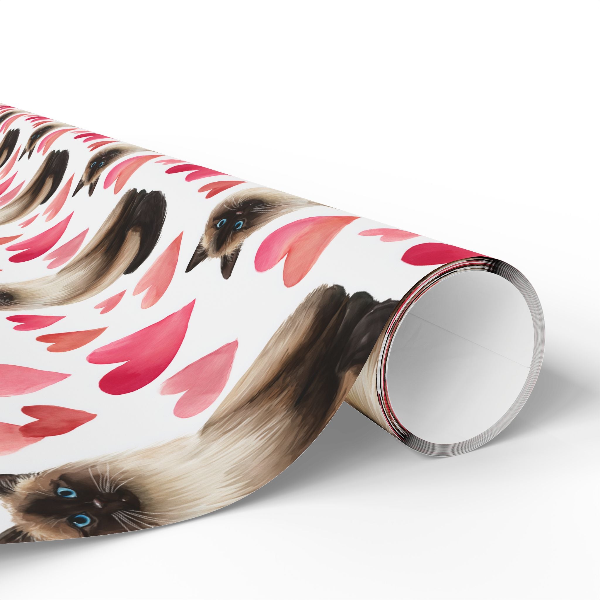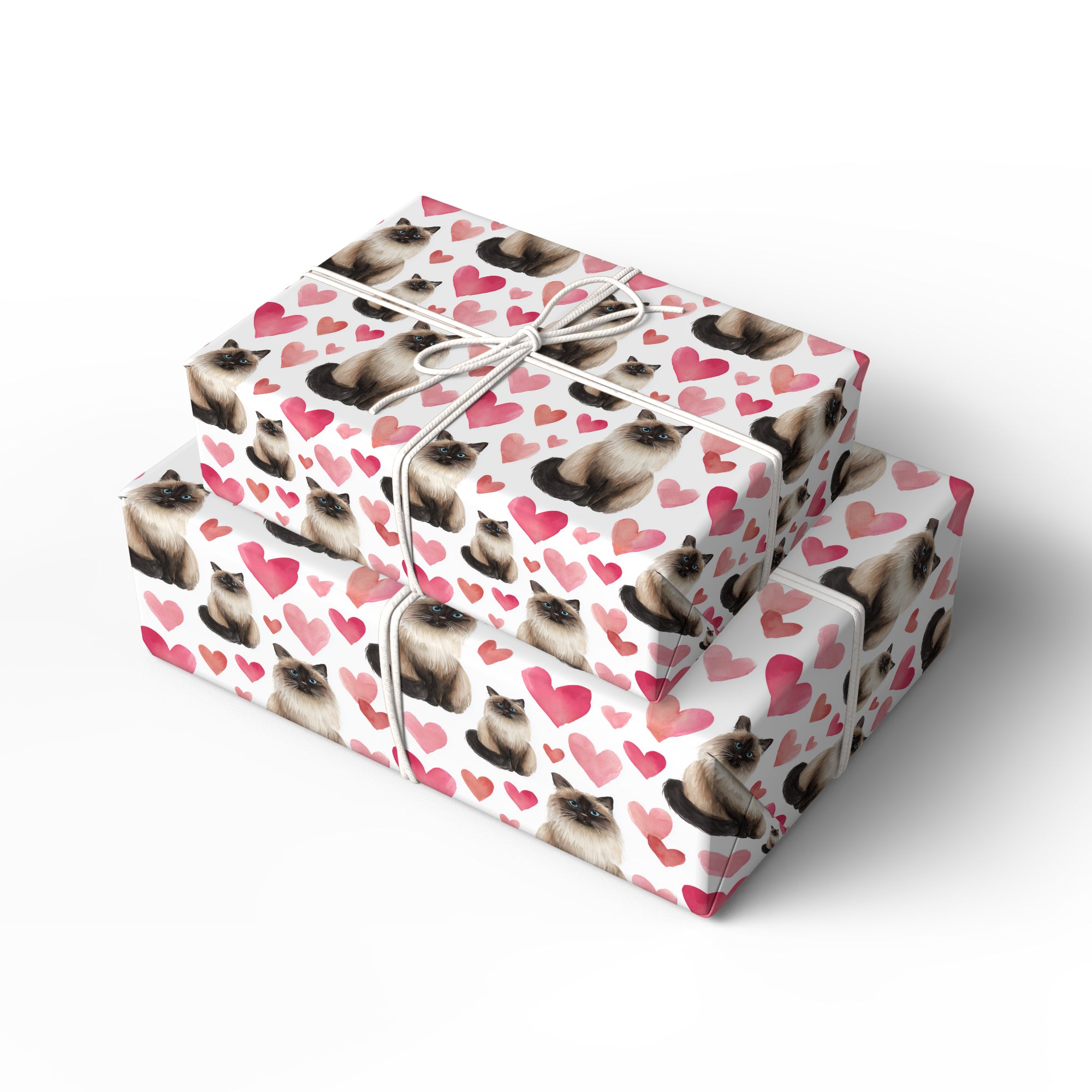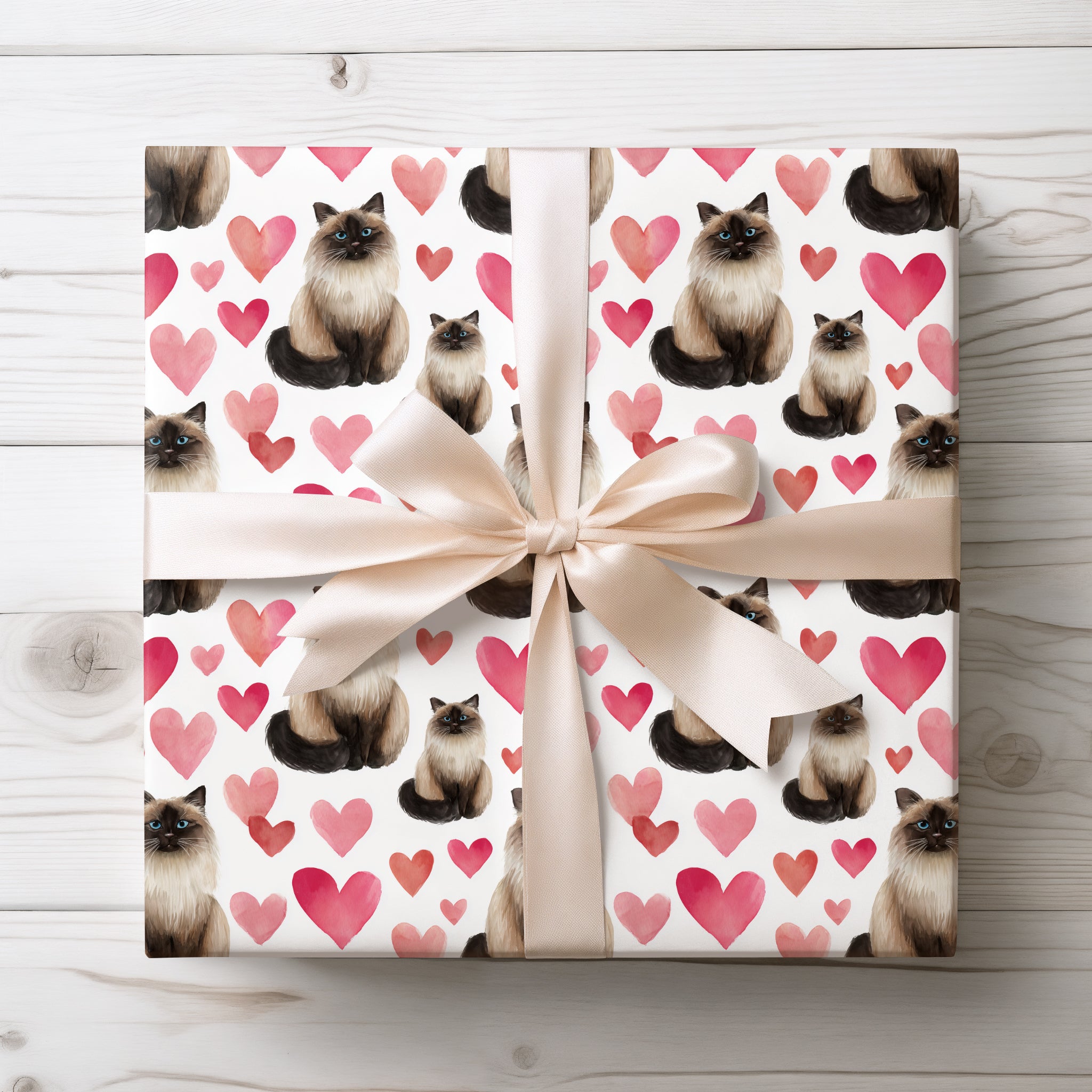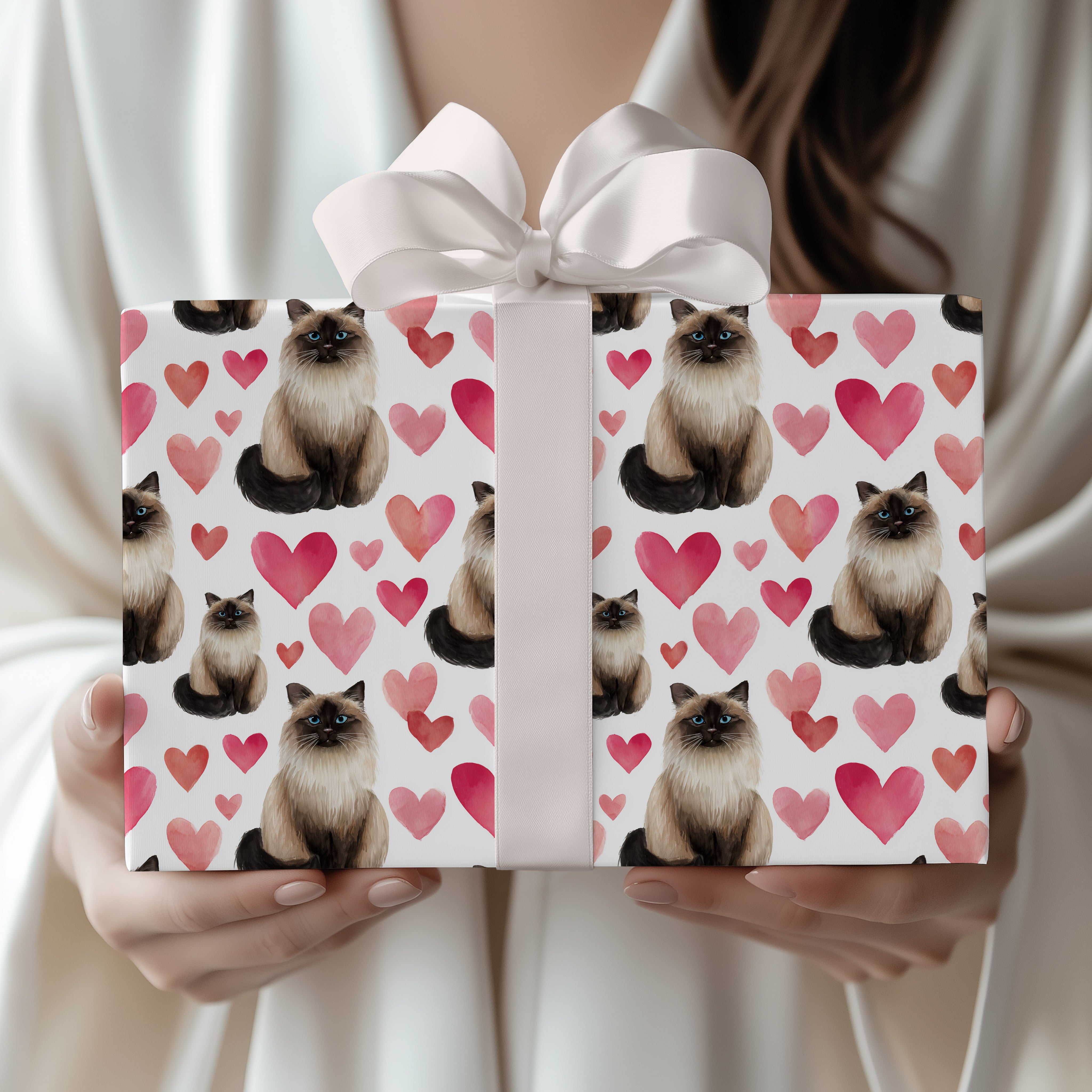 Heartveil Birman – Watercolor Birman Cat with Pink Hearts wrapping paper