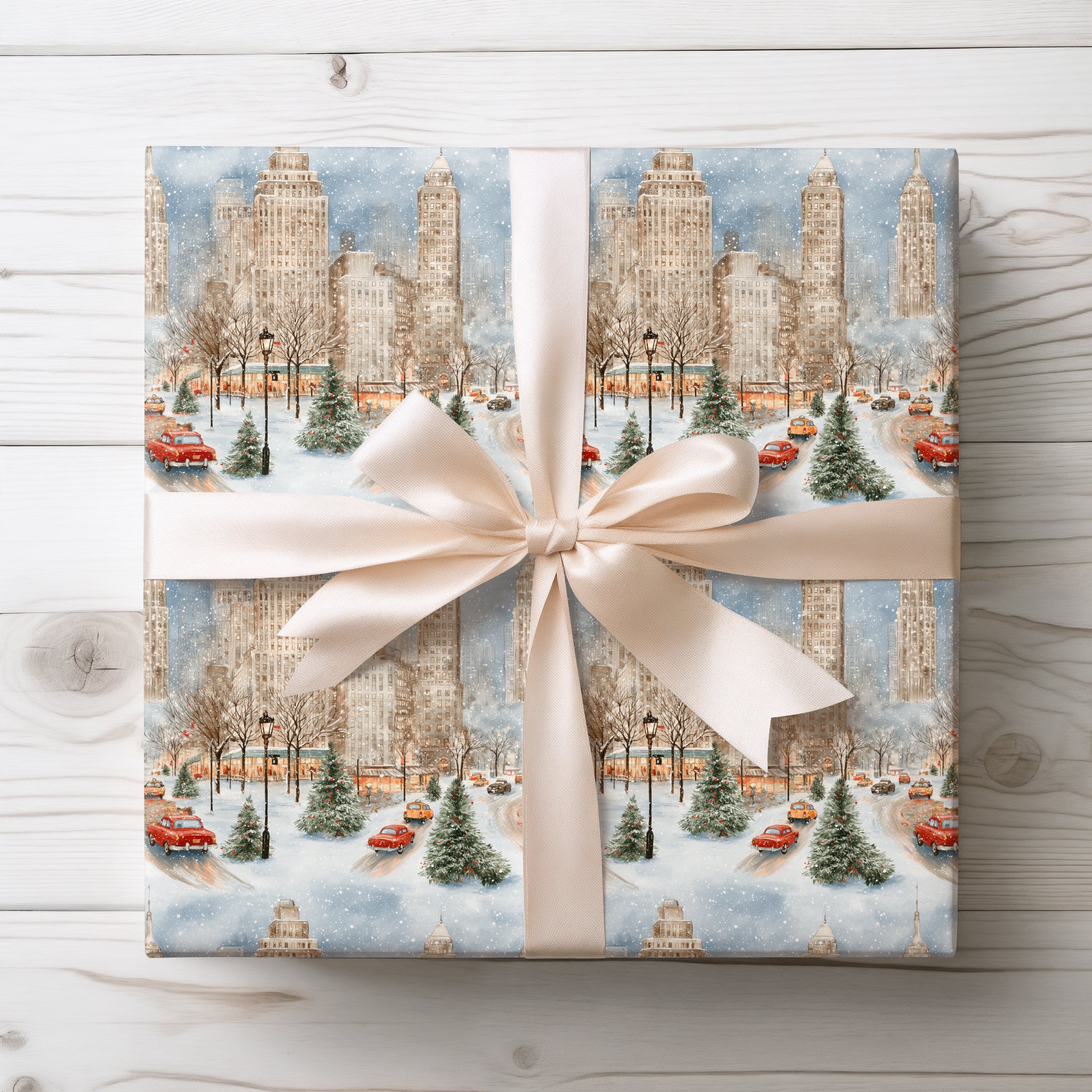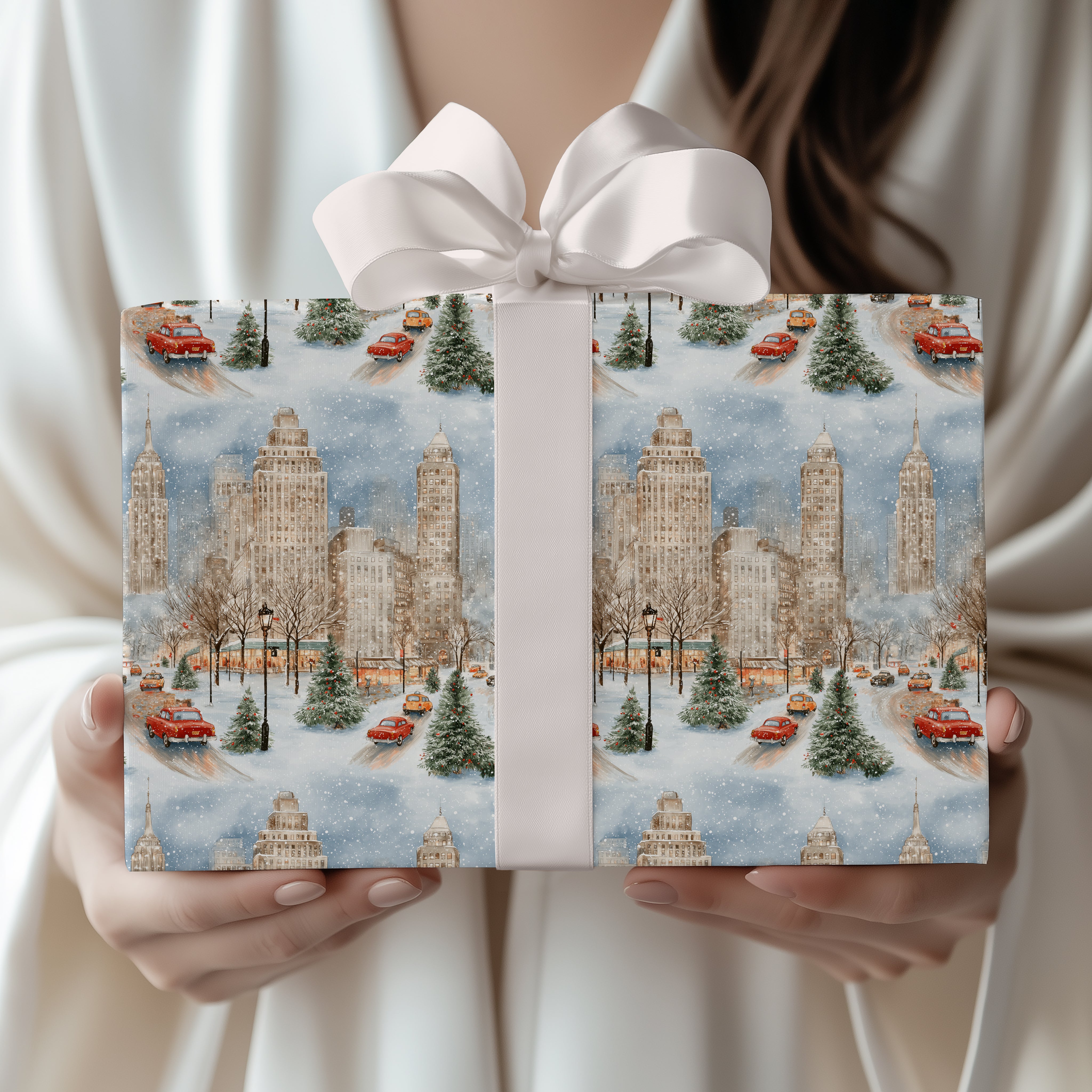 Holiday Avenue – Vintage NYC Snow Road Wrapping Paper