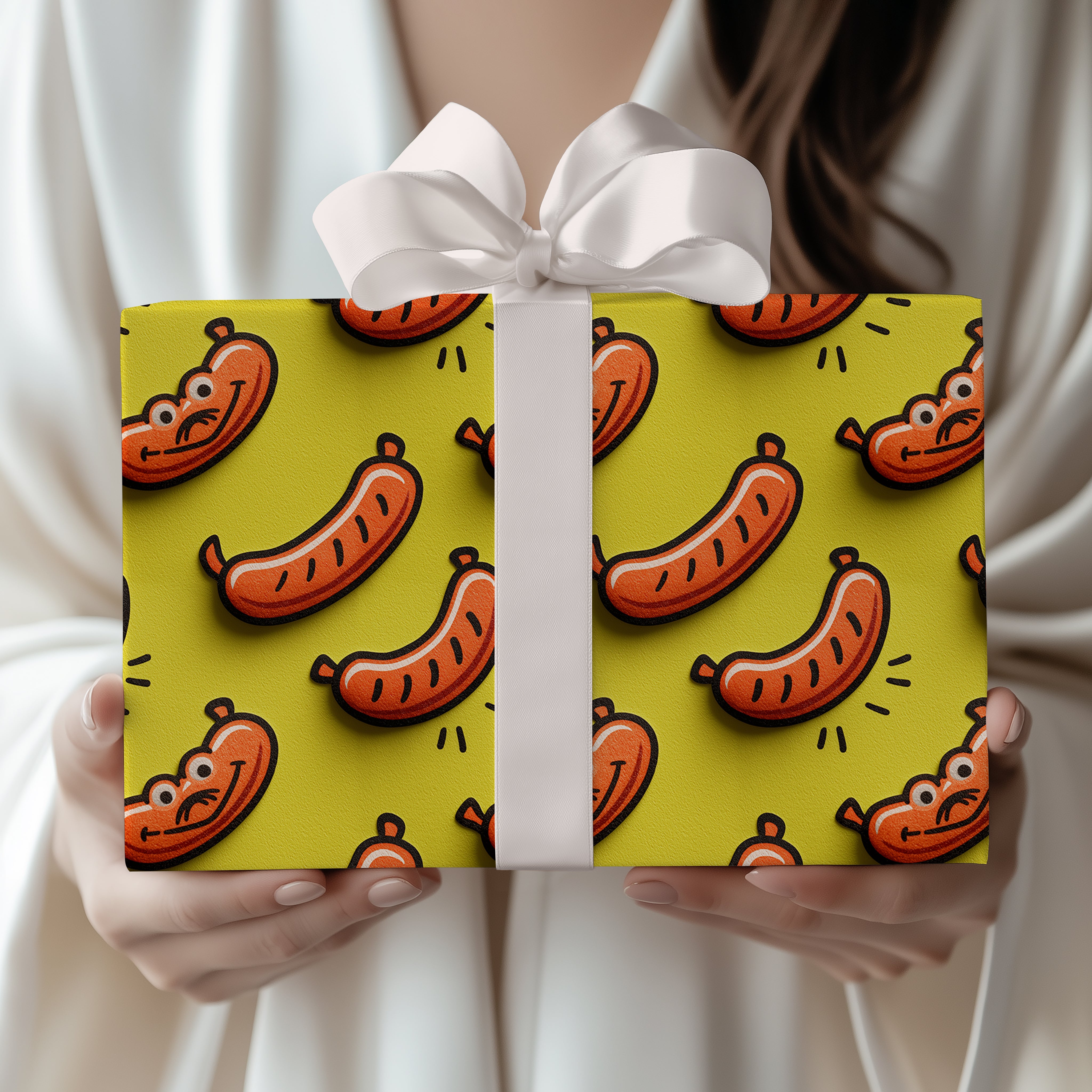 Jolly Grins - Playful Sausage Pattern Wrapping Paper