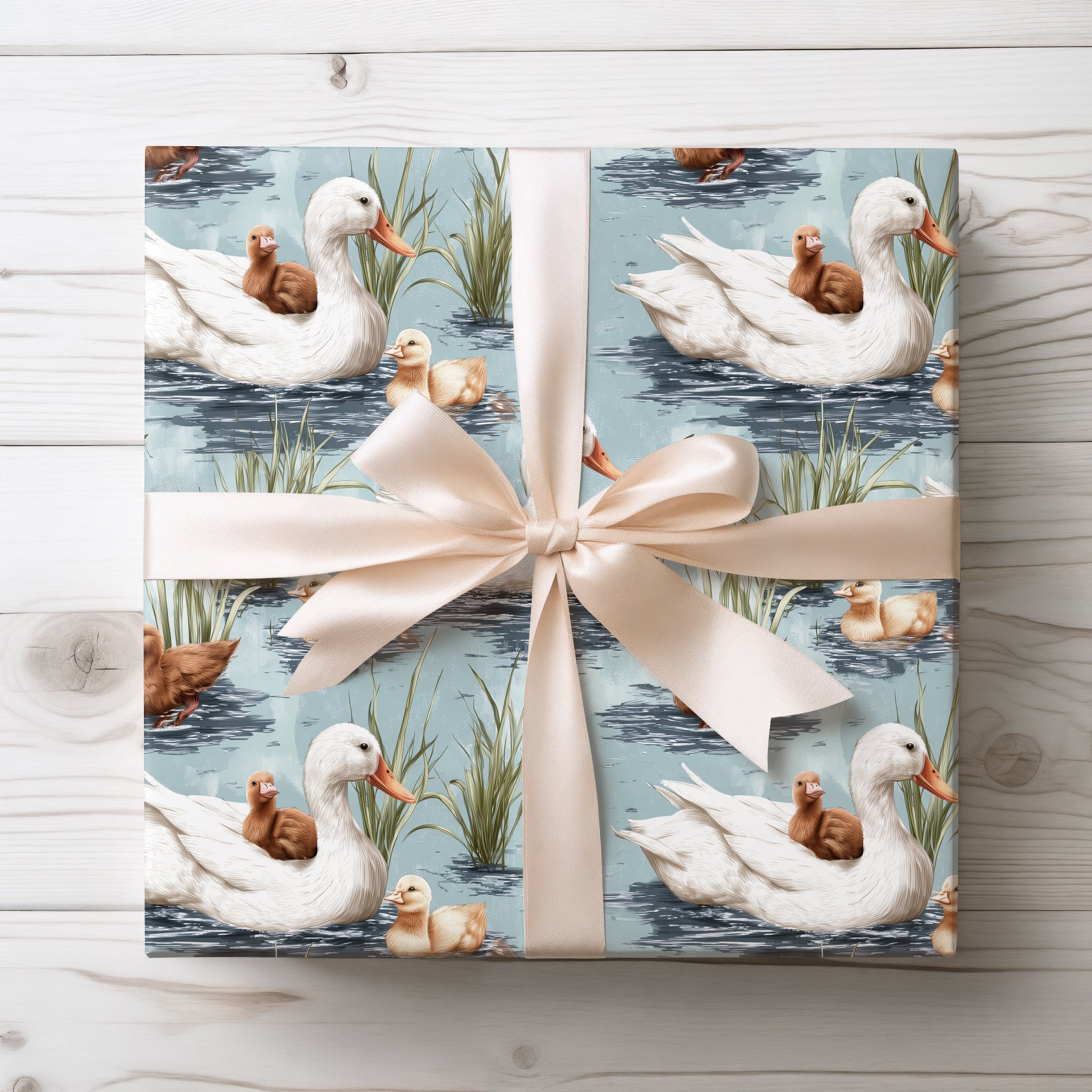 Lakeside Quacksong – White Duck Family Wrapping Paper
