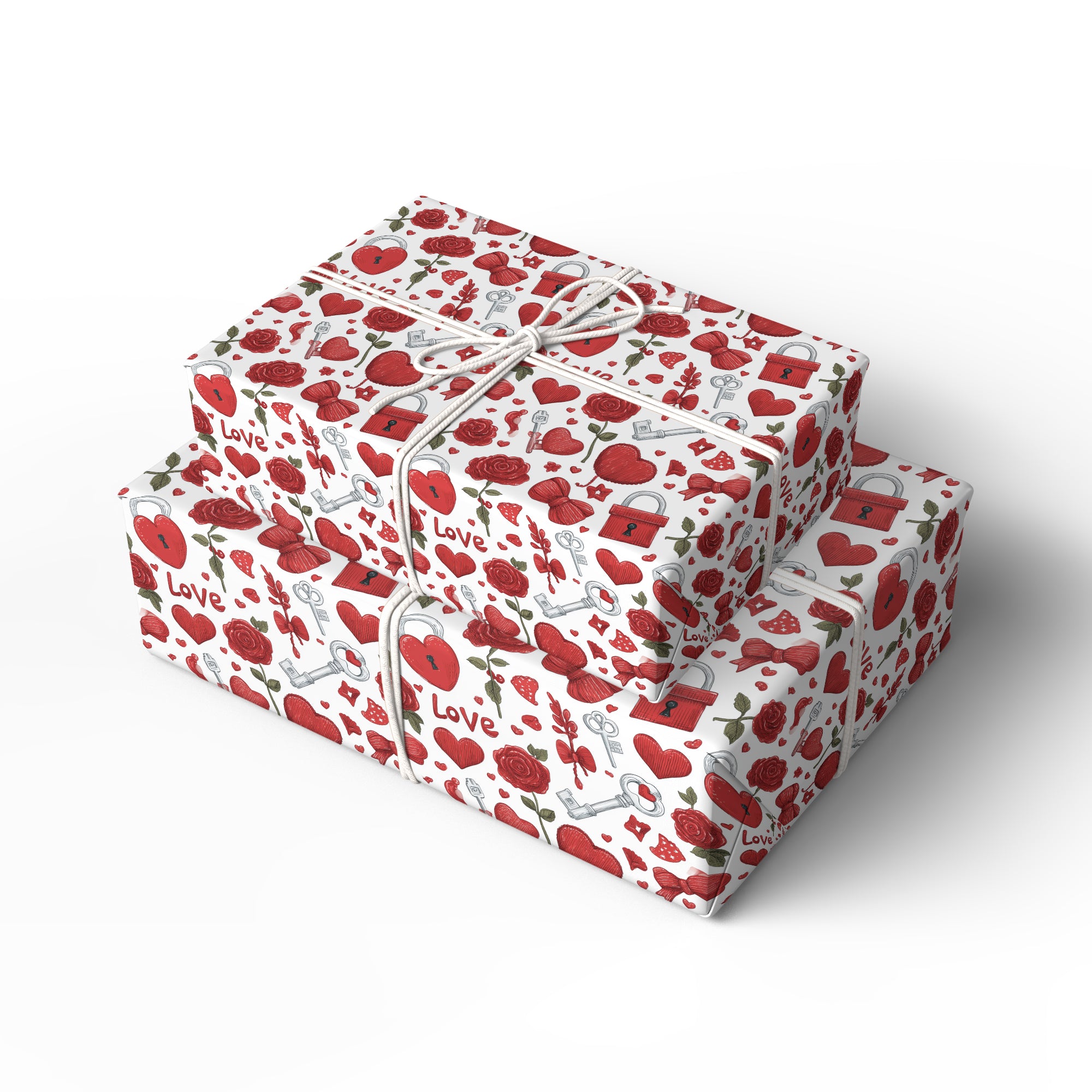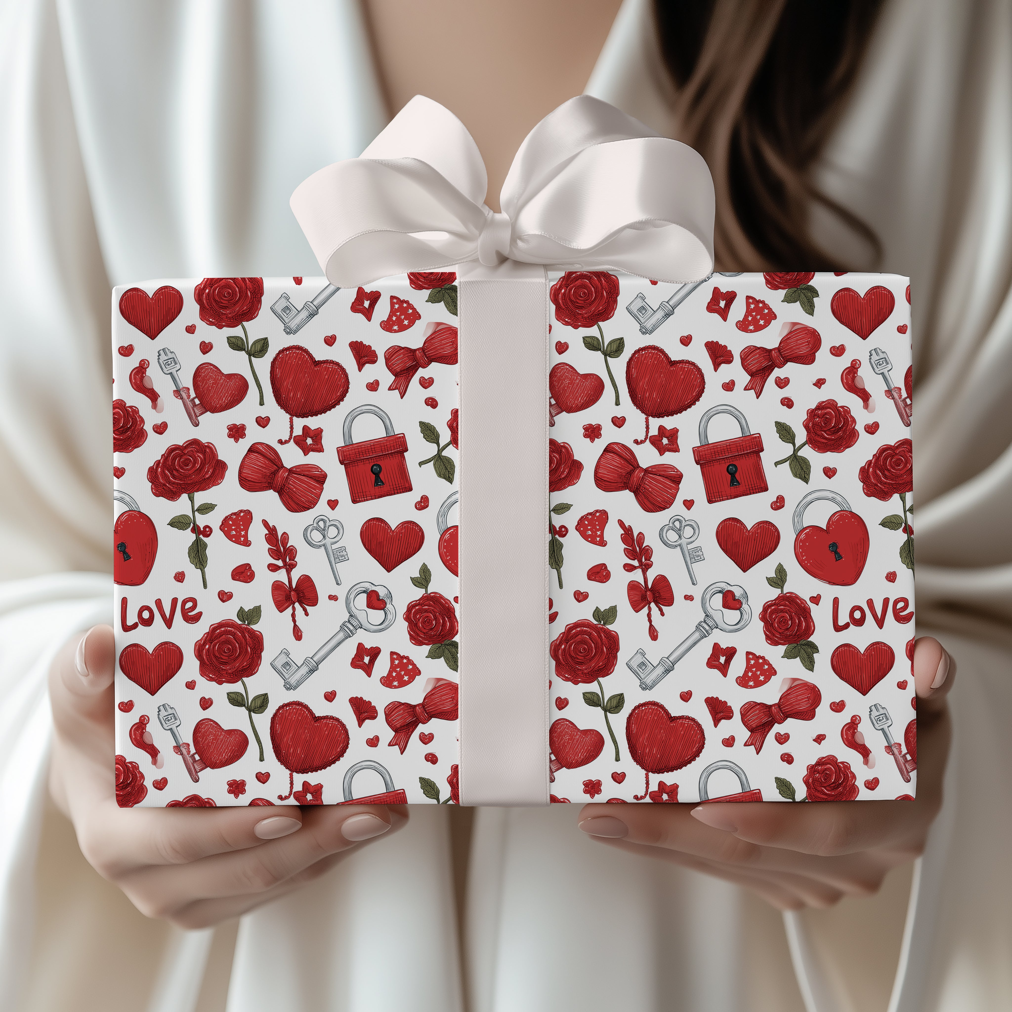 Love Vault – Red Roses, Heart Locks, Keys and Love Icons Valentine Pattern wrapping paper