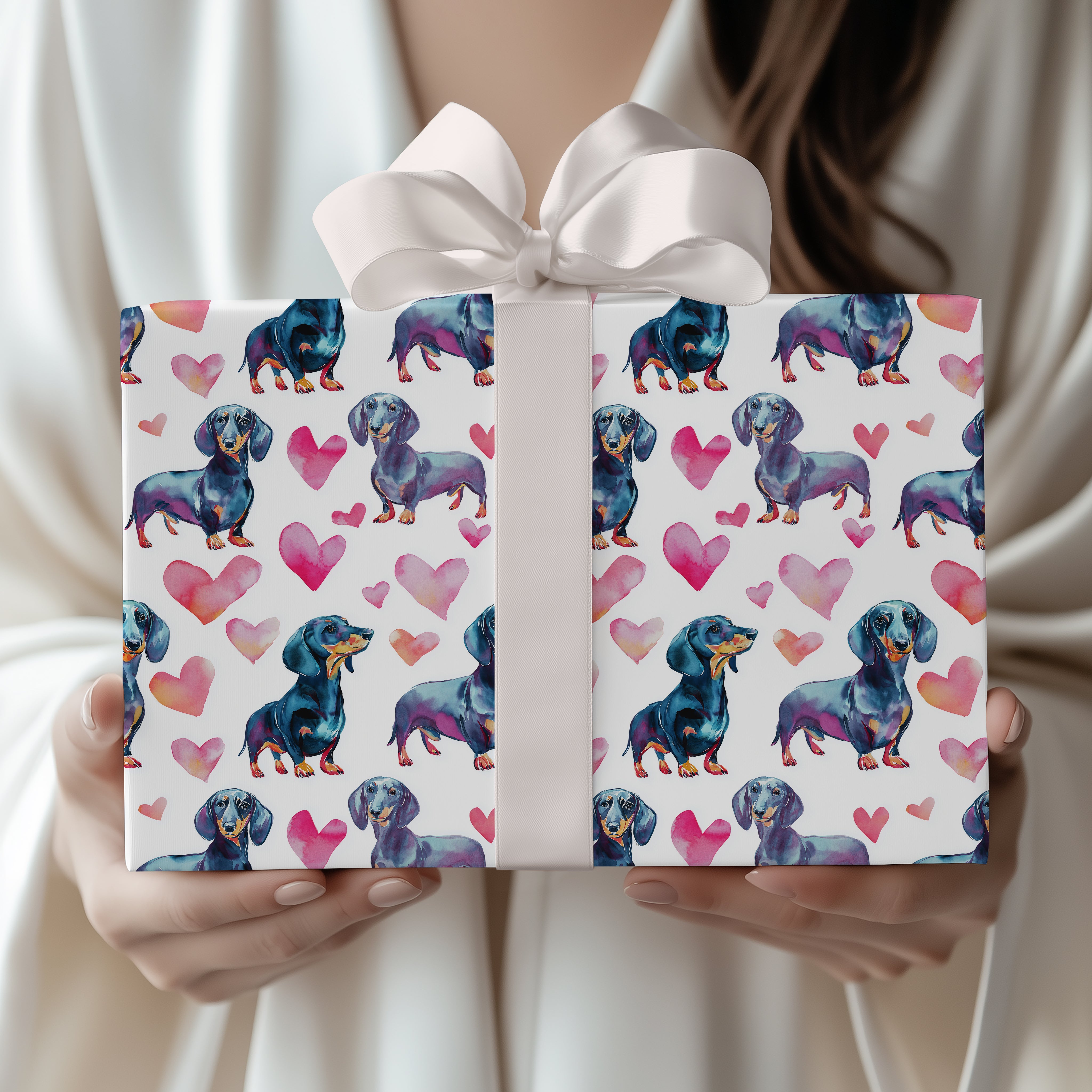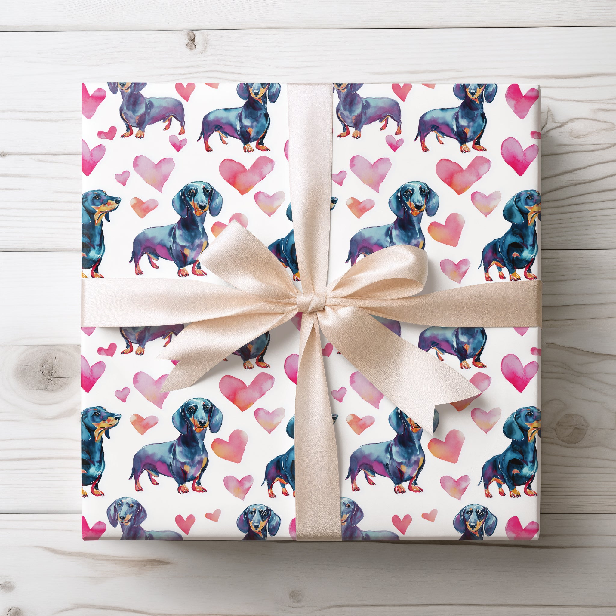 Loverlong Hound – Watercolor Dachshunds and Hearts wrapping paper