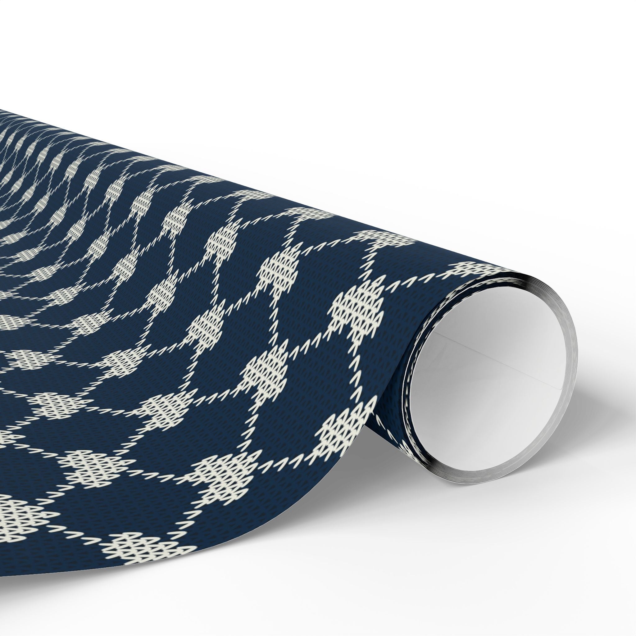 Midnight Embrace – Knitted Heart Pattern Wrapping Paper (Navy & White)