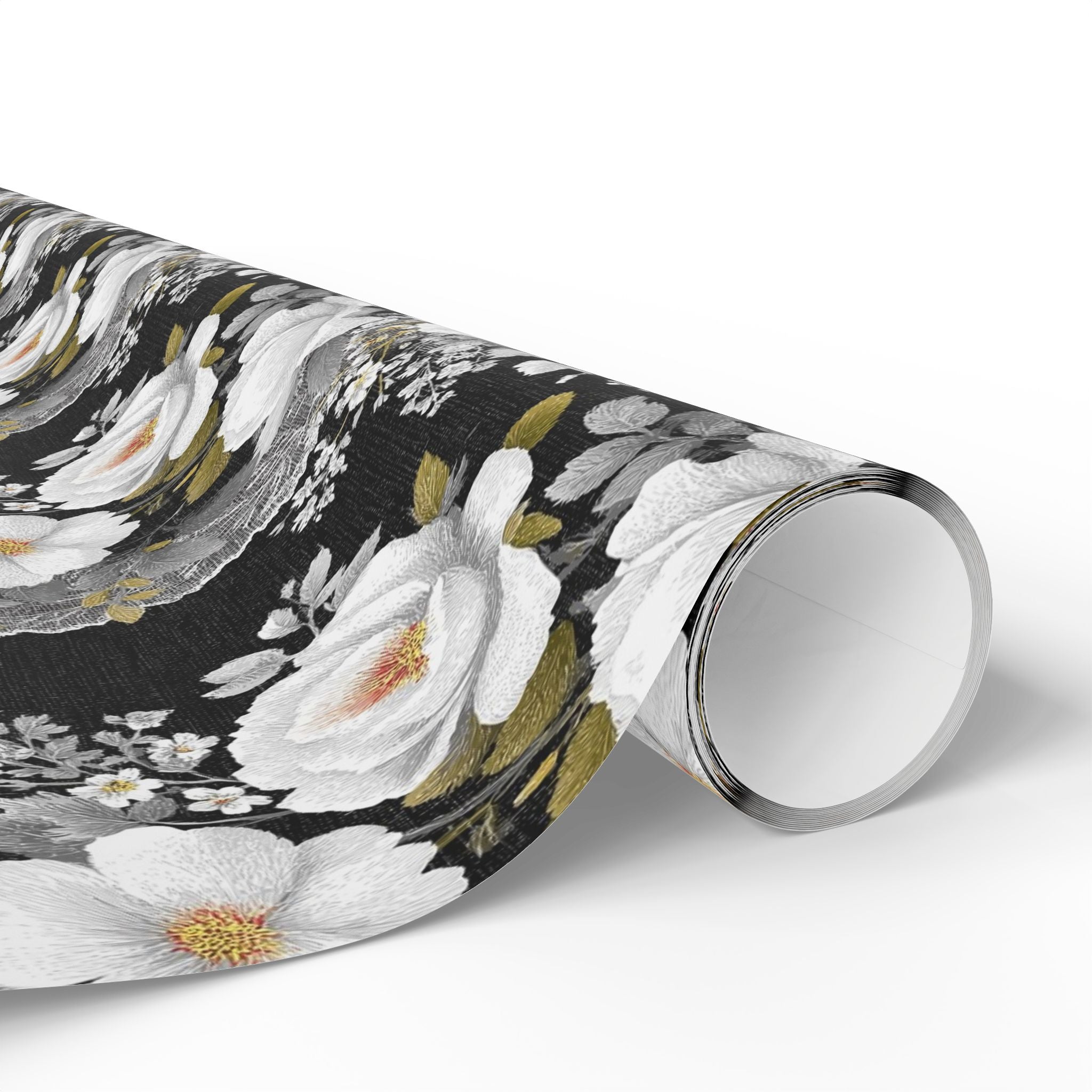 Midnight Lace - Intricate white blooms on a dramatic black background Gift Wrap