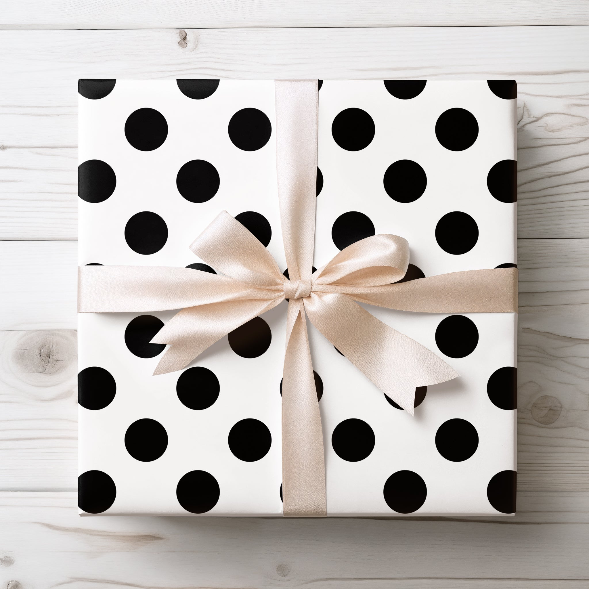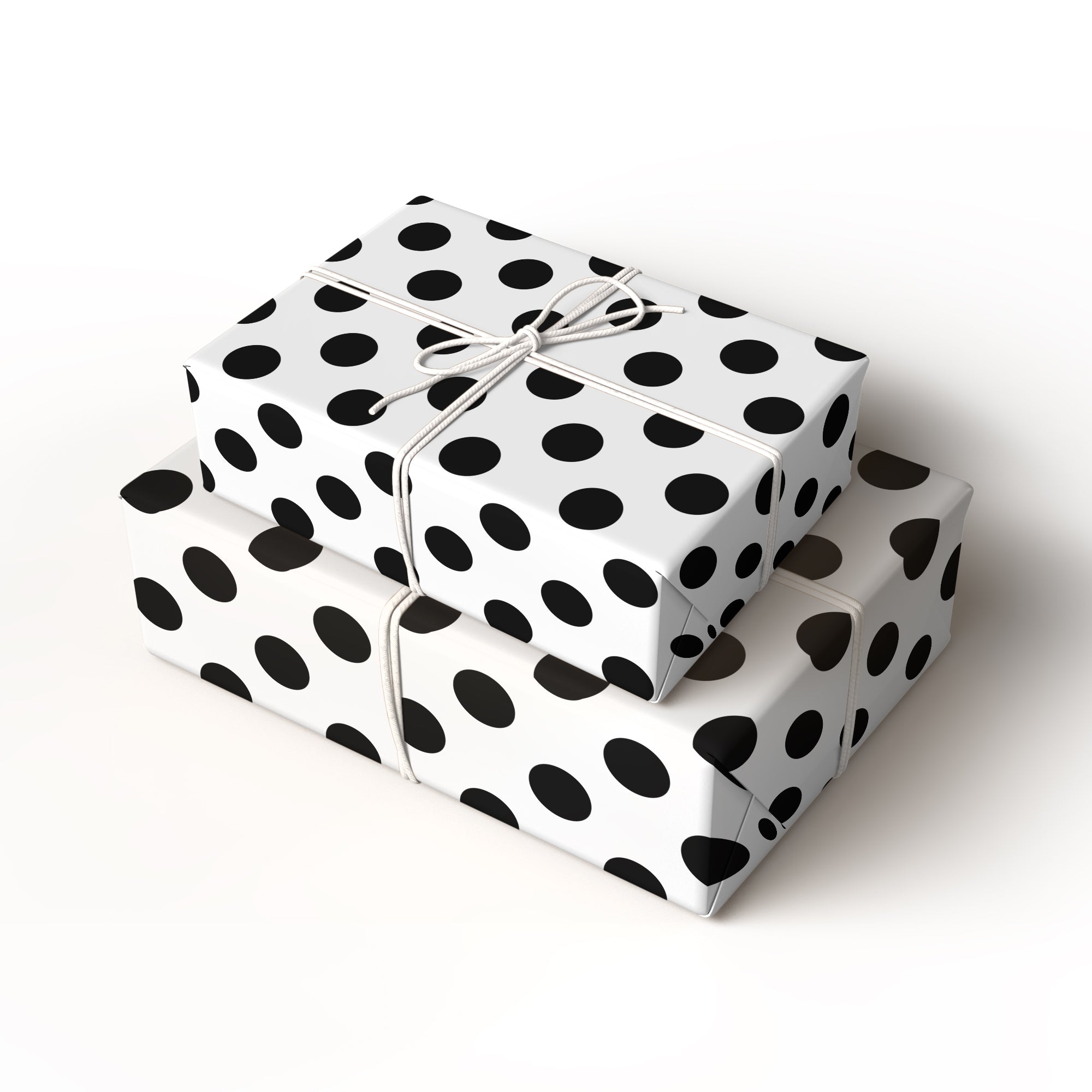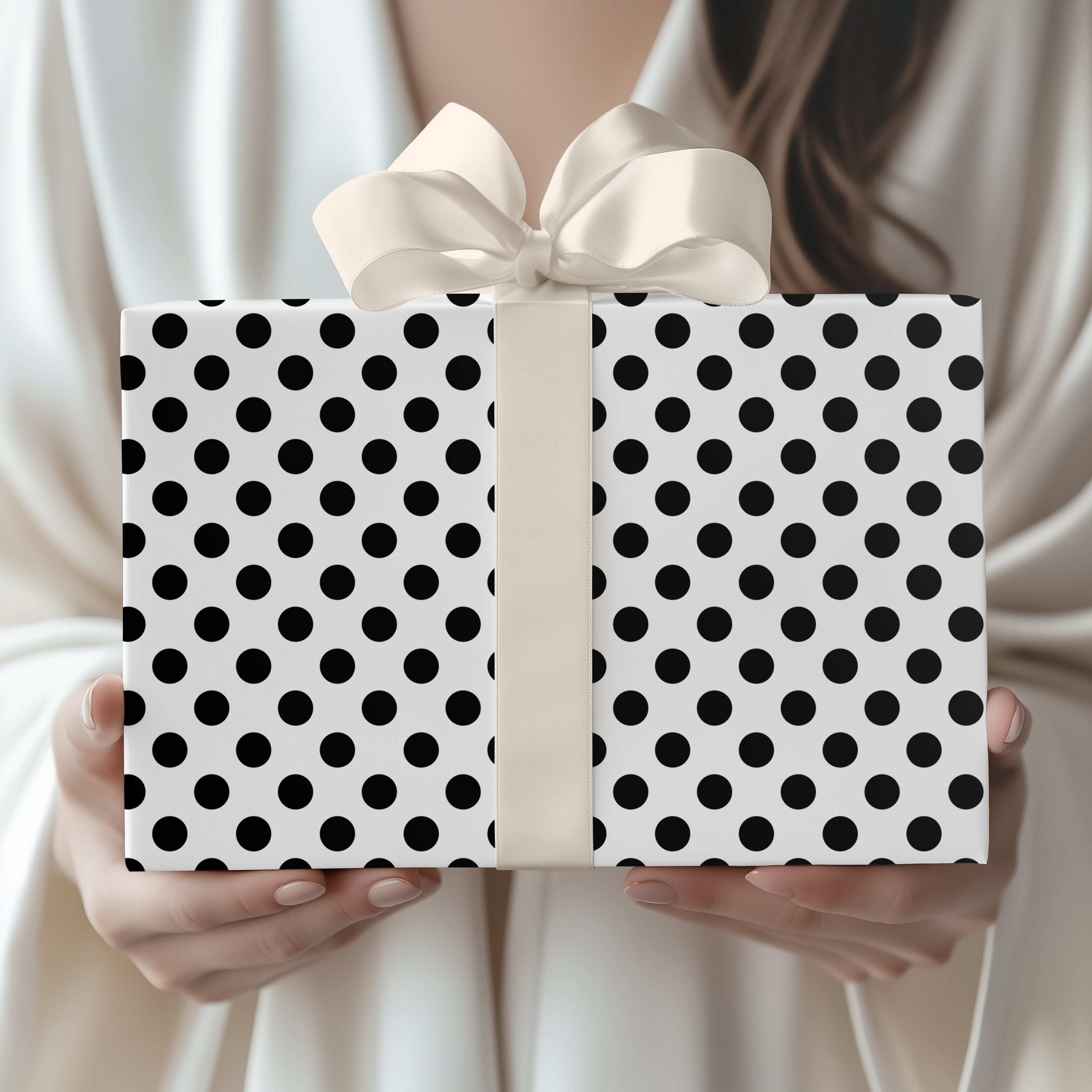 Noir Dots - Minimalist Black Polka Dot Pattern on White Wrapping Paper