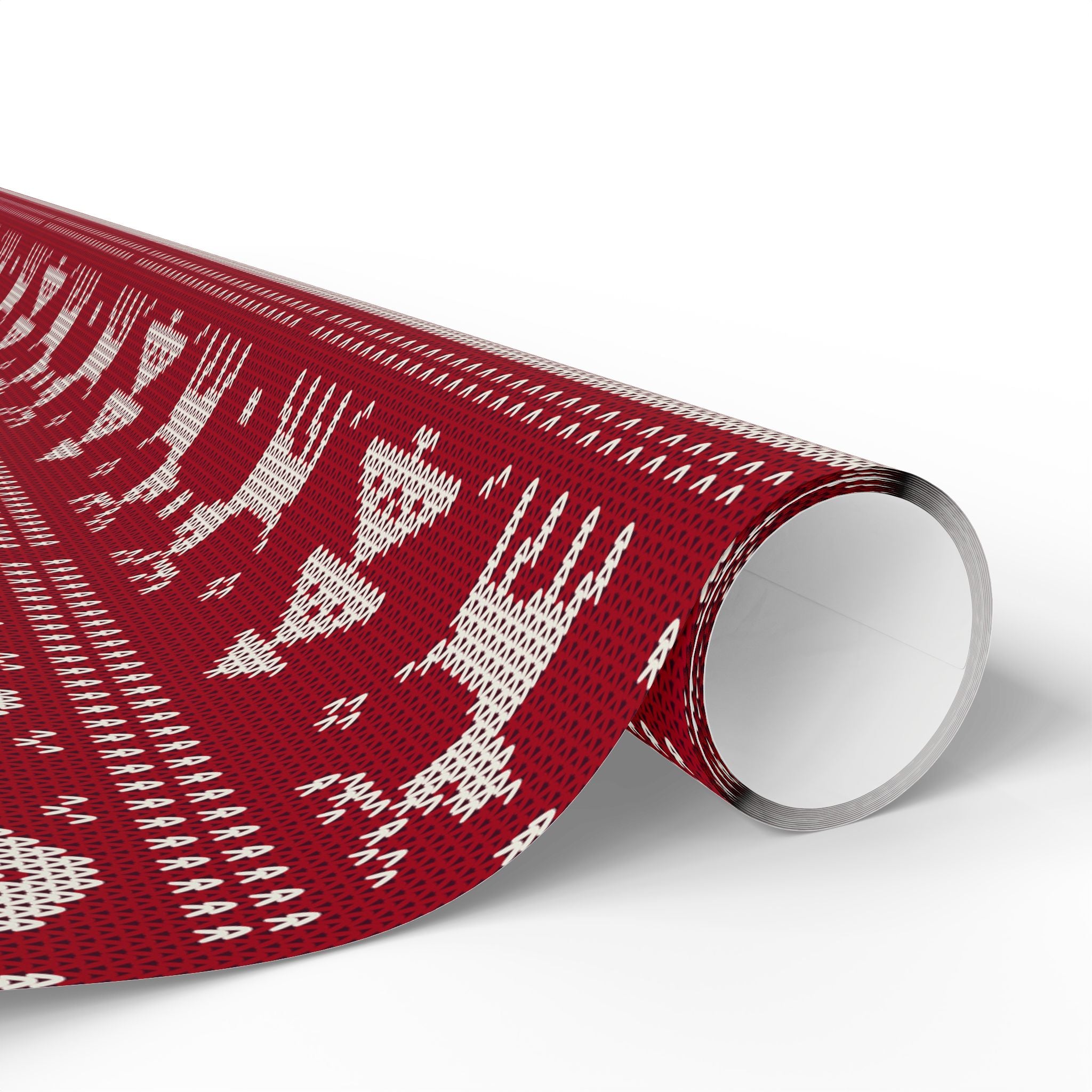 Nordic Hearth - Red Christmas Knit Reindeer Wrapping Paper