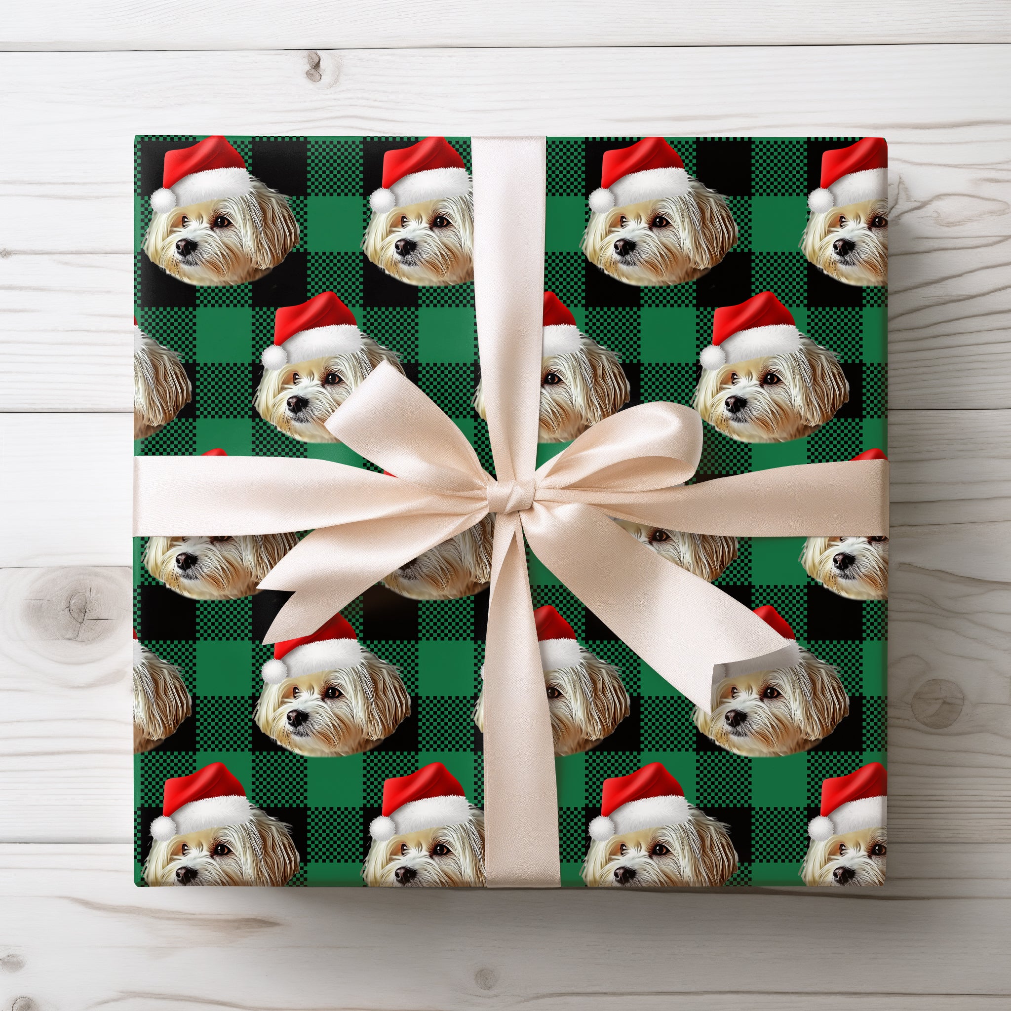 PlaidPaws Evergreen – Personalized Dog Christmas Wrapping Paper