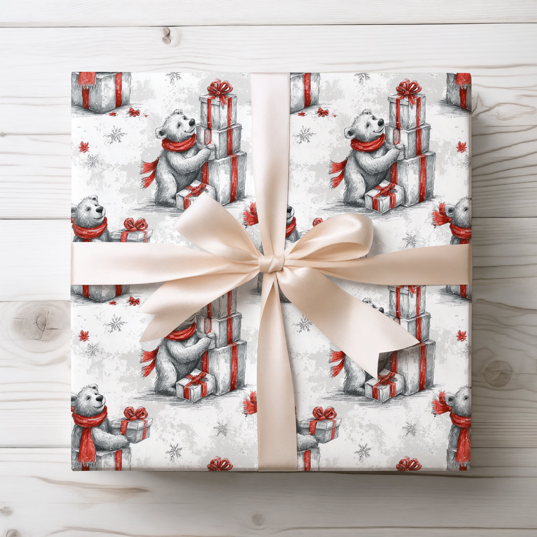 Polar Charm – Winter Bear with Red Scarf Christmas Wrapping Paper