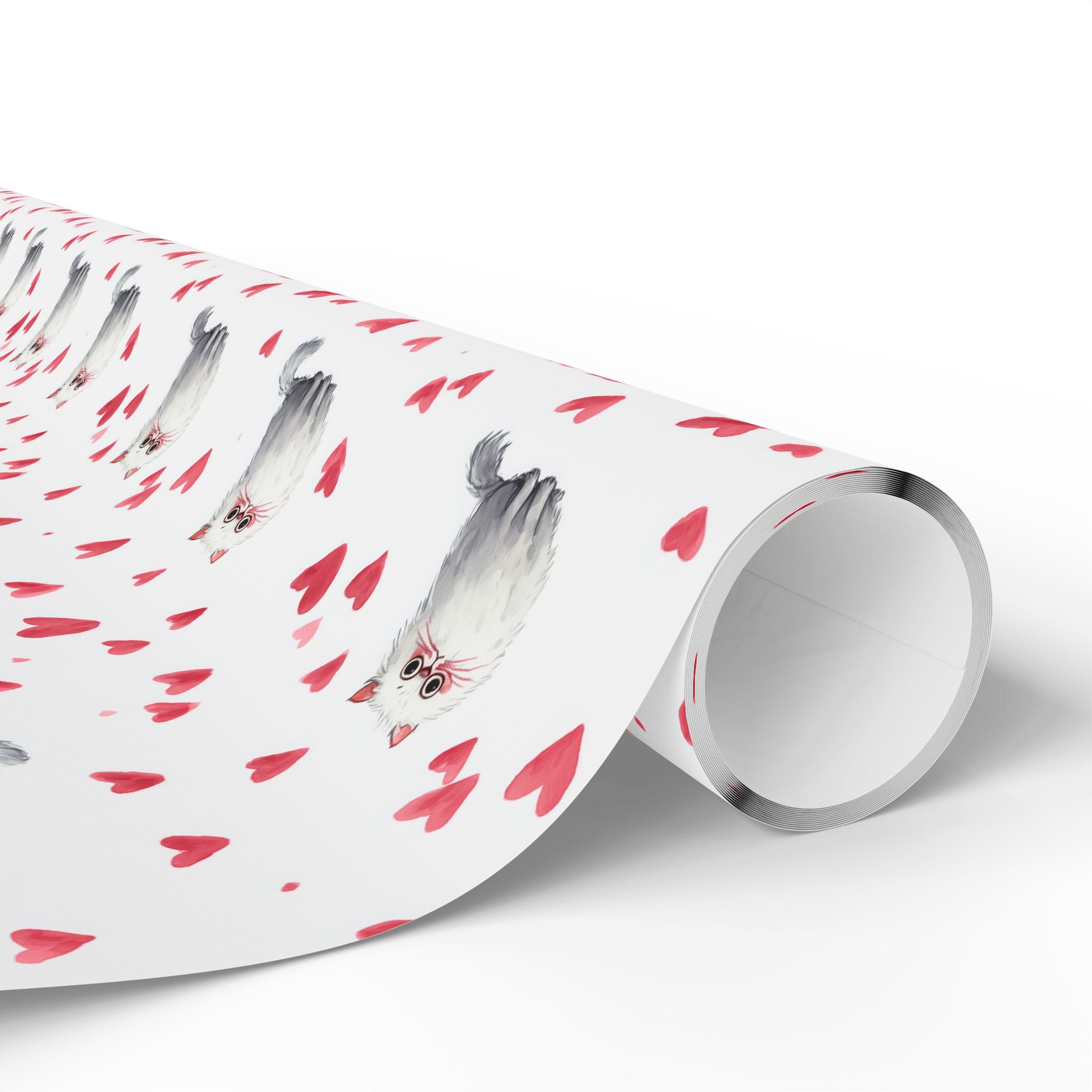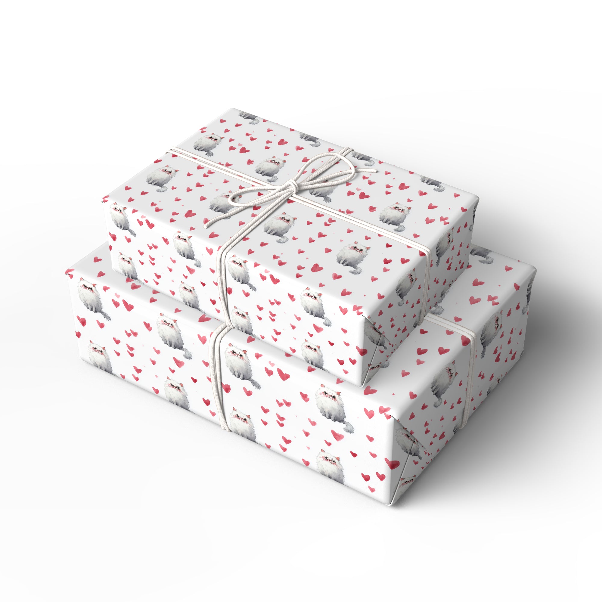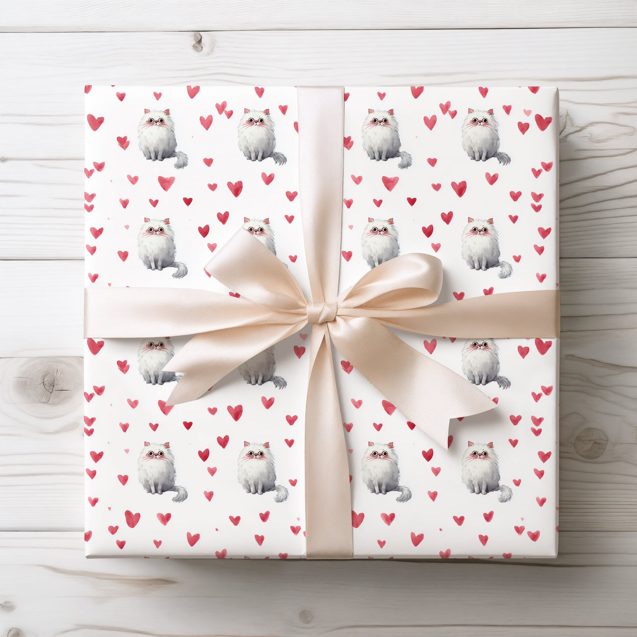 Rosefur Darling – Fluffy Persian Cat with Pink Hearts wrapping paper