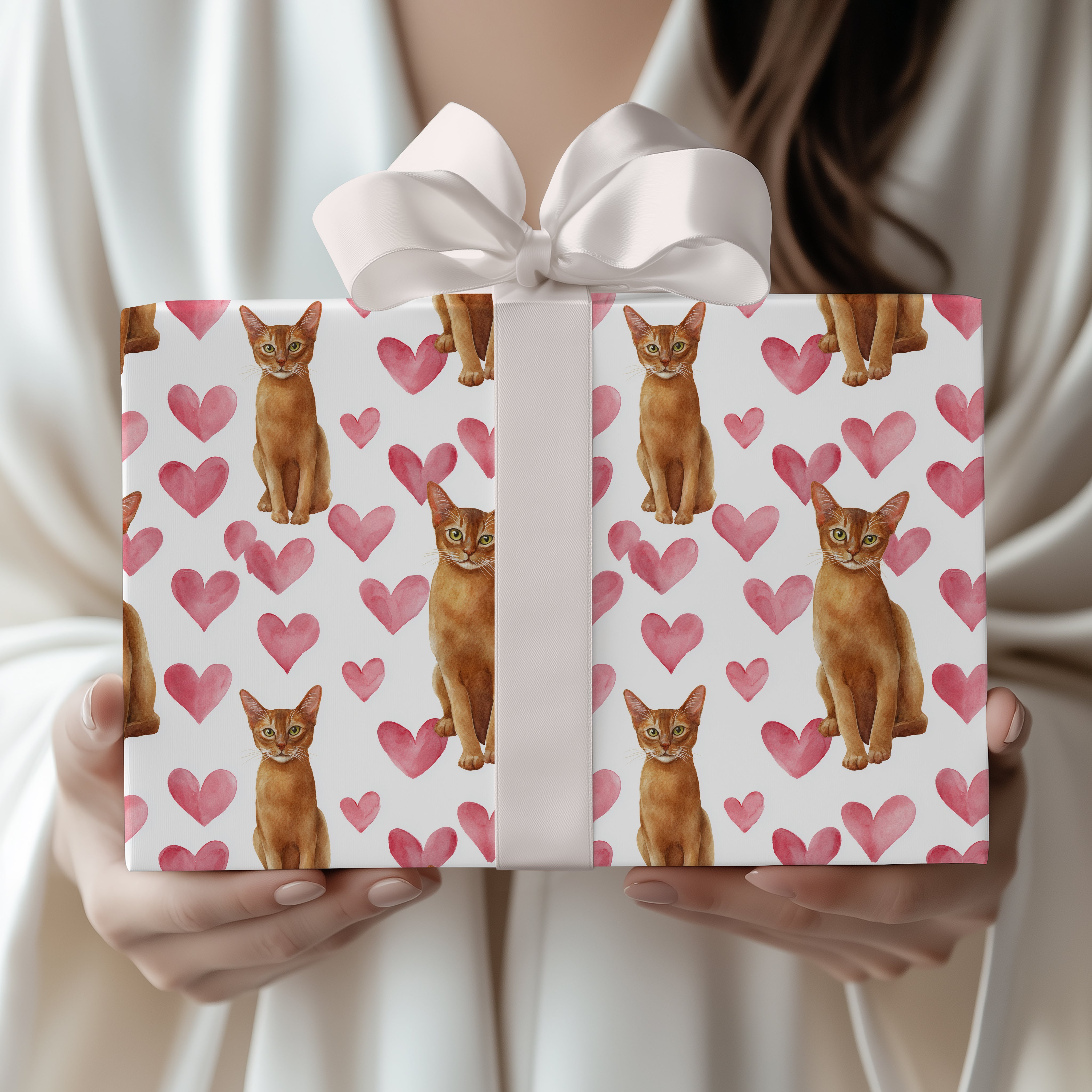 Rosefur Grace – Elegant Watercolor Abyssinian Cat Heart Wrapping Paper