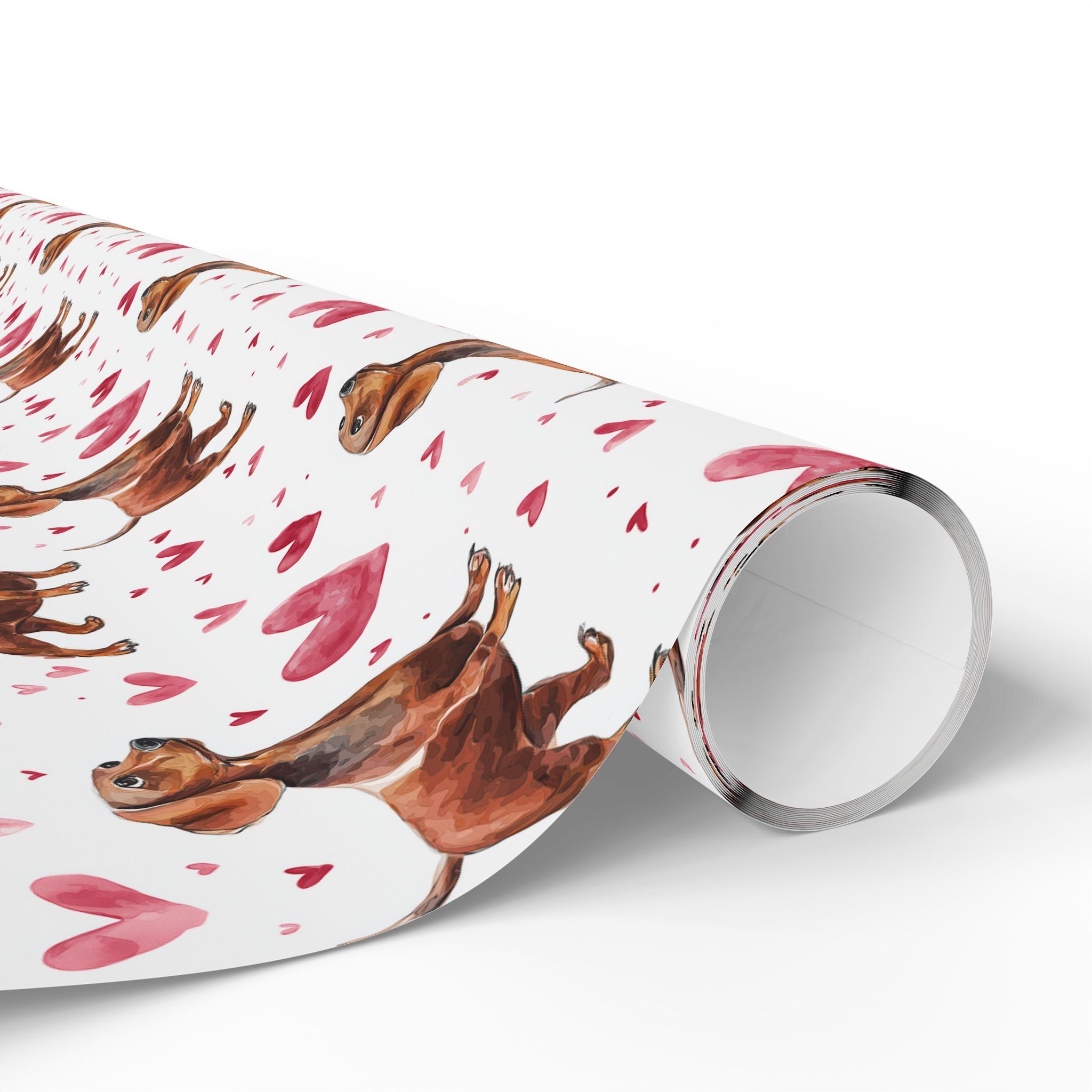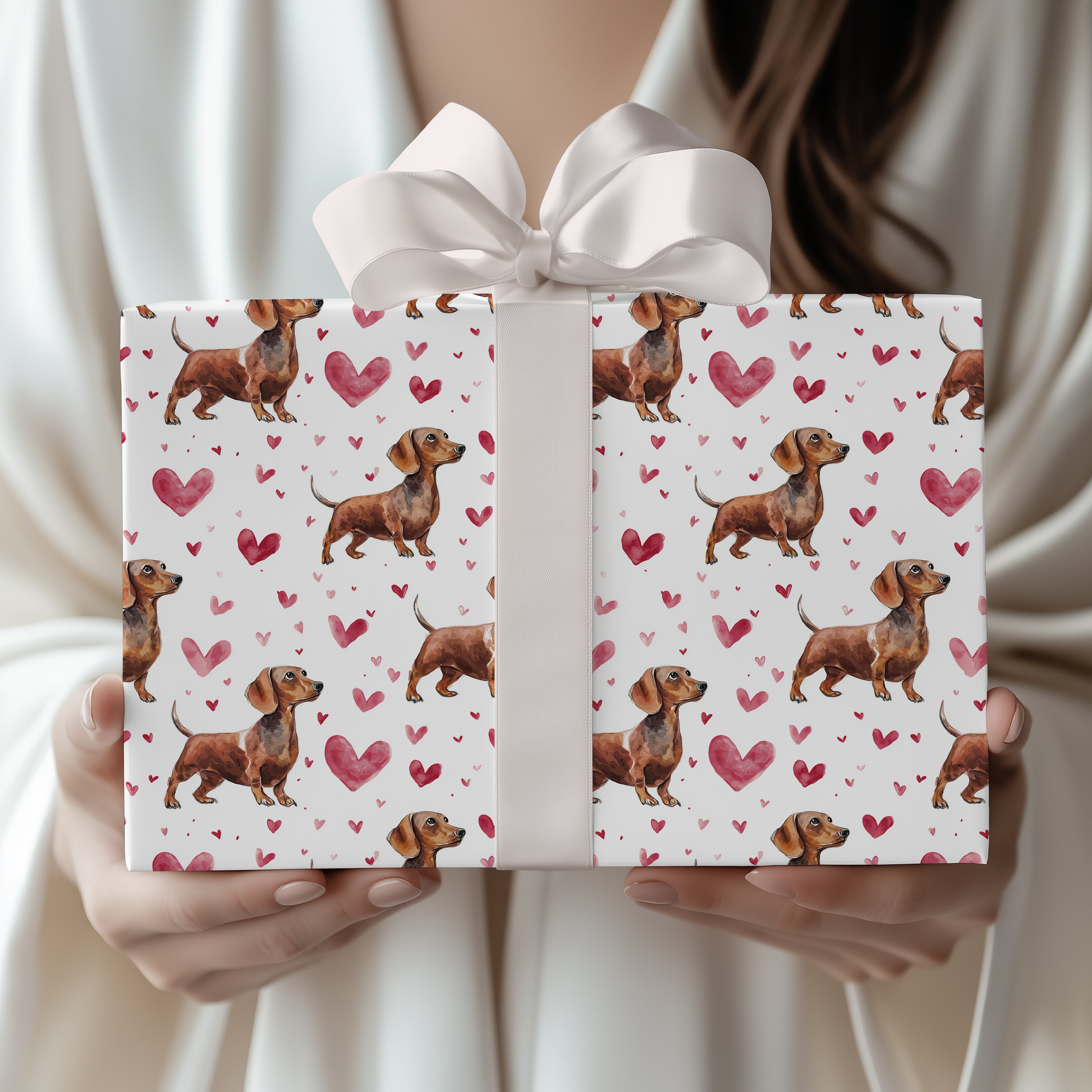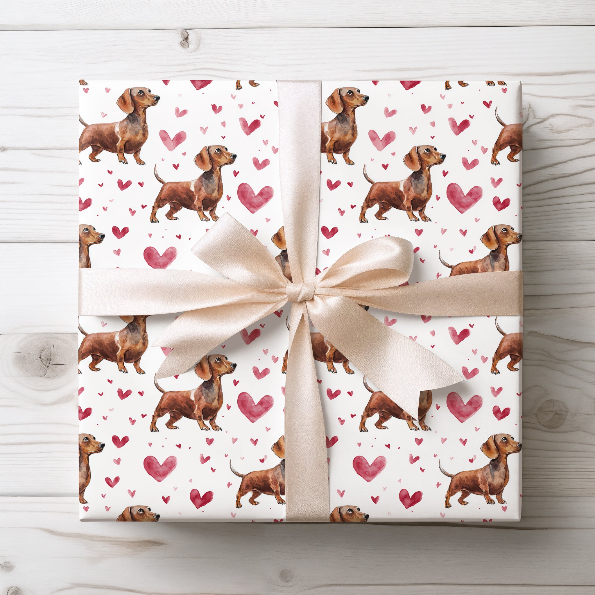 Rustwhisk Trots – Brown Dachshunds with Valentine Hearts wrapping paper