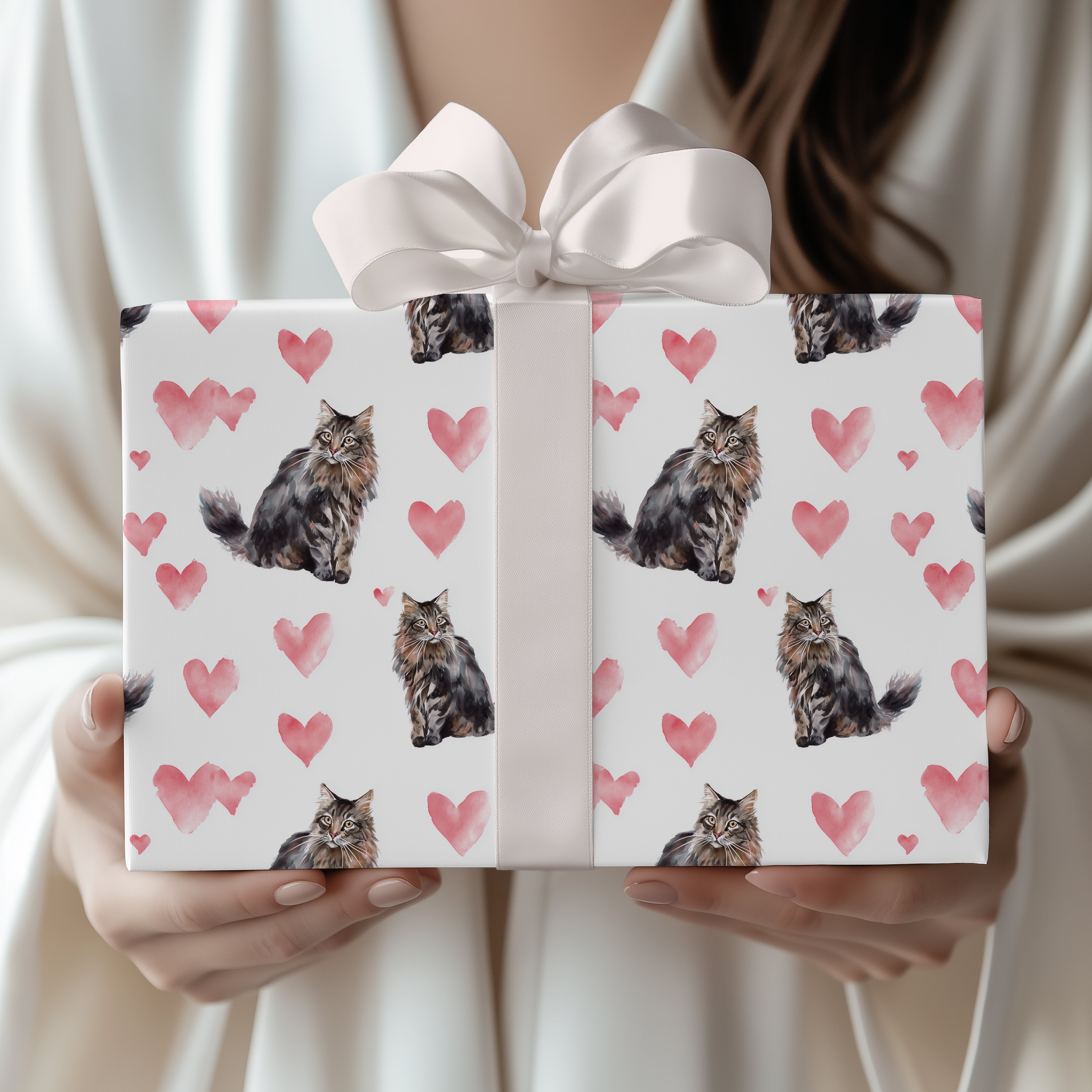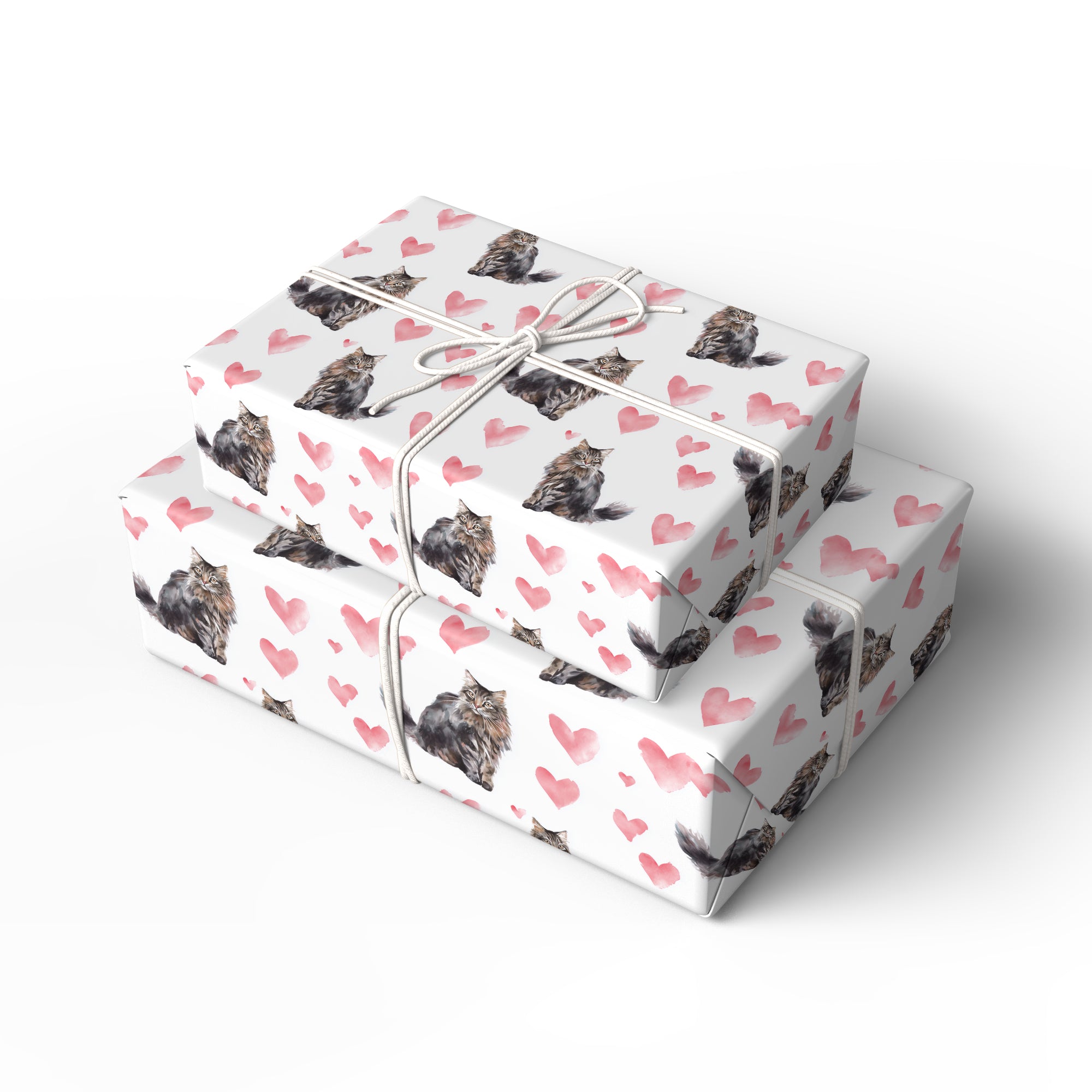 Shadowtail Lovefall – dark maine coon heart wrapping paper