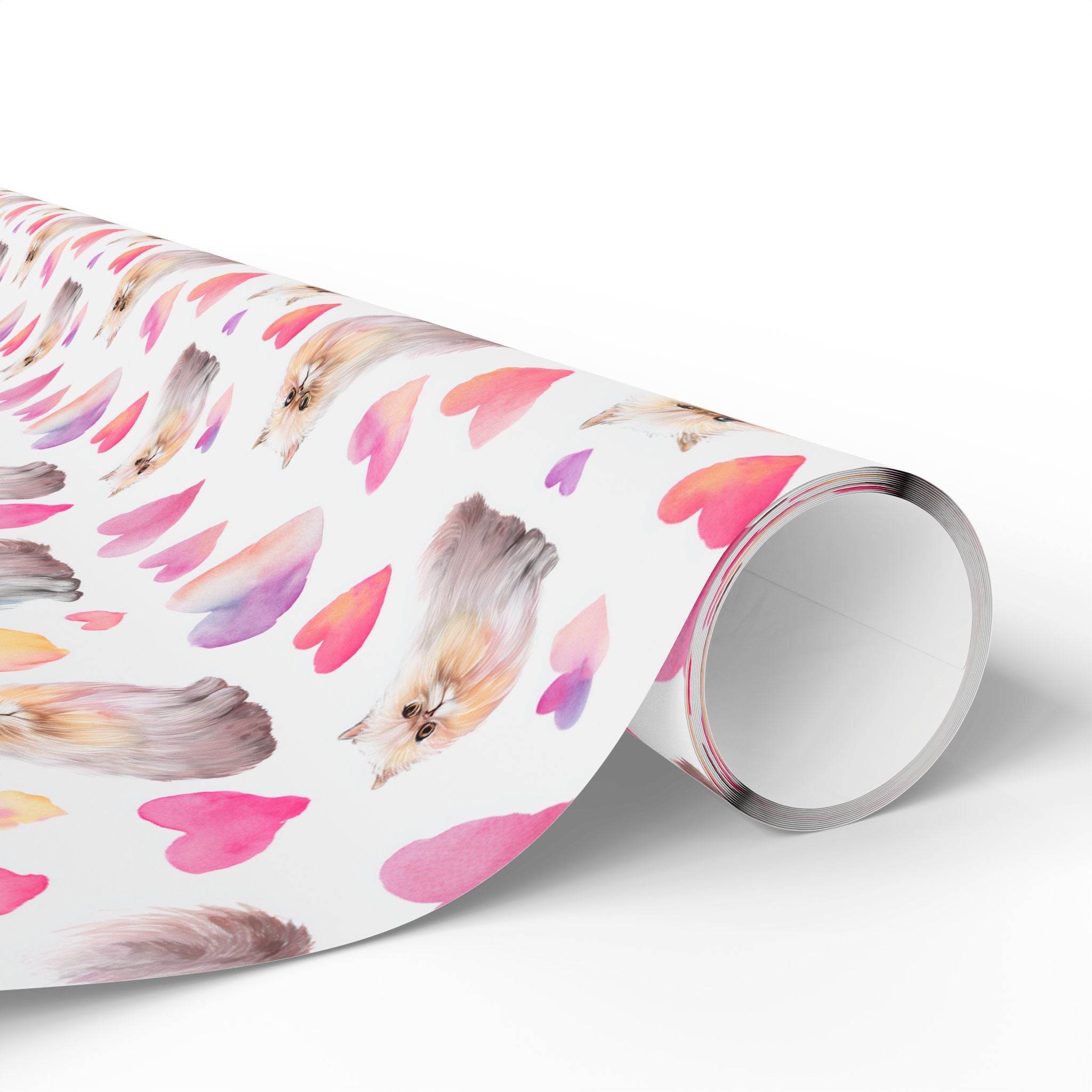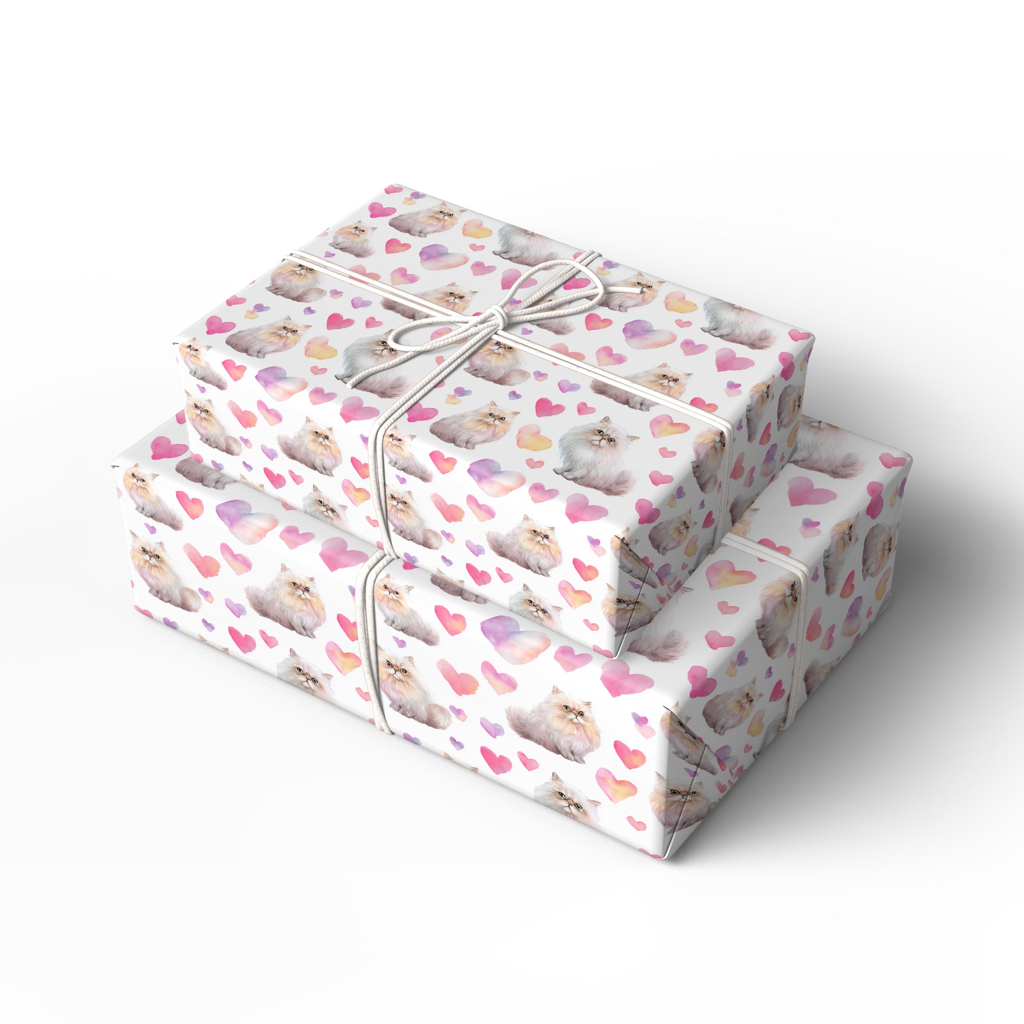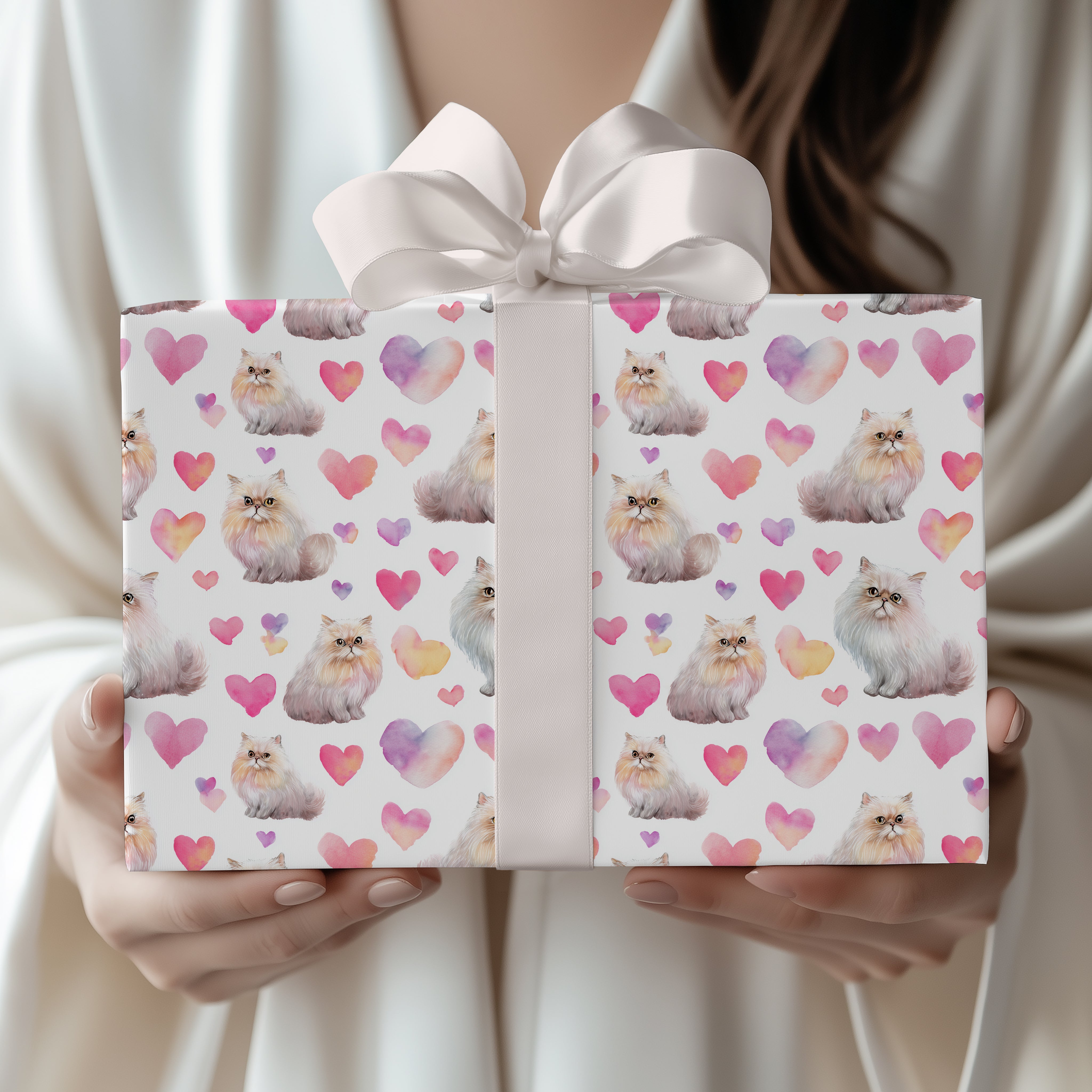 Silkpuff Affection – Watercolor Persian Cat with Pastel Hearts wrapping paper