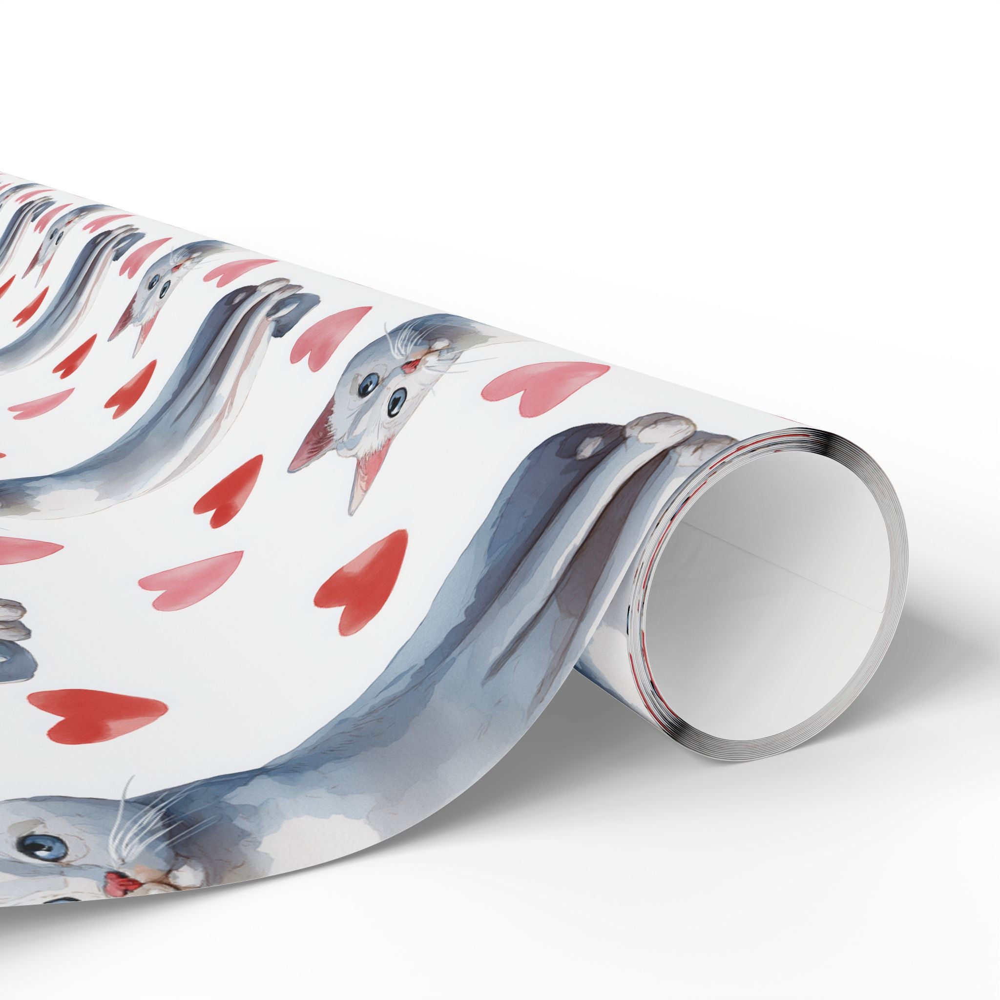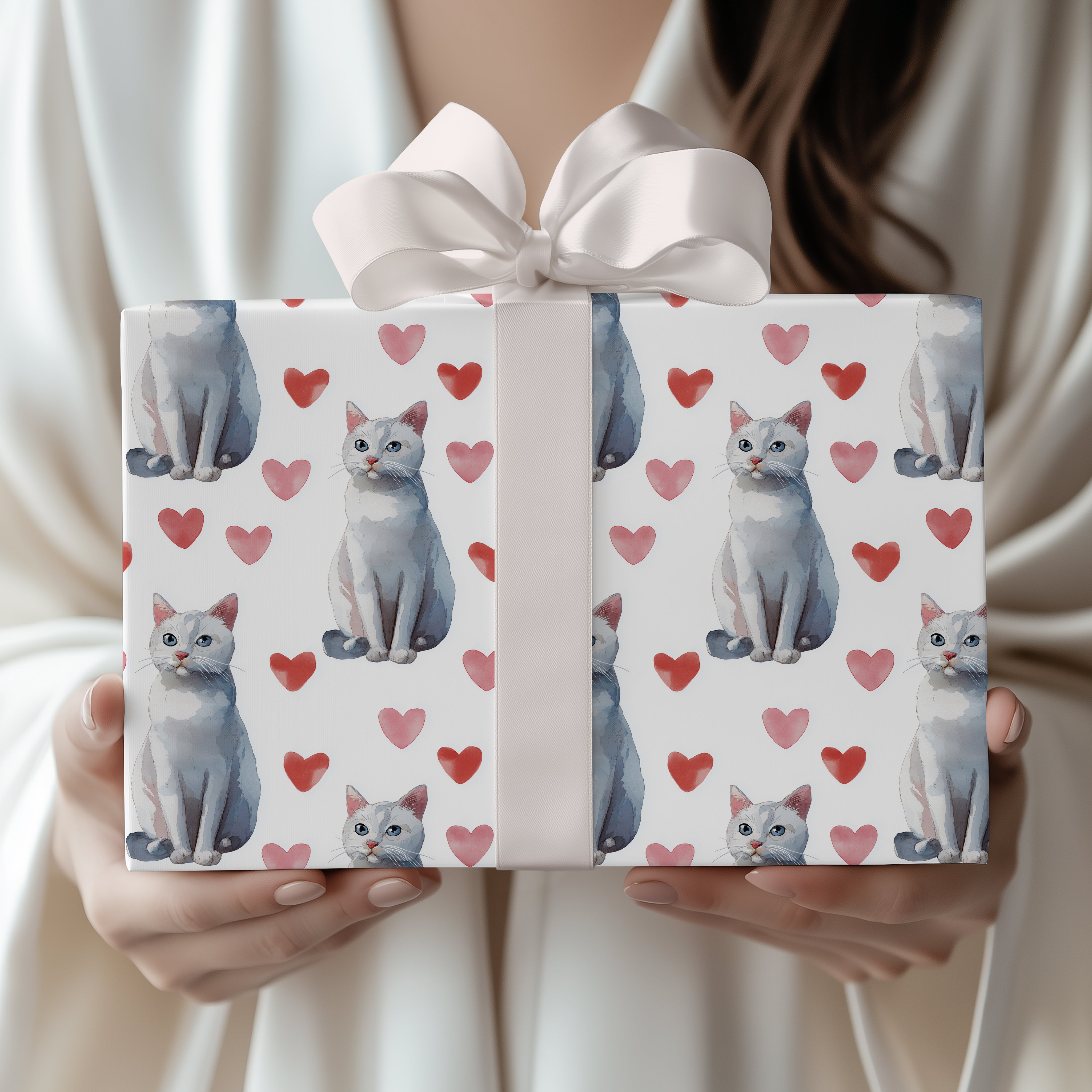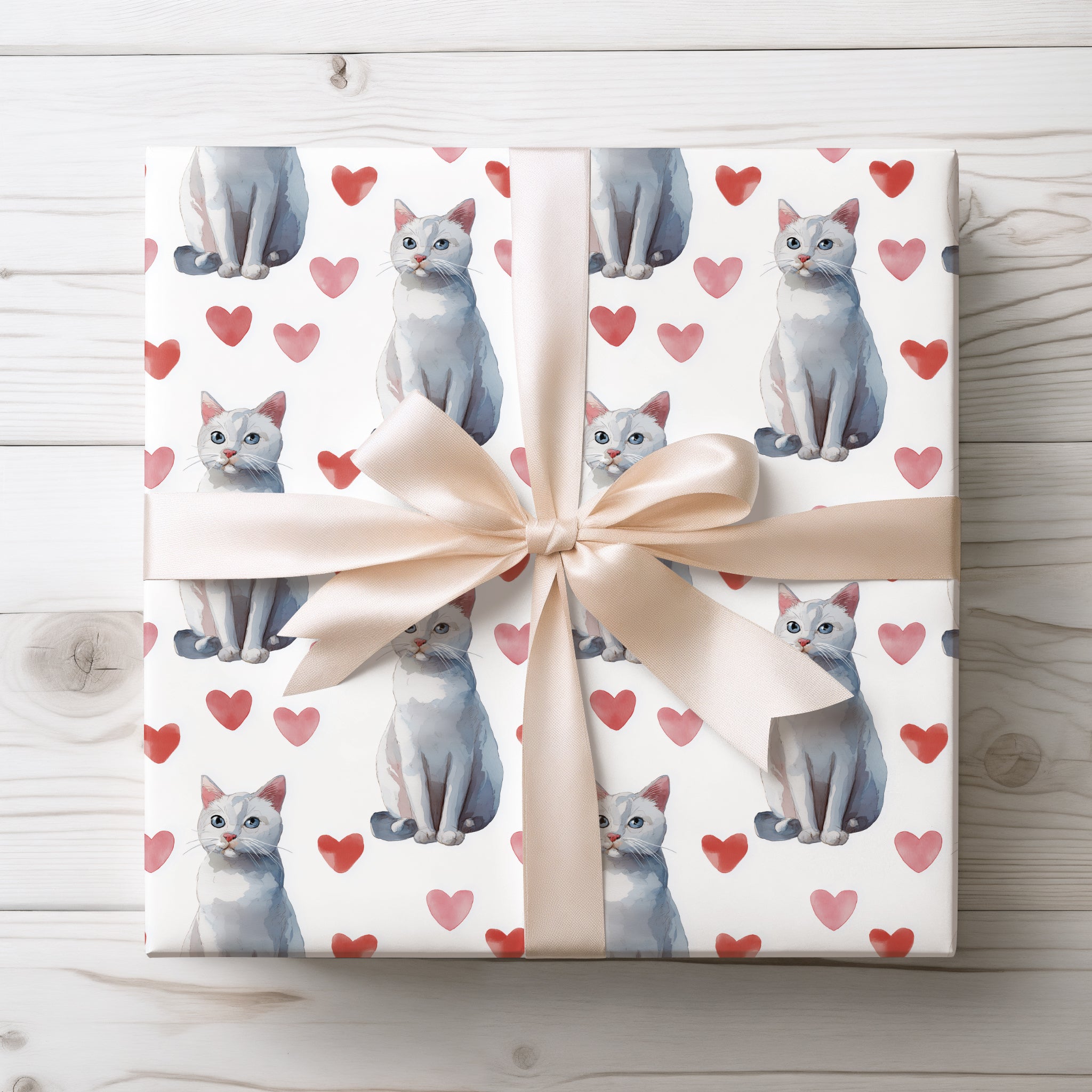Silvershine Paws – Watercolor American Shorthair Cat with Hearts wrapping paper