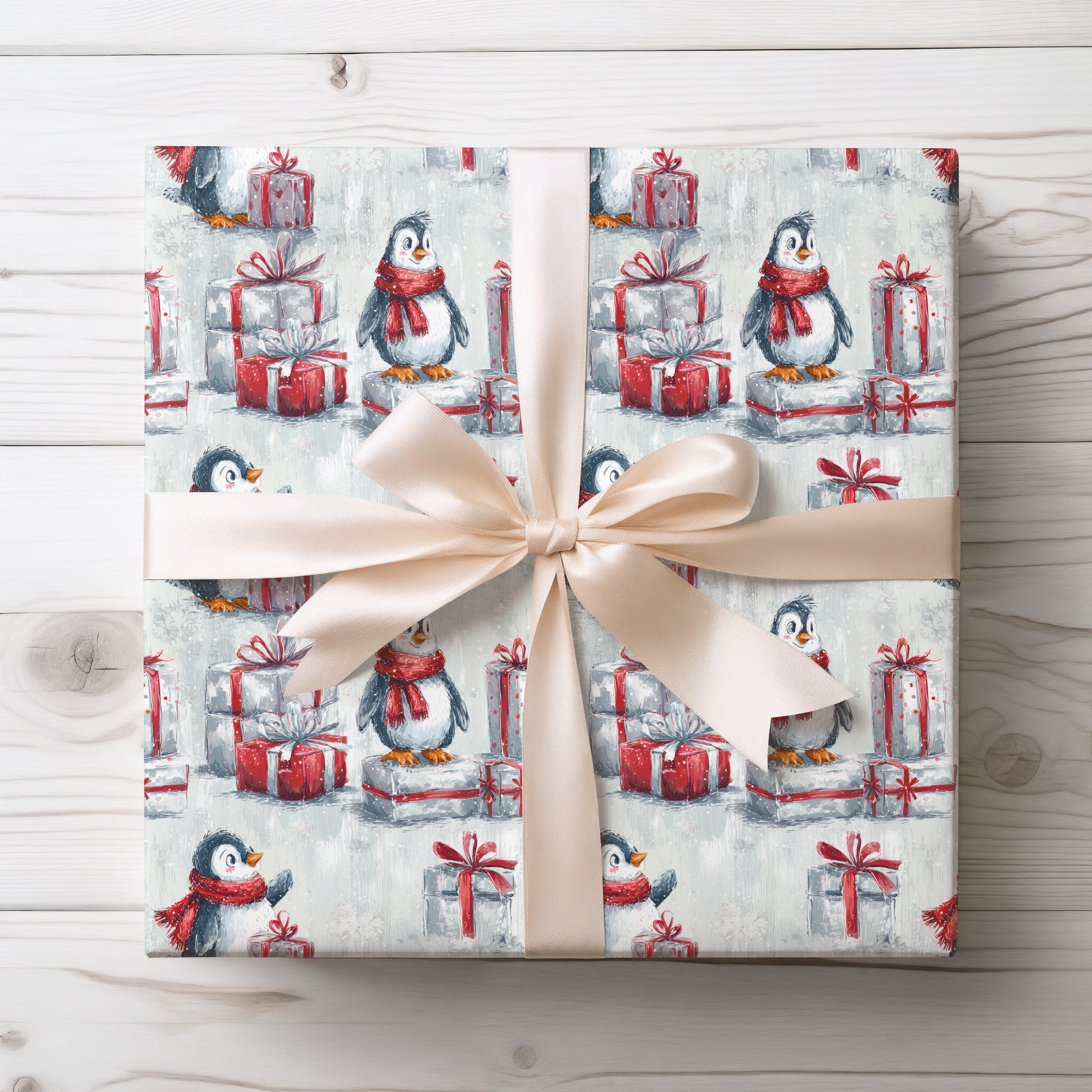 SnowDrift Chums – Penguin Christmas Wrapping Paper