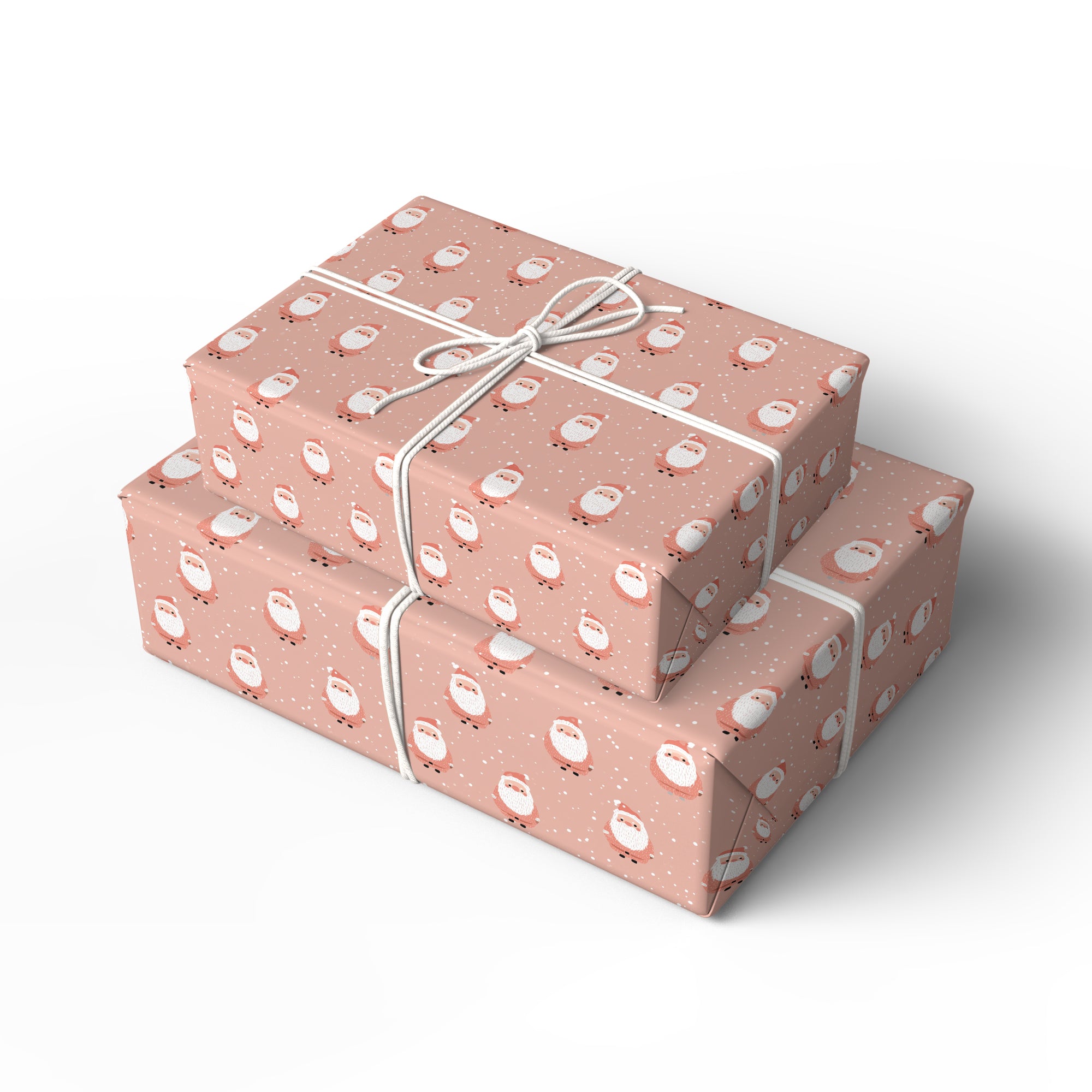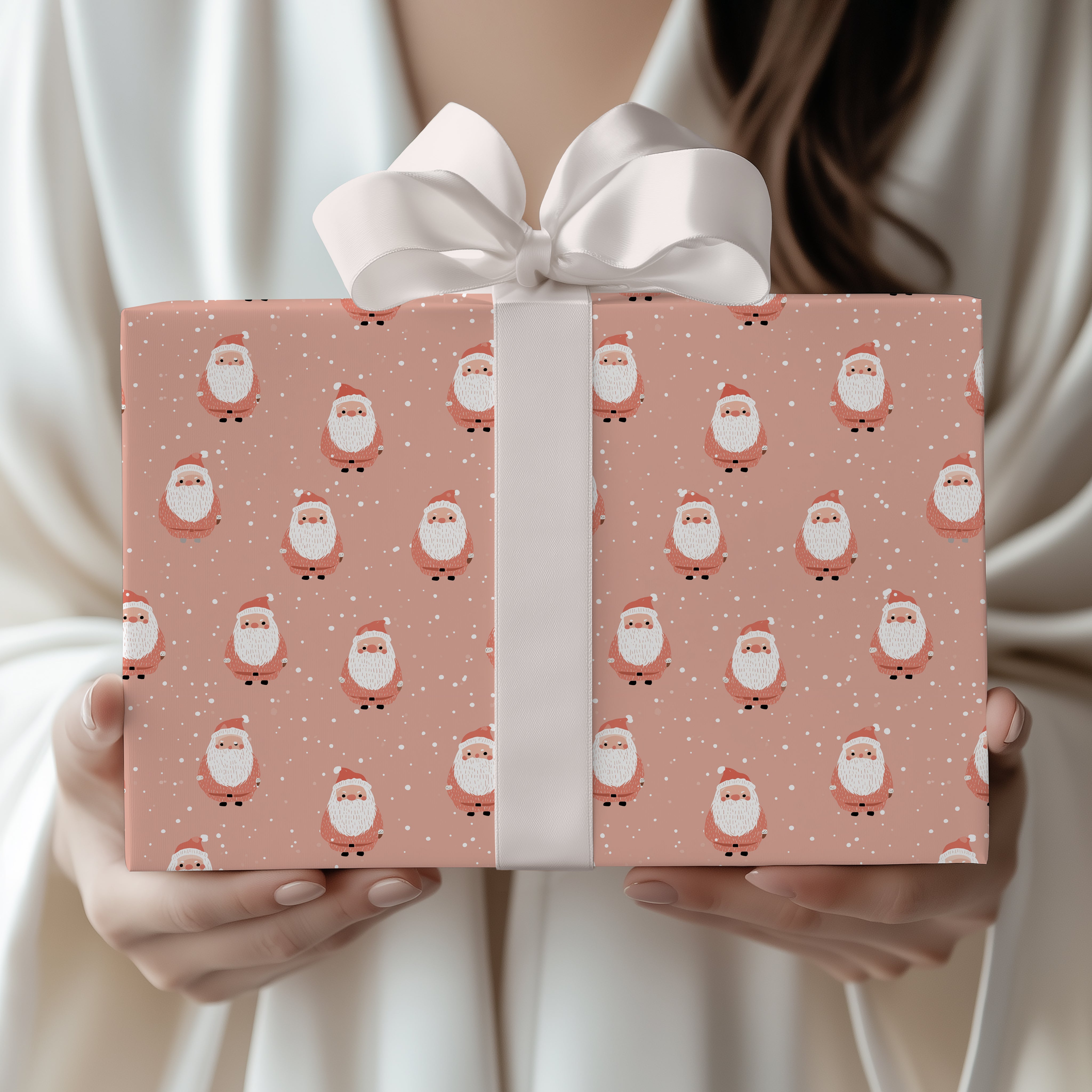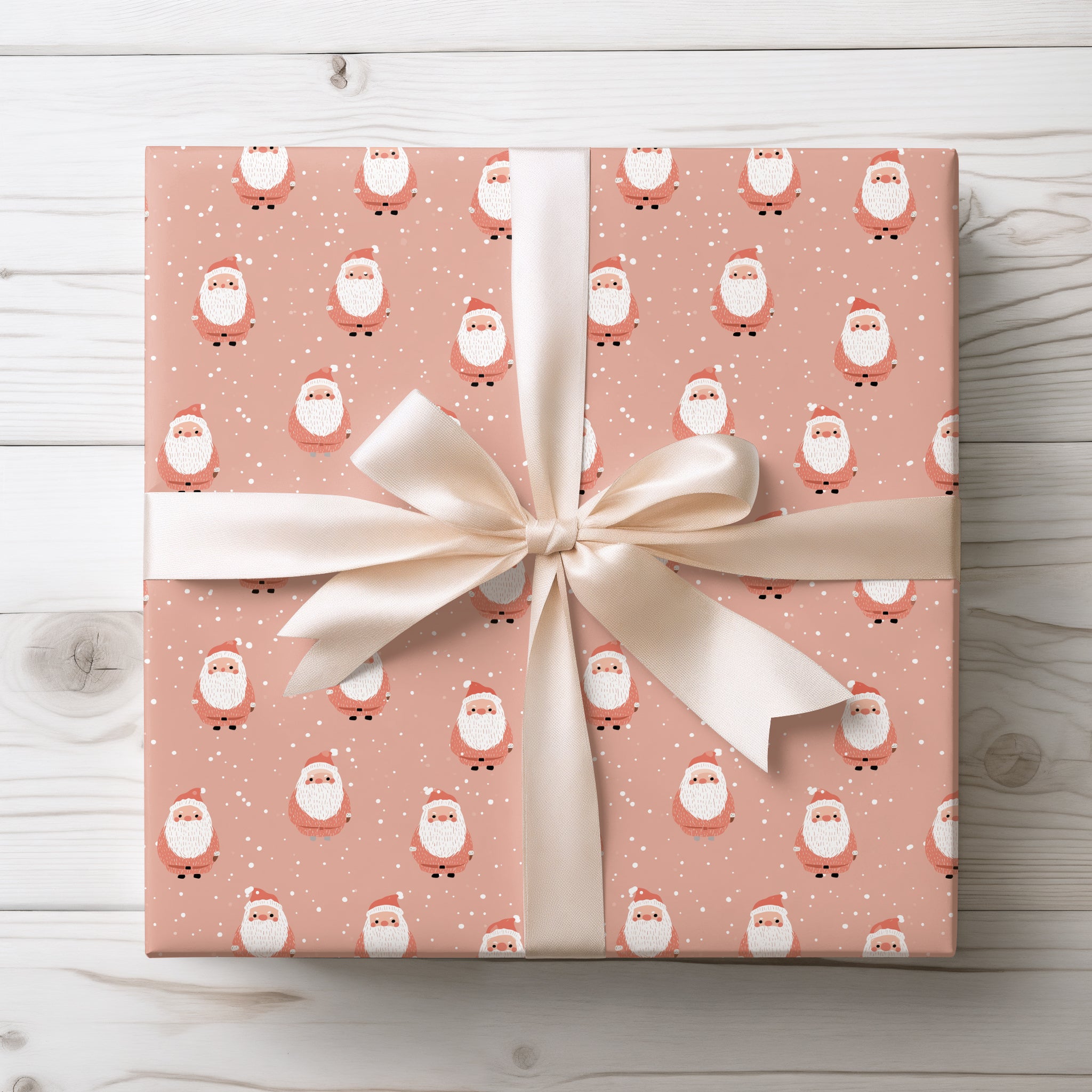 SnowyClaus – Santa Claus with Falling Snow on Blush Pink Wrapping Paper