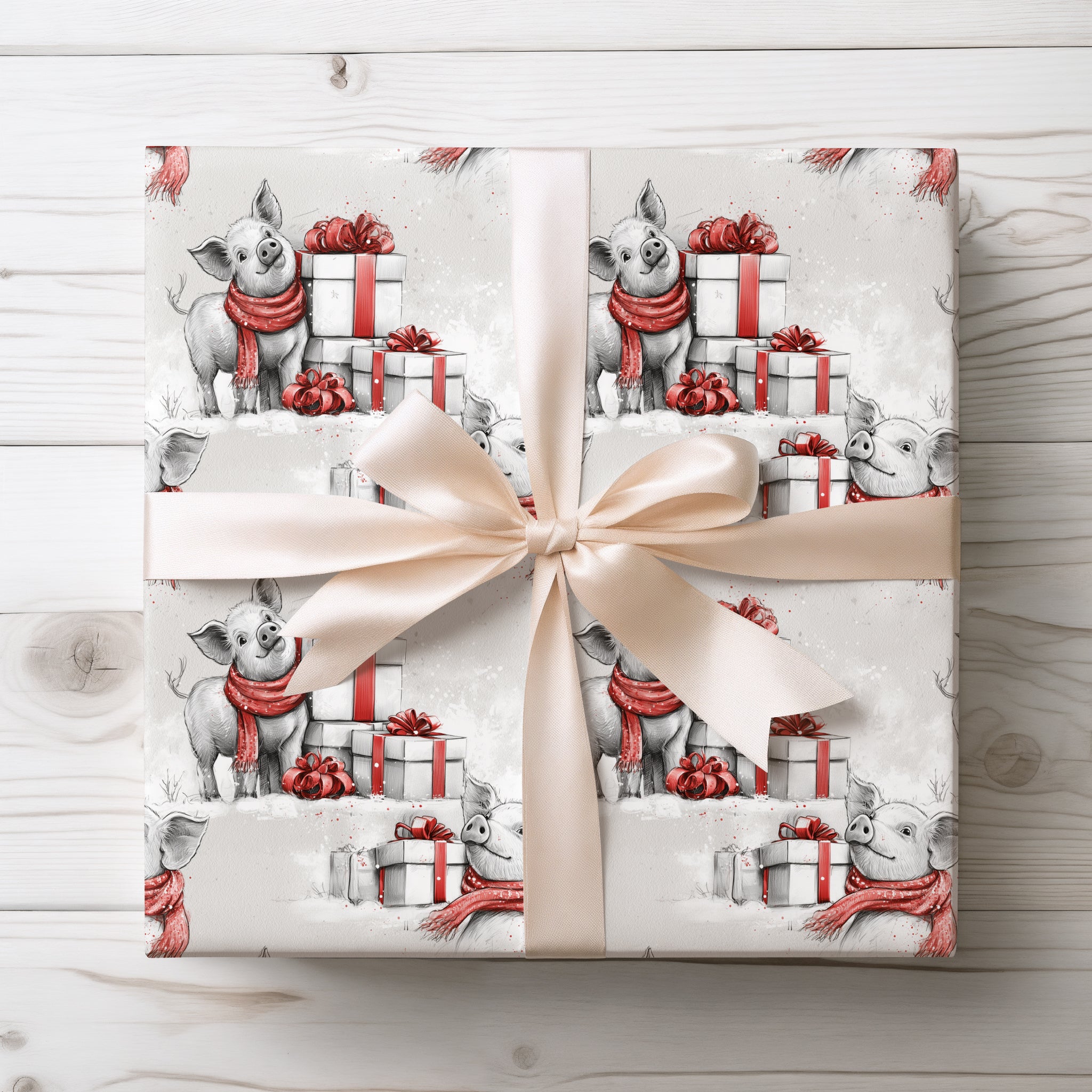 Snugglehoof – Cute Piglet with Holiday Presents Wrapping Paper
