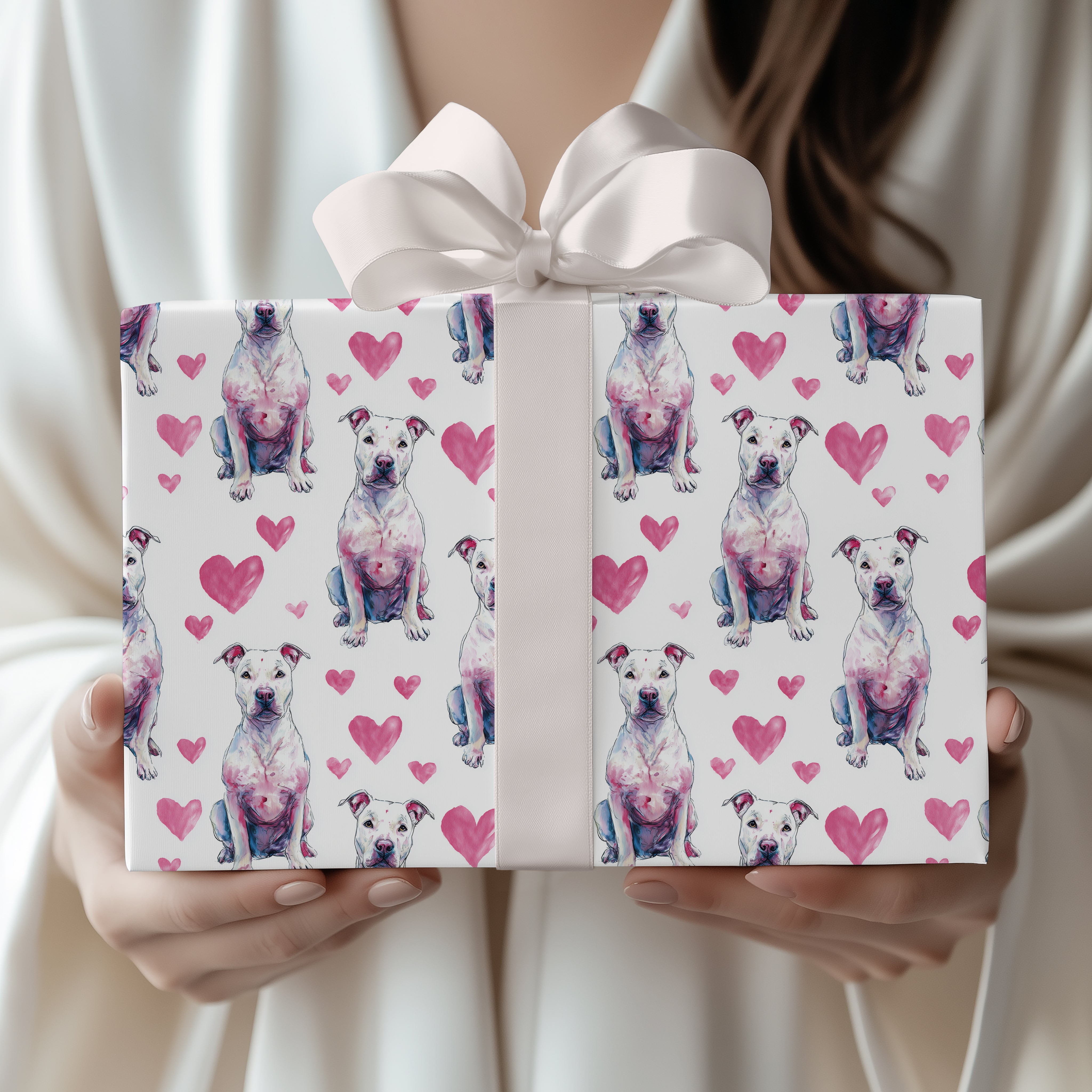 Tenderpup Bloom – White Pit Bull Hearts wrapping paper