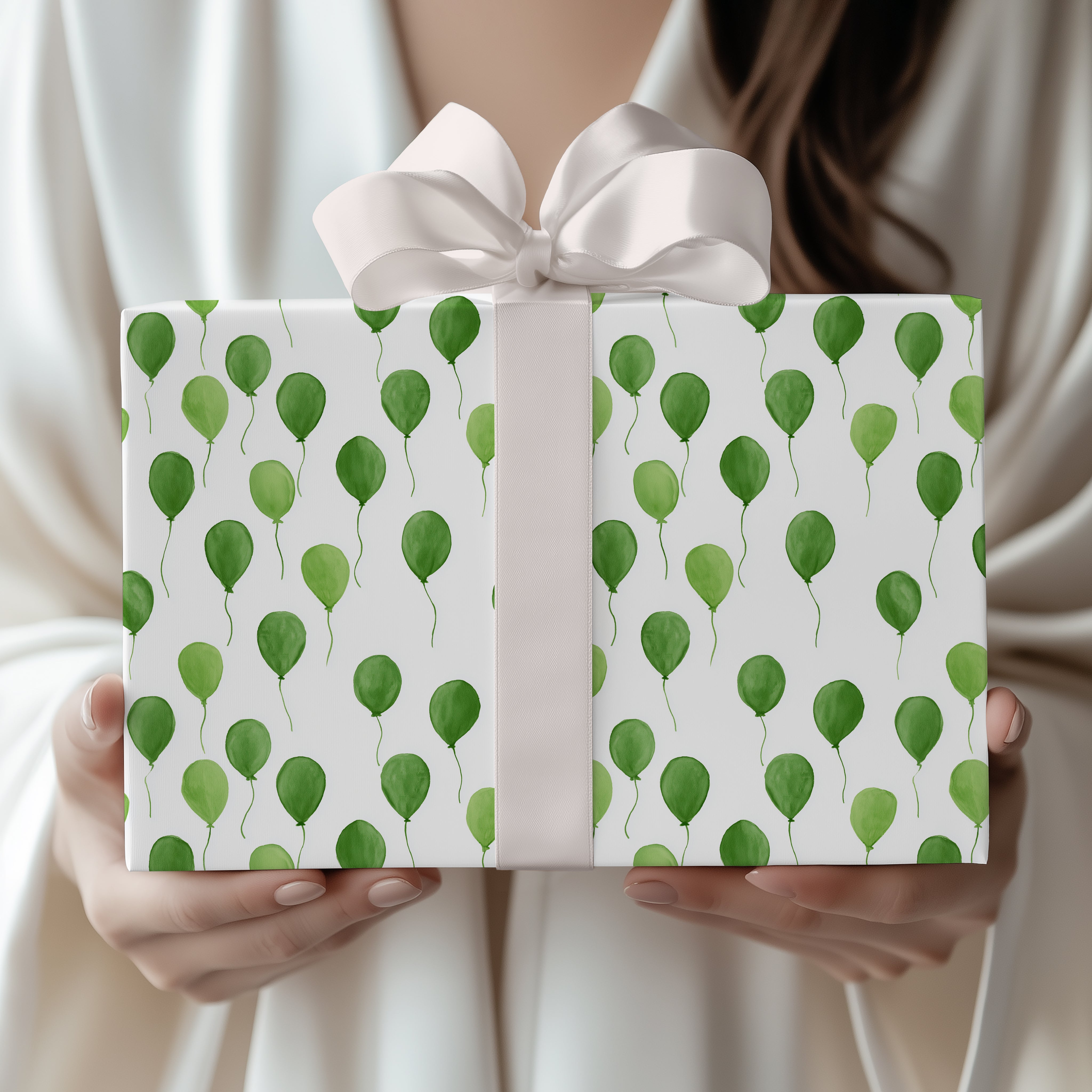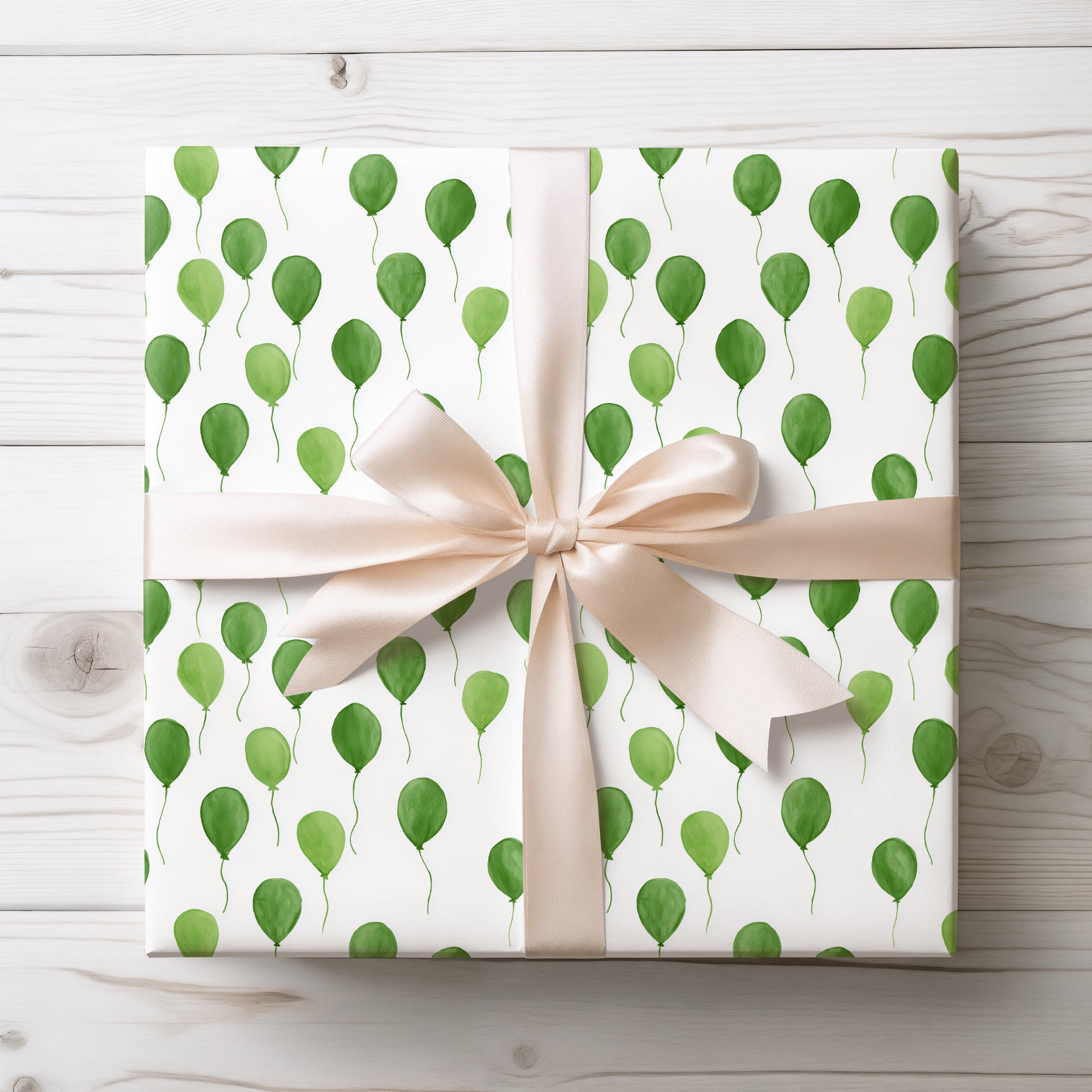 Verdant Float – Watercolor Green Balloons wrapping paper